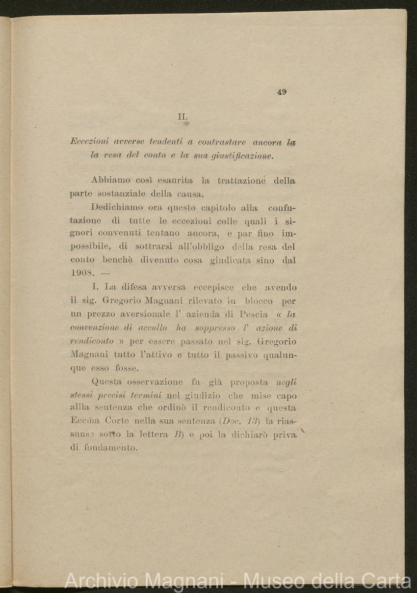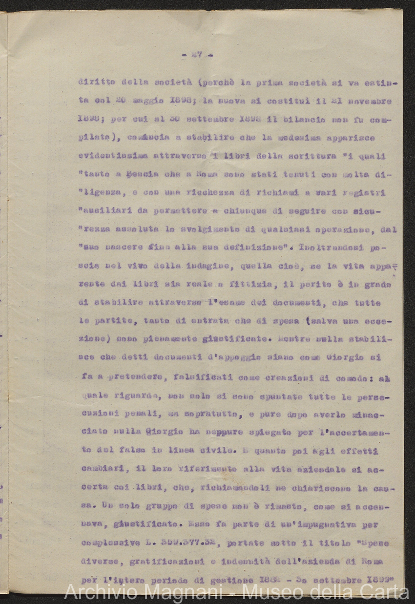 Sentenze a stampa, 1917 e s.d., pp. 2-159; "Cessioni del fallimento di Giorgio", 1913-19, pp. 160-186; "Corrispondenza con l'Avv. A. Galeotti e altri", 1922-32 e 1 s.d. (ante 1927), pp. 187-605; "Enrico Magnani. Carte diverse", 1927 e 6 s.d., pp. 606-622.