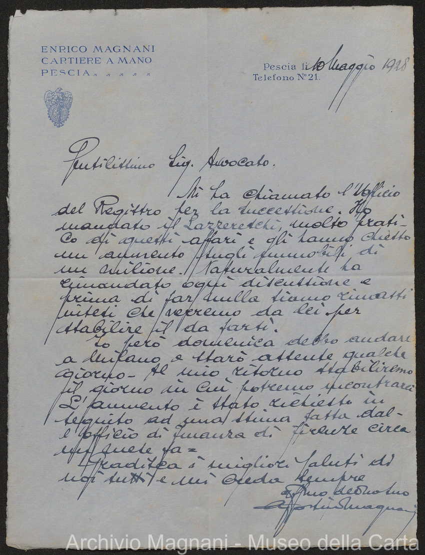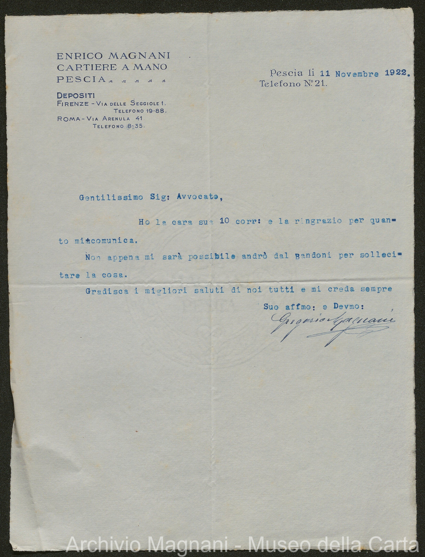 Causa Giorgio Magnani - sentenze - corrispondenza e comparse - Gregorio Magnani - Giuseppe Lumbroso - Giulio Buonamici - Amilcare Galeotti - Francesco Pacelli - Francesco Bandoni - Piero Magnani - Agostino Magnani - Leopoldo Lazzereschi