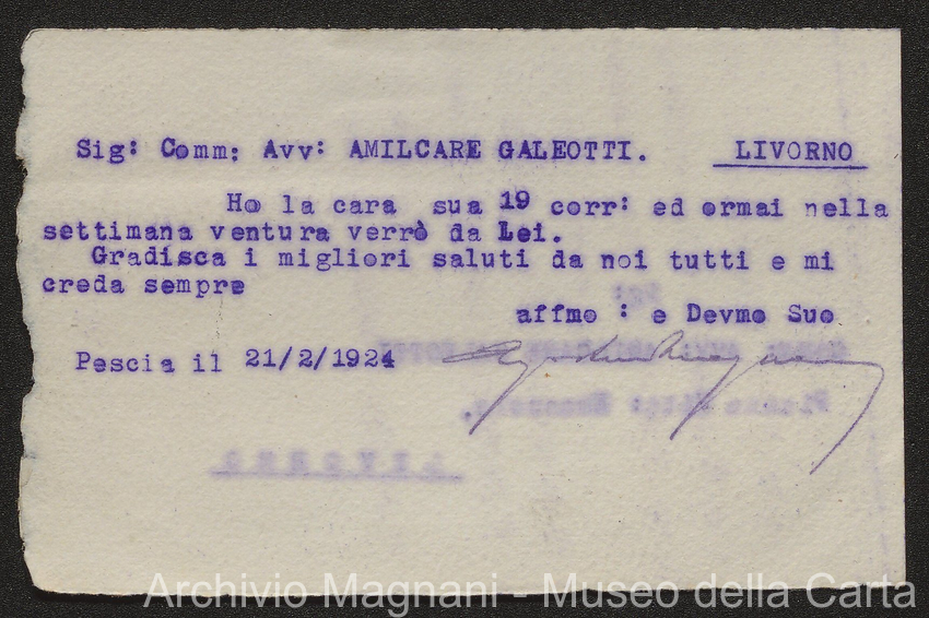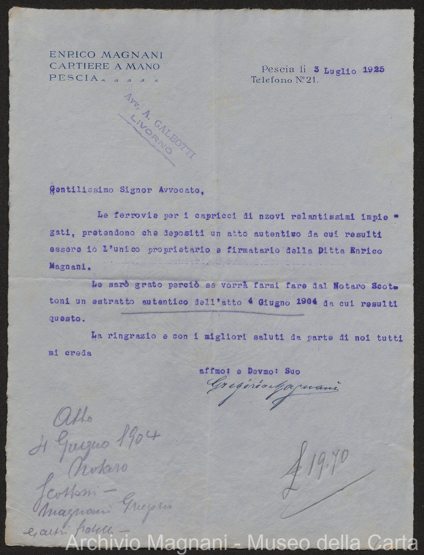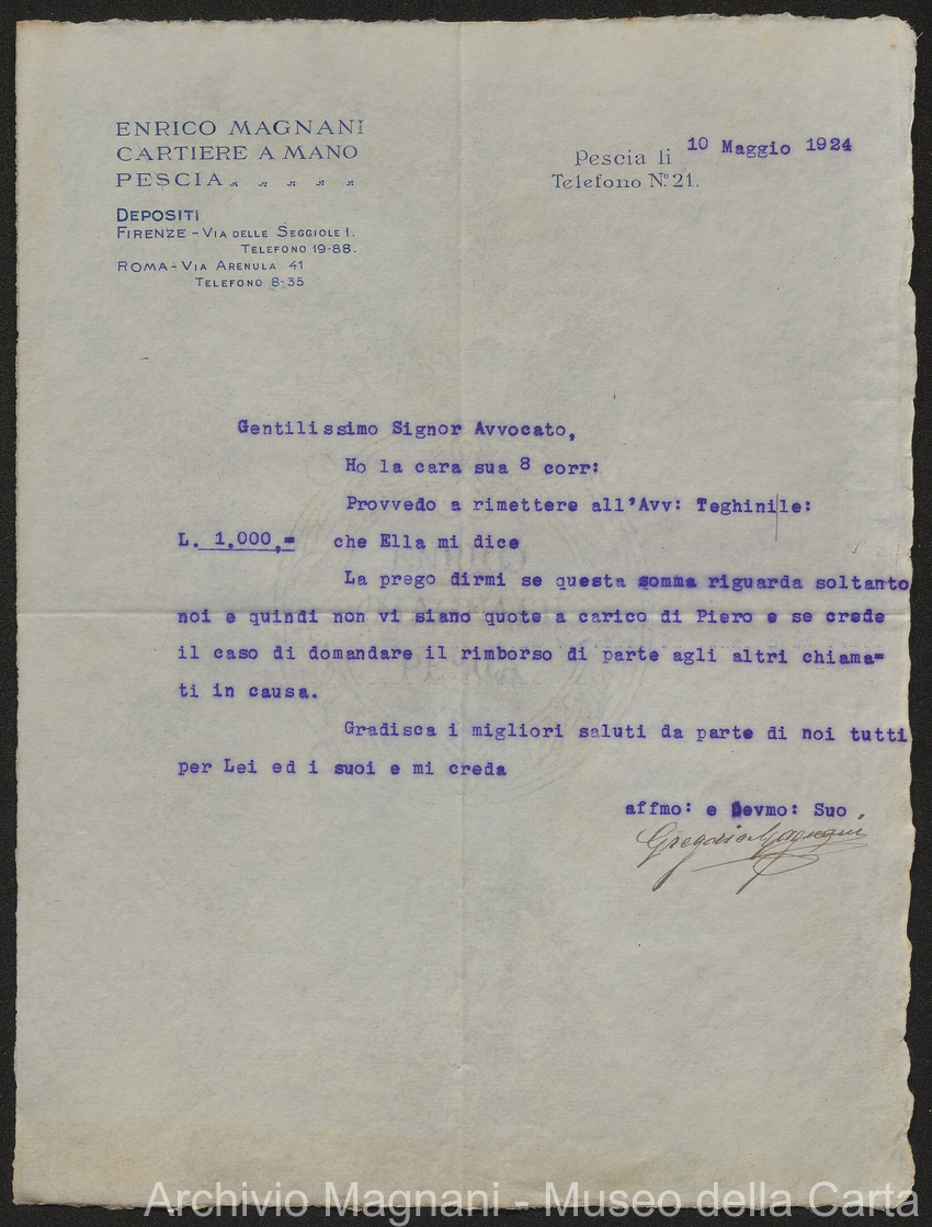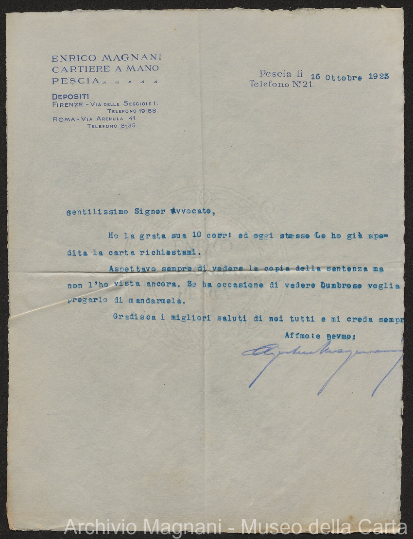 Causa Giorgio Magnani - sentenze - corrispondenza e comparse - Gregorio Magnani - Giuseppe Lumbroso - Giulio Buonamici - Amilcare Galeotti - Francesco Pacelli - Francesco Bandoni - Piero Magnani - Agostino Magnani - Leopoldo Lazzereschi