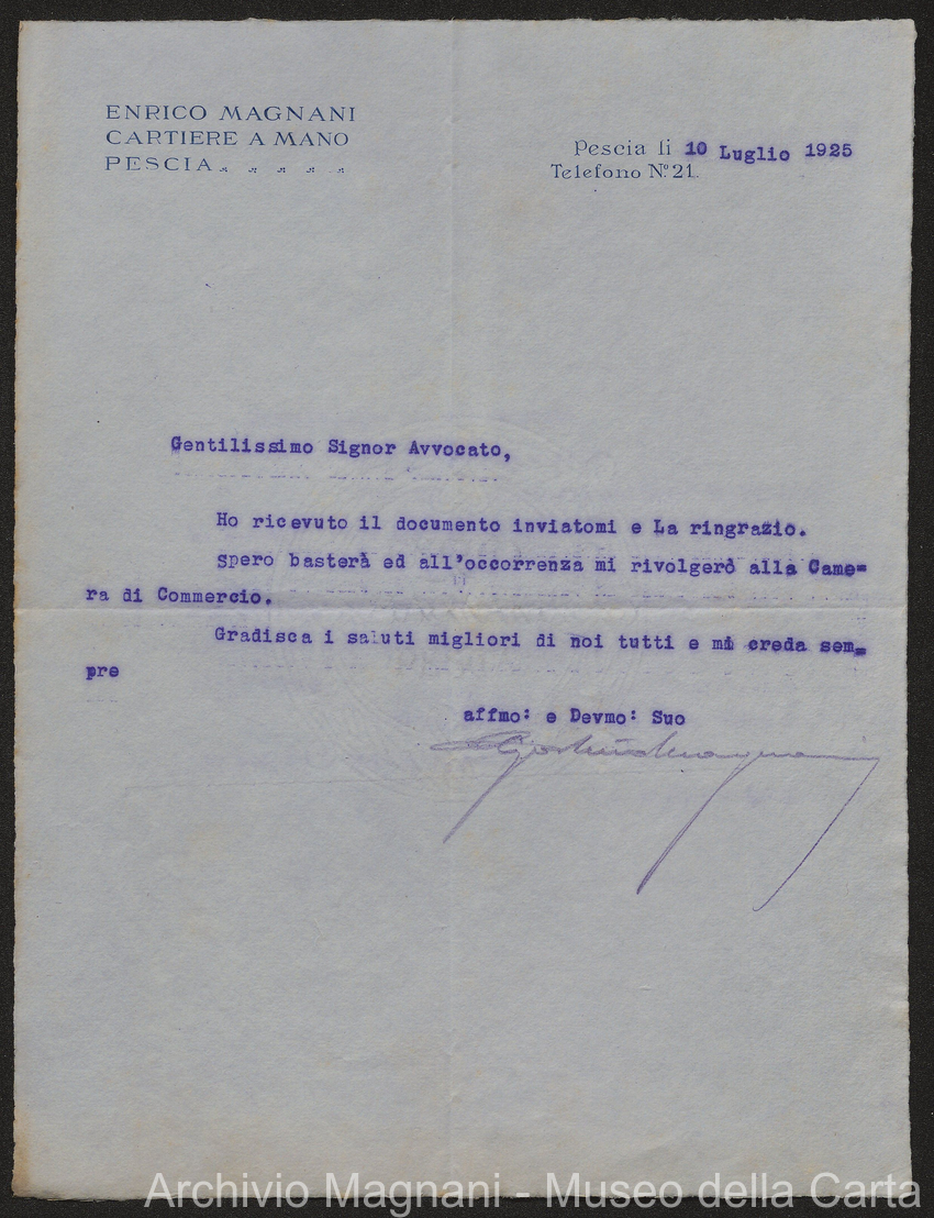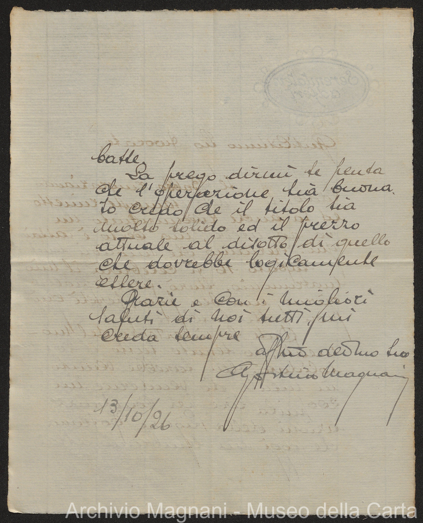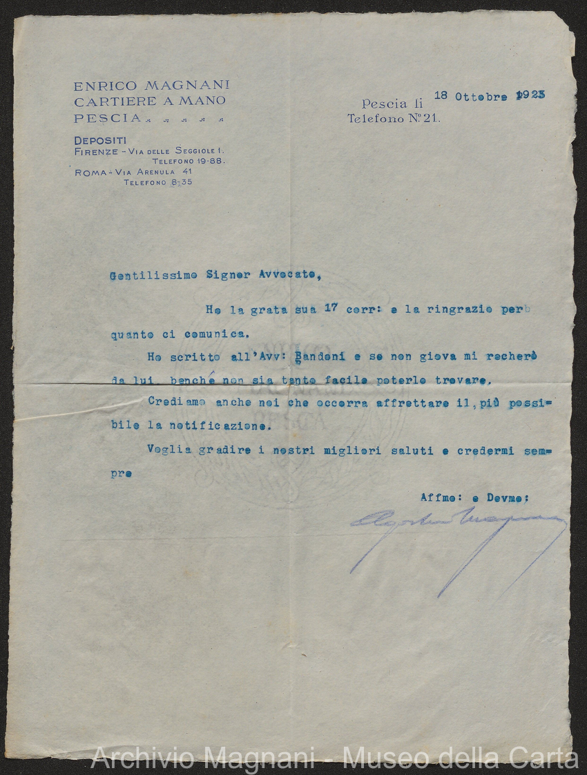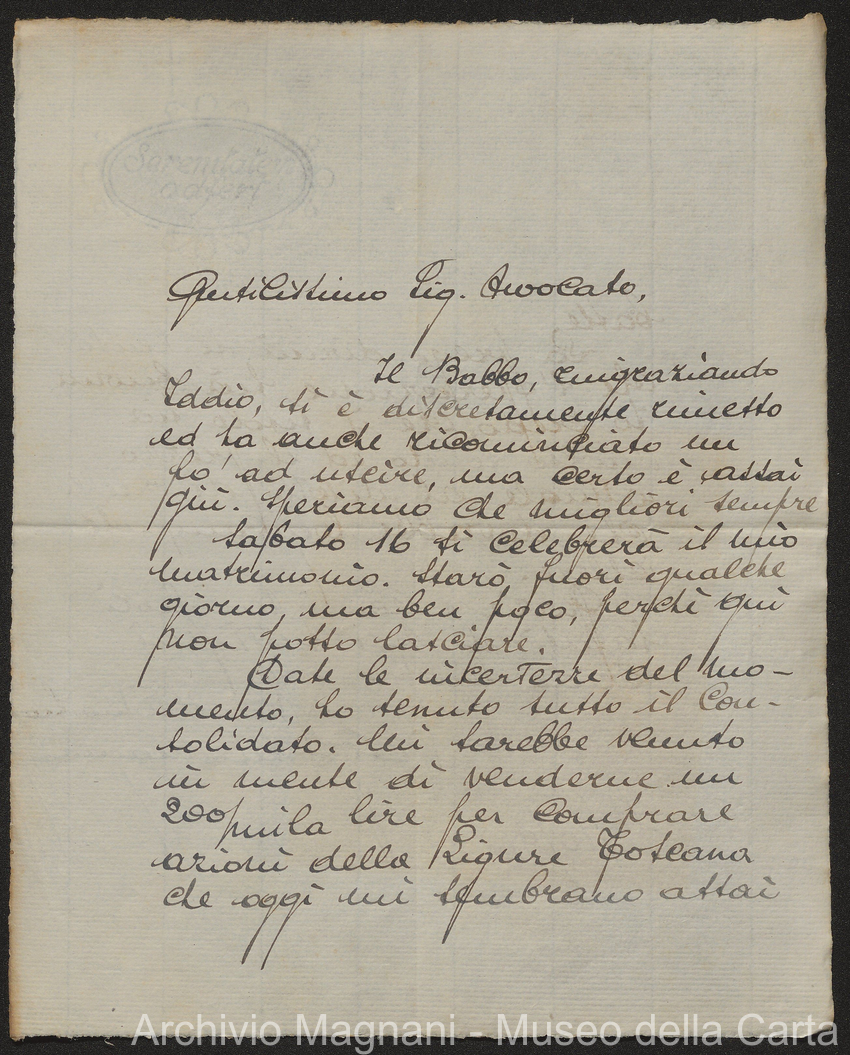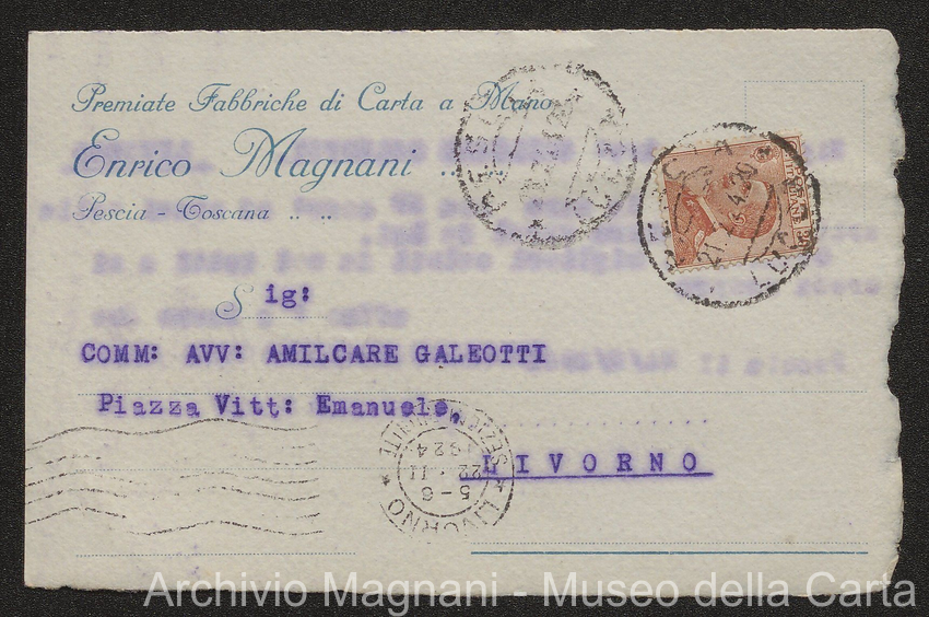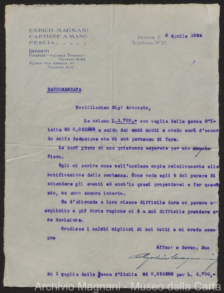 Sentenze a stampa, 1917 e s.d., pp. 2-159; "Cessioni del fallimento di Giorgio", 1913-19, pp. 160-186; "Corrispondenza con l'Avv. A. Galeotti e altri", 1922-32 e 1 s.d. (ante 1927), pp. 187-605; "Enrico Magnani. Carte diverse", 1927 e 6 s.d., pp. 606-622.