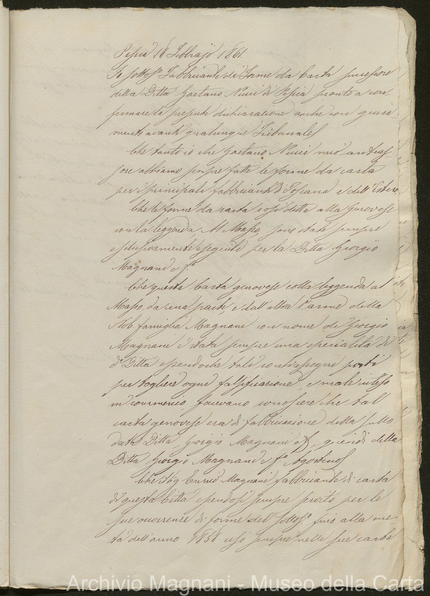 Tribunale di Prima Istanza di Lucca - Enrico Magnani - Giorgio Magnani - Domenico Bajocchi - Causa Giorgio Magnani di Agostino - carta Al Masso - Agostino Magnani