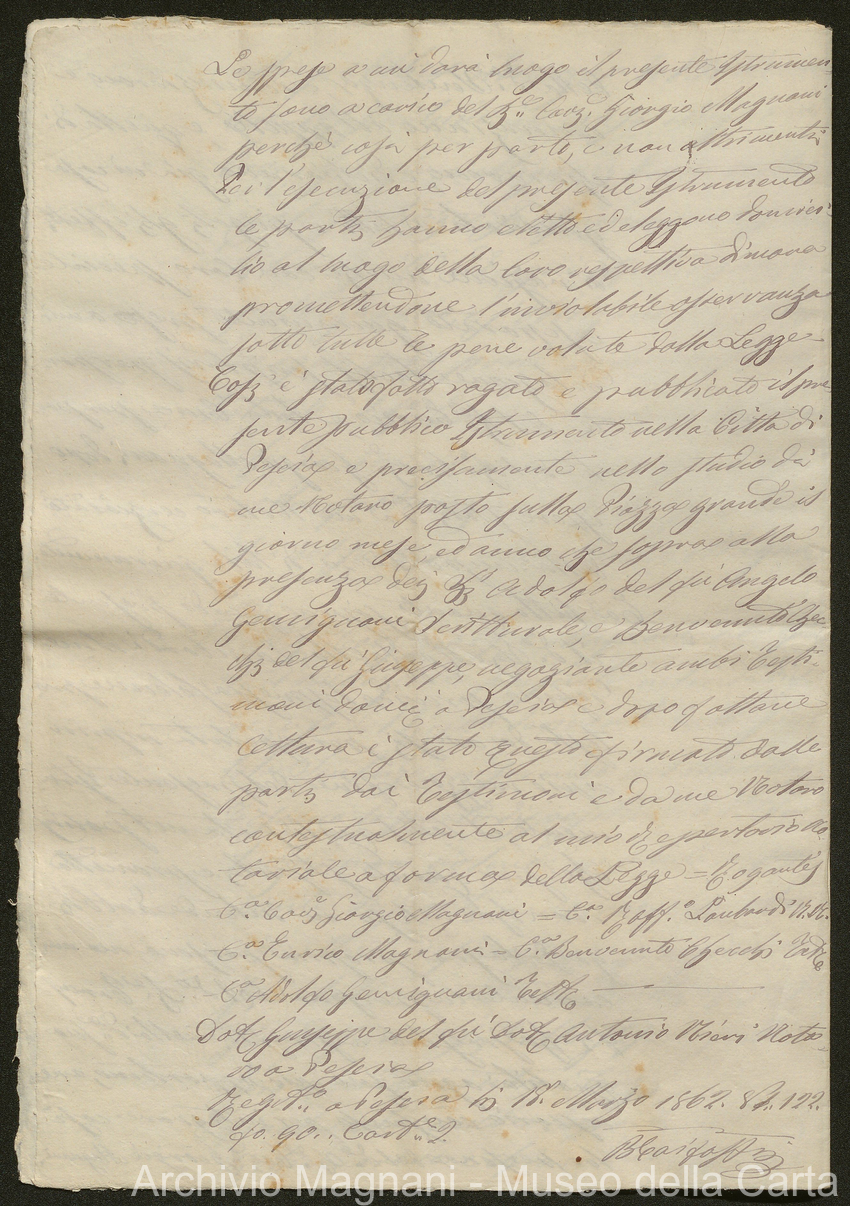 Tribunale di Prima Istanza di Lucca - Enrico Magnani - Giorgio Magnani - Domenico Bajocchi - Causa Giorgio Magnani di Agostino - carta Al Masso - Agostino Magnani