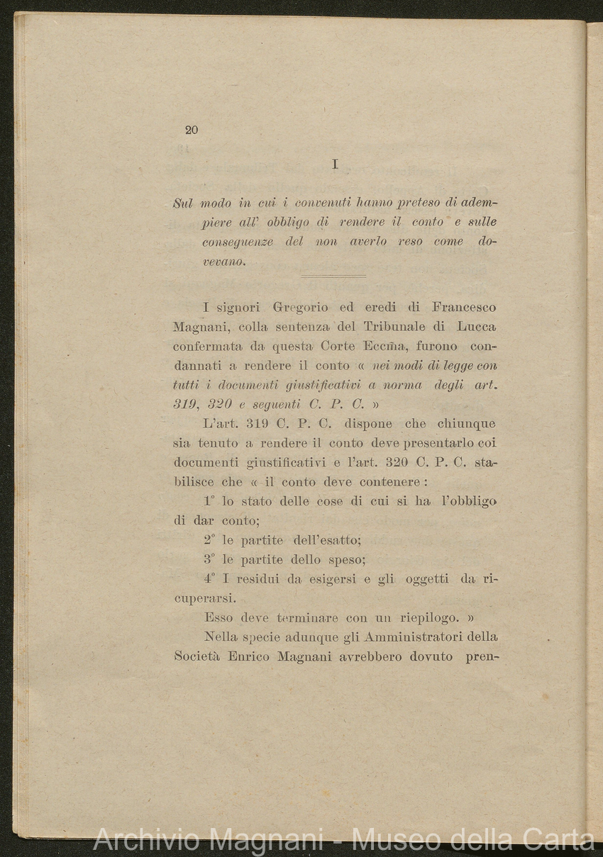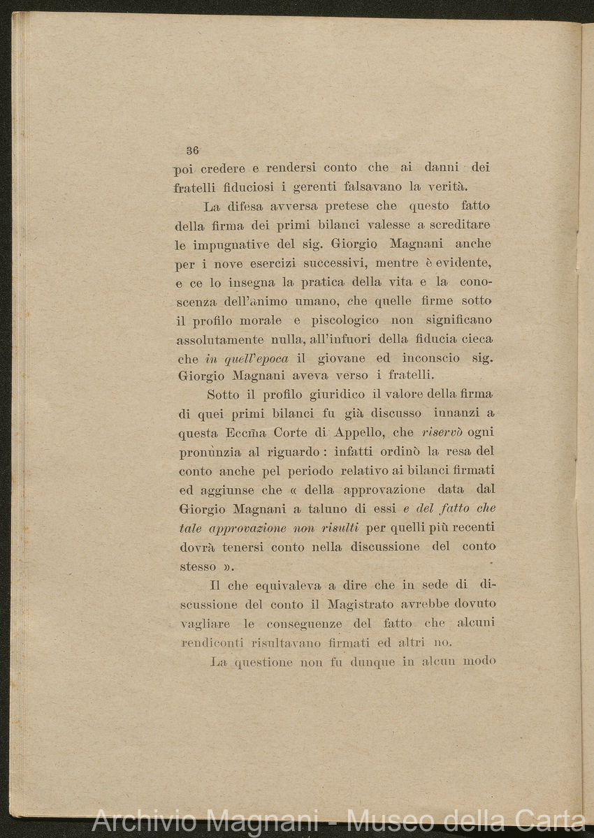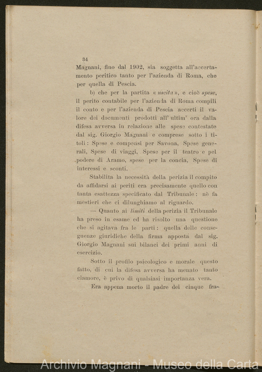 Causa Giorgio Magnani - sentenze - corrispondenza e comparse - Gregorio Magnani - Giuseppe Lumbroso - Giulio Buonamici - Amilcare Galeotti - Francesco Pacelli - Francesco Bandoni - Piero Magnani - Agostino Magnani - Leopoldo Lazzereschi