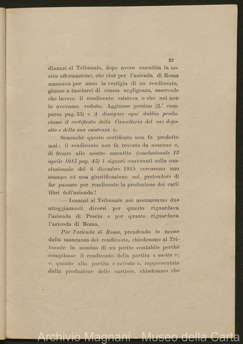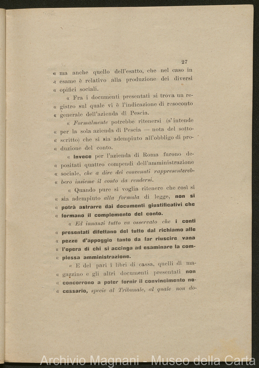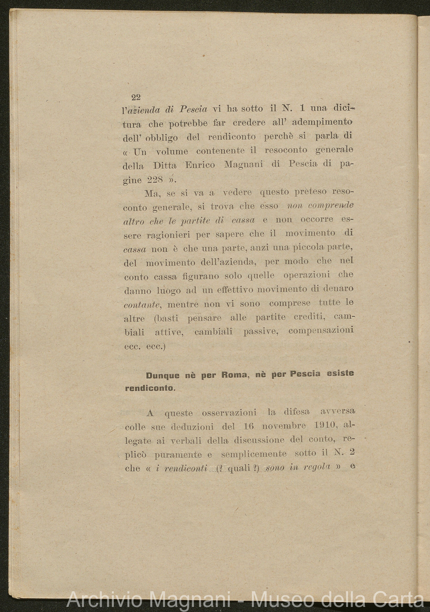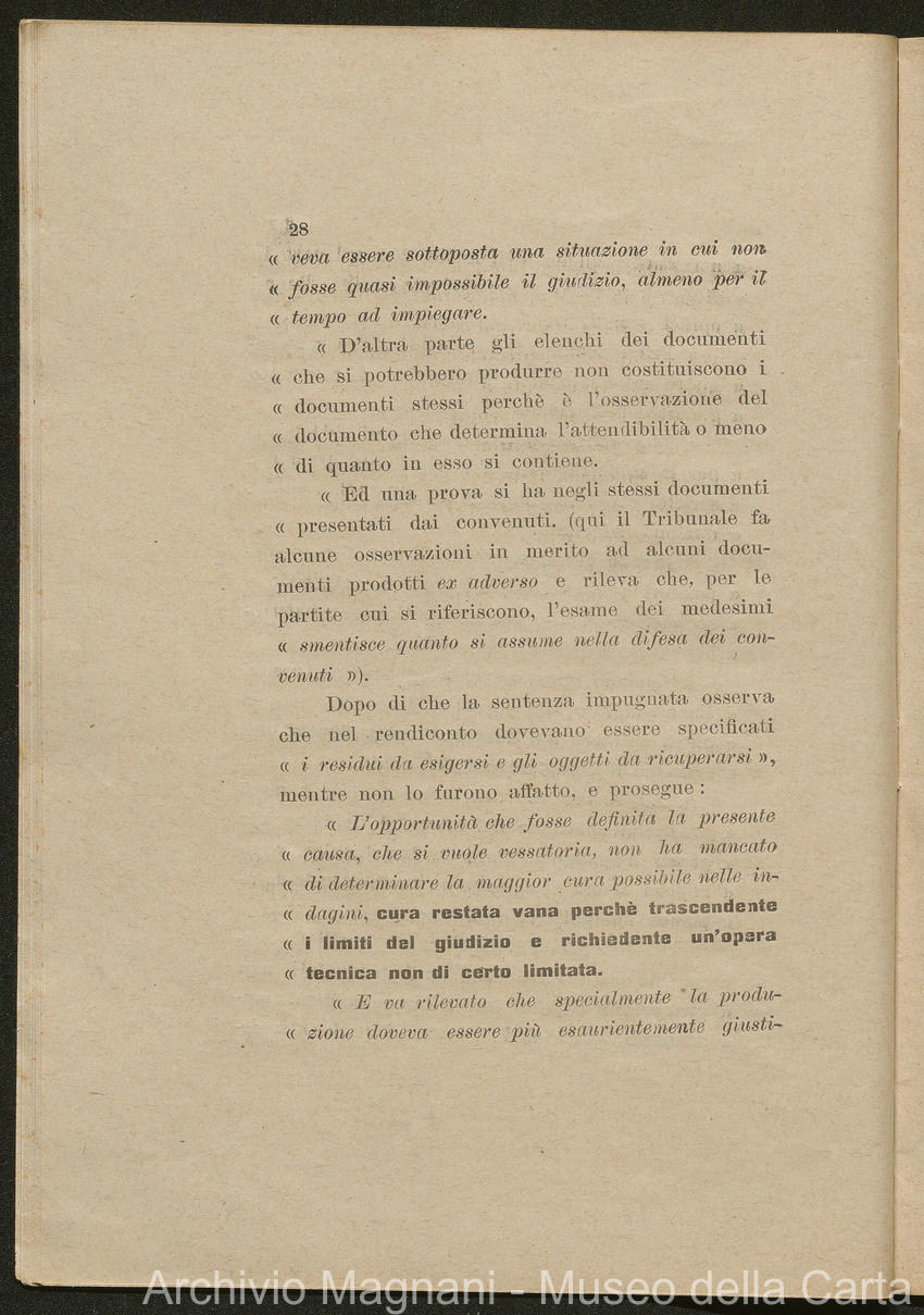 Sentenze a stampa, 1917 e s.d., pp. 2-159; "Cessioni del fallimento di Giorgio", 1913-19, pp. 160-186; "Corrispondenza con l'Avv. A. Galeotti e altri", 1922-32 e 1 s.d. (ante 1927), pp. 187-605; "Enrico Magnani. Carte diverse", 1927 e 6 s.d., pp. 606-622.