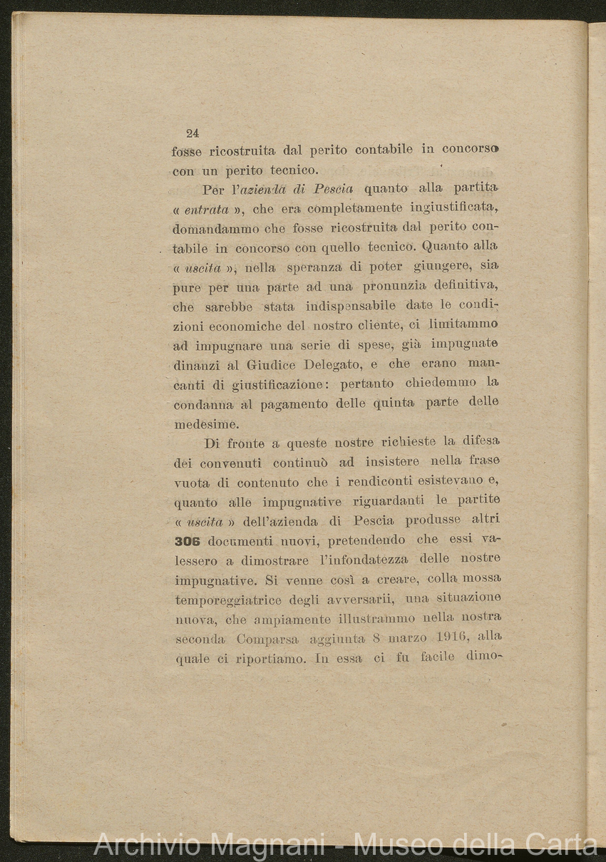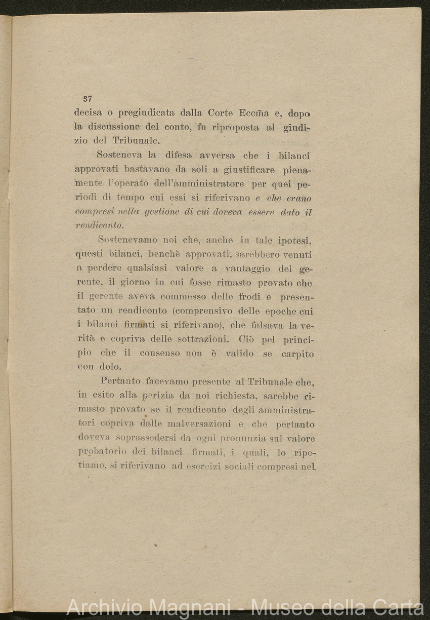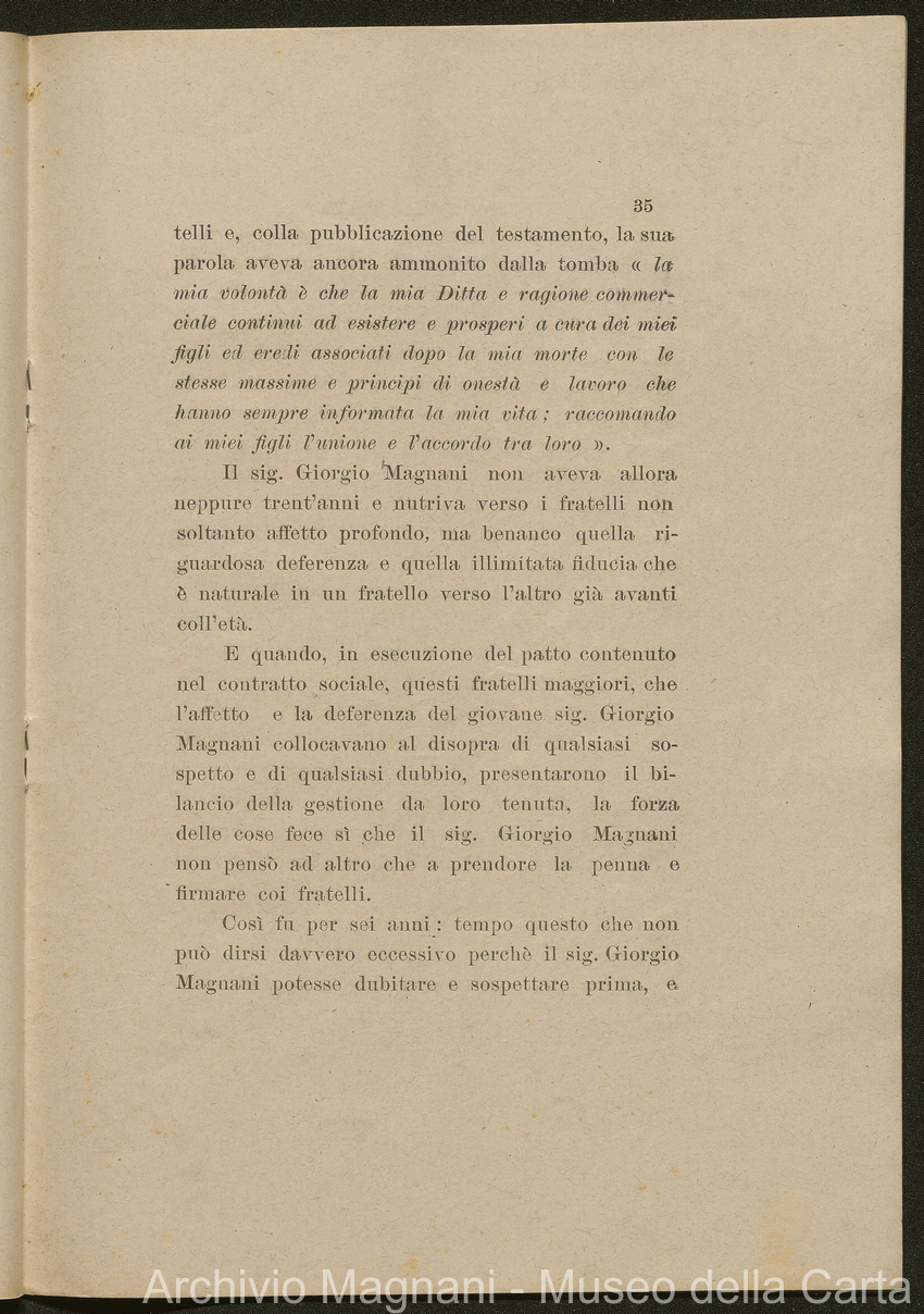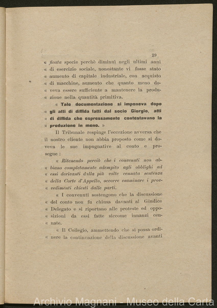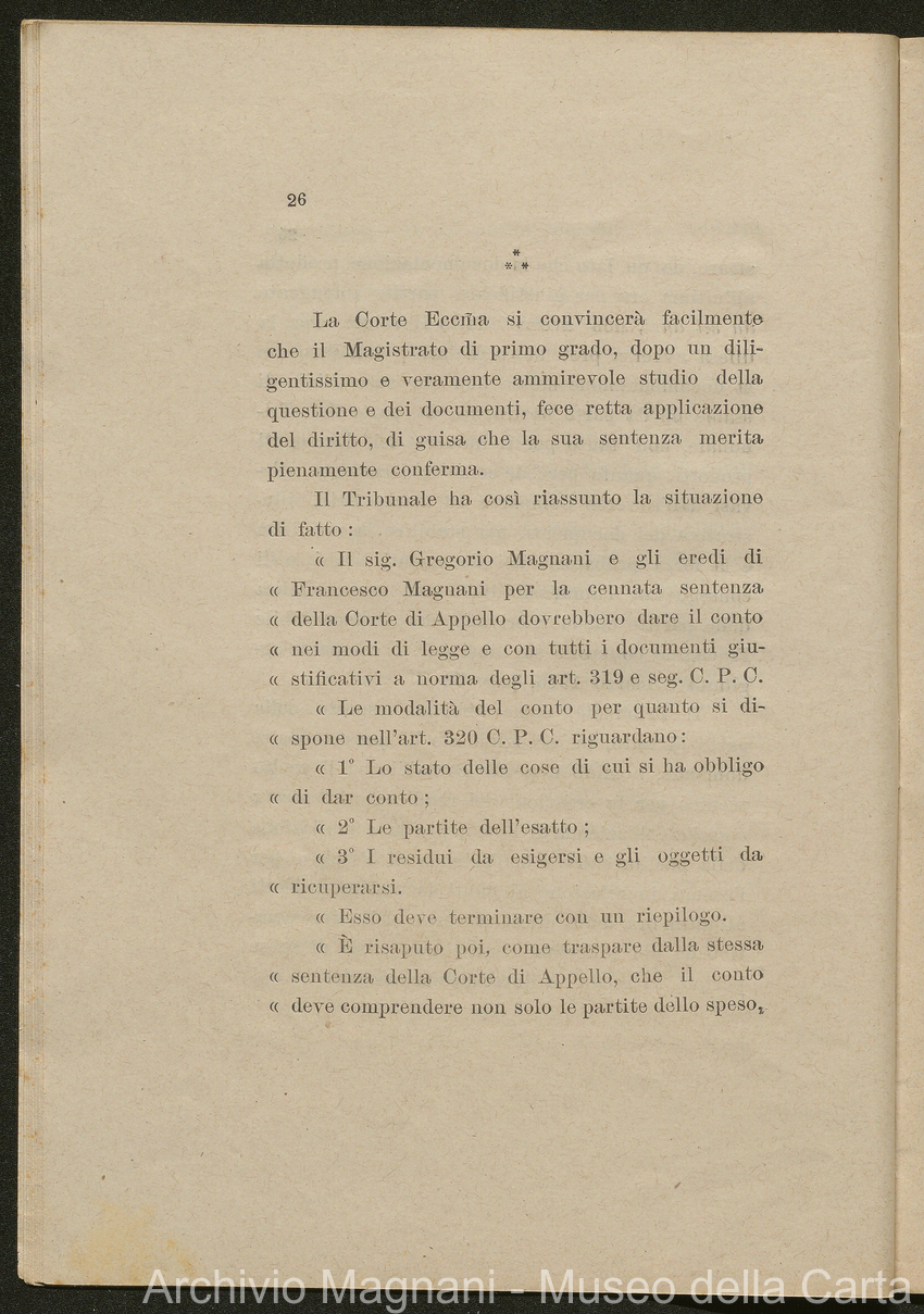 Sentenze a stampa, 1917 e s.d., pp. 2-159; "Cessioni del fallimento di Giorgio", 1913-19, pp. 160-186; "Corrispondenza con l'Avv. A. Galeotti e altri", 1922-32 e 1 s.d. (ante 1927), pp. 187-605; "Enrico Magnani. Carte diverse", 1927 e 6 s.d., pp. 606-622.
