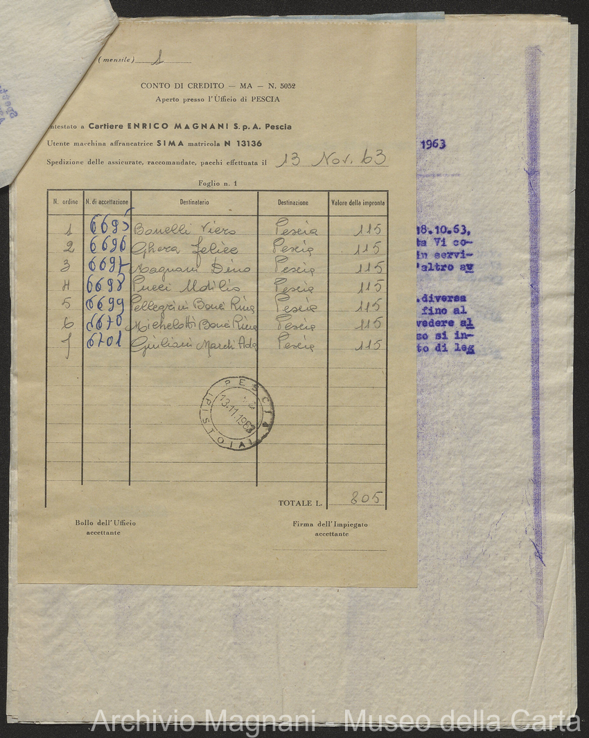 Vendita Cartiera Ponte Gemolano - B|F I/63 - Cartiere Enrico Magnani - Carlo Magnani - Giancarlo Unti - Ottavio Checchi - Carlo Bellandi, notaio