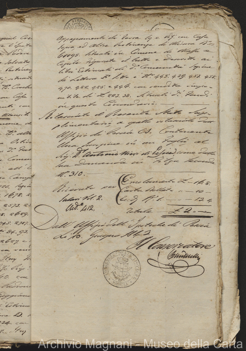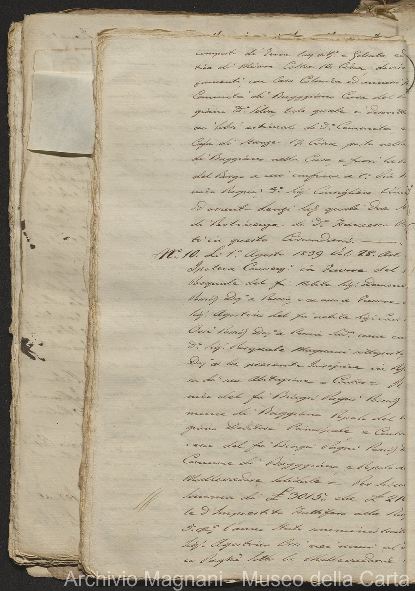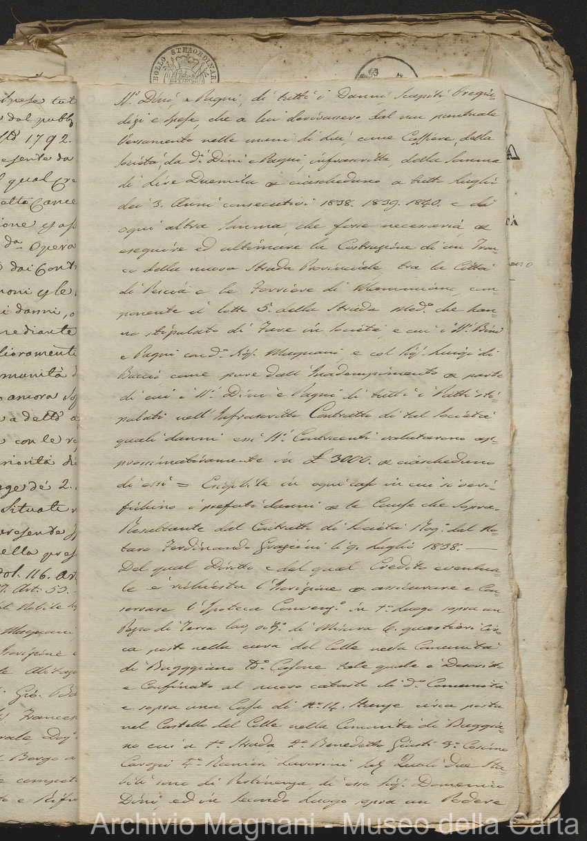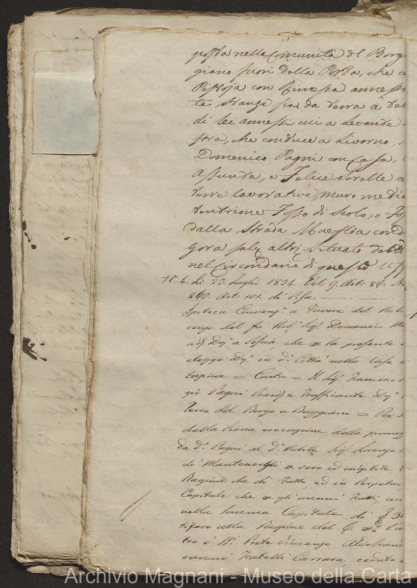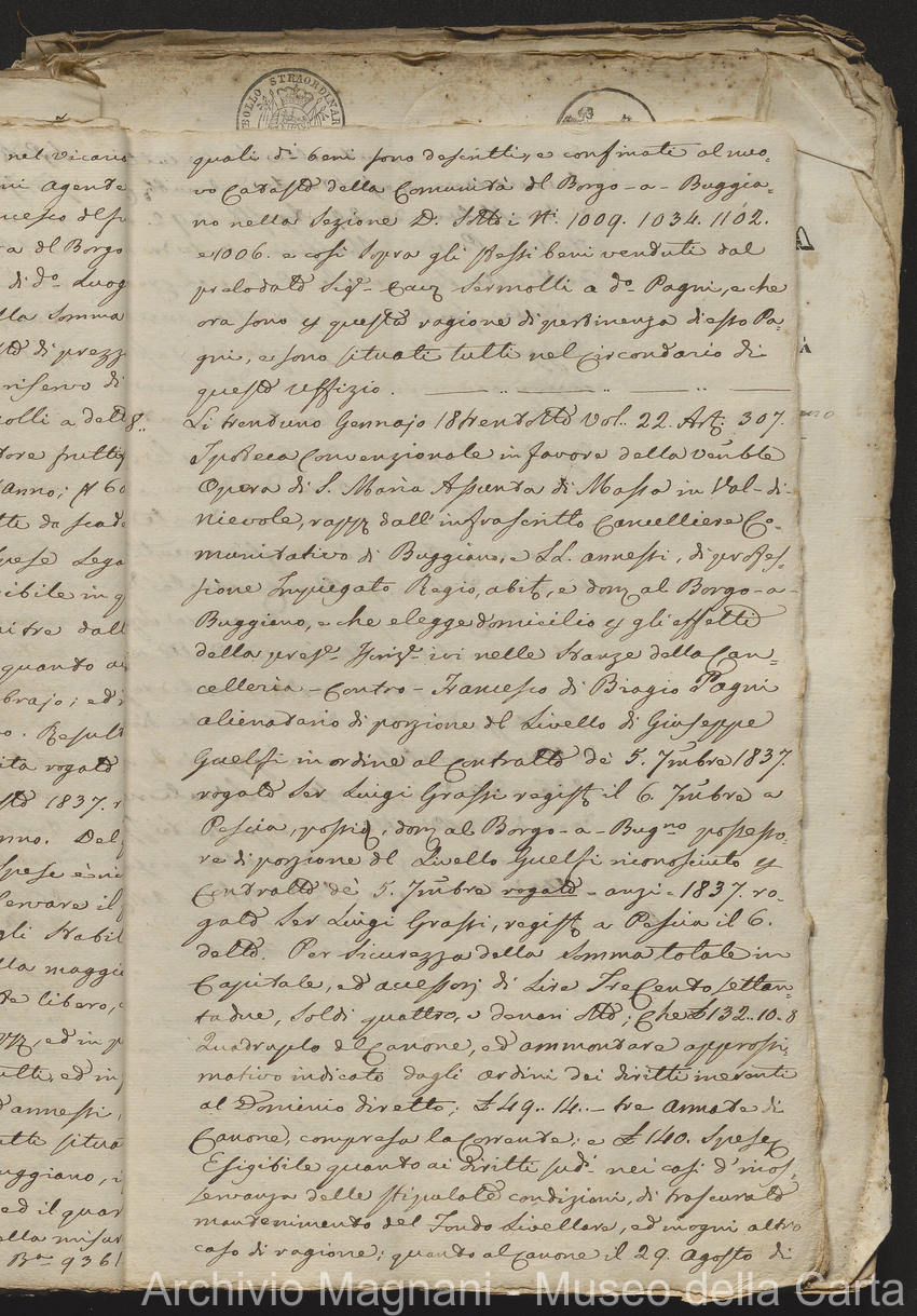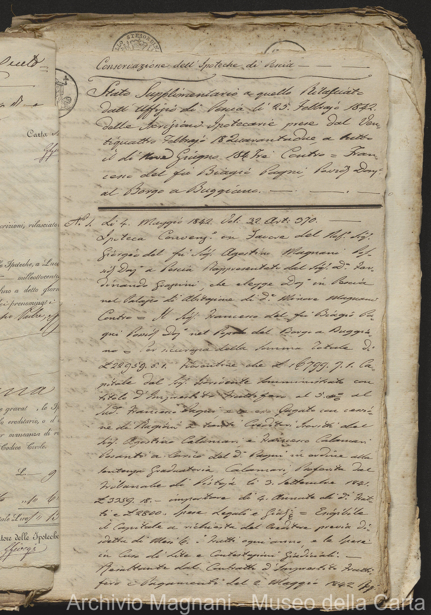 Filza di contr. di prestito, note di credito ipotecario, conserv. ipoteche di Lucca e di Pescia, 2 campioni del catasto (copie), costit. e vendita di censo, cessione di credito, dimostr. graduatoria Calamari, rinuncia; pp. 19-245, di cui XLI bianche