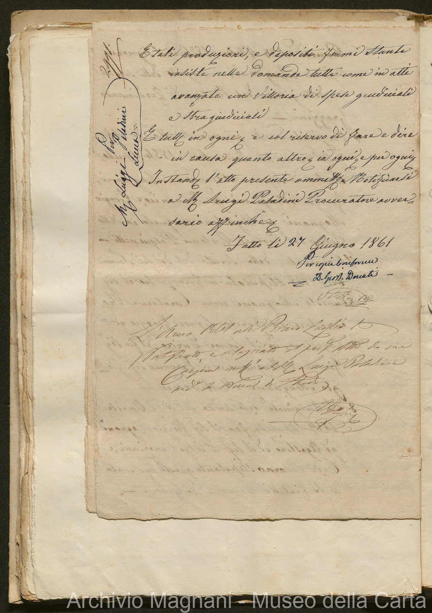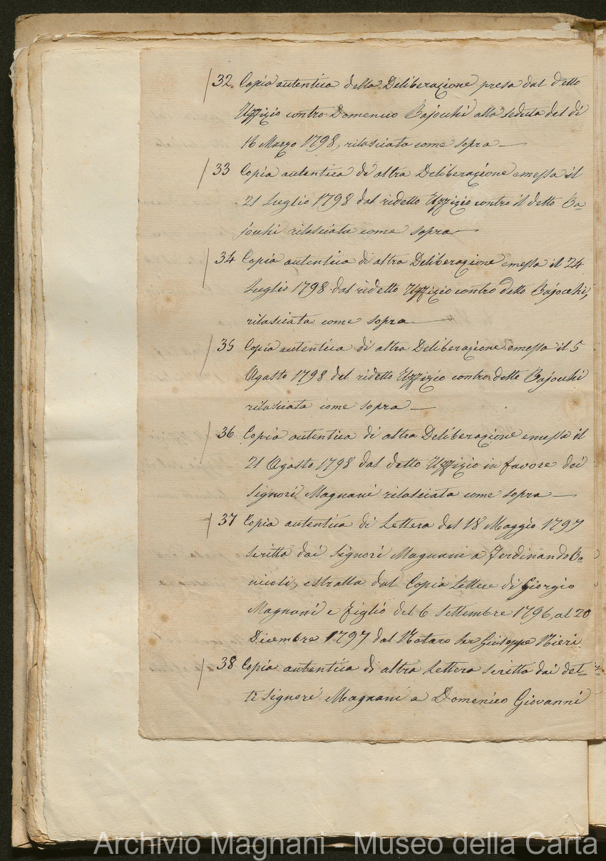 Tribunale di Prima Istanza di Lucca - Enrico Magnani - Giorgio Magnani - Domenico Bajocchi - Causa Giorgio Magnani di Agostino - carta Al Masso - Agostino Magnani