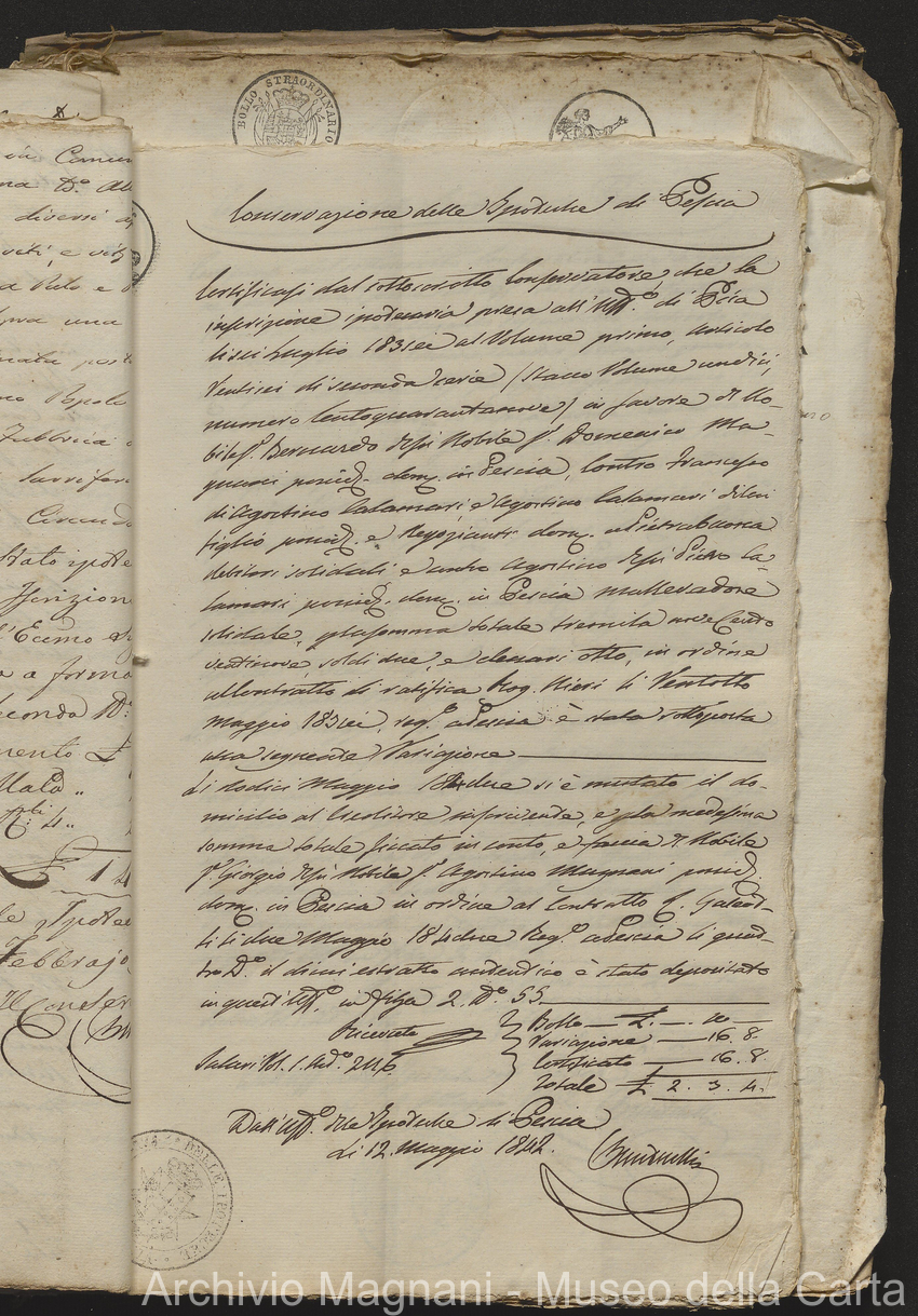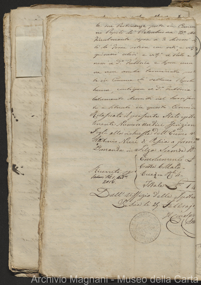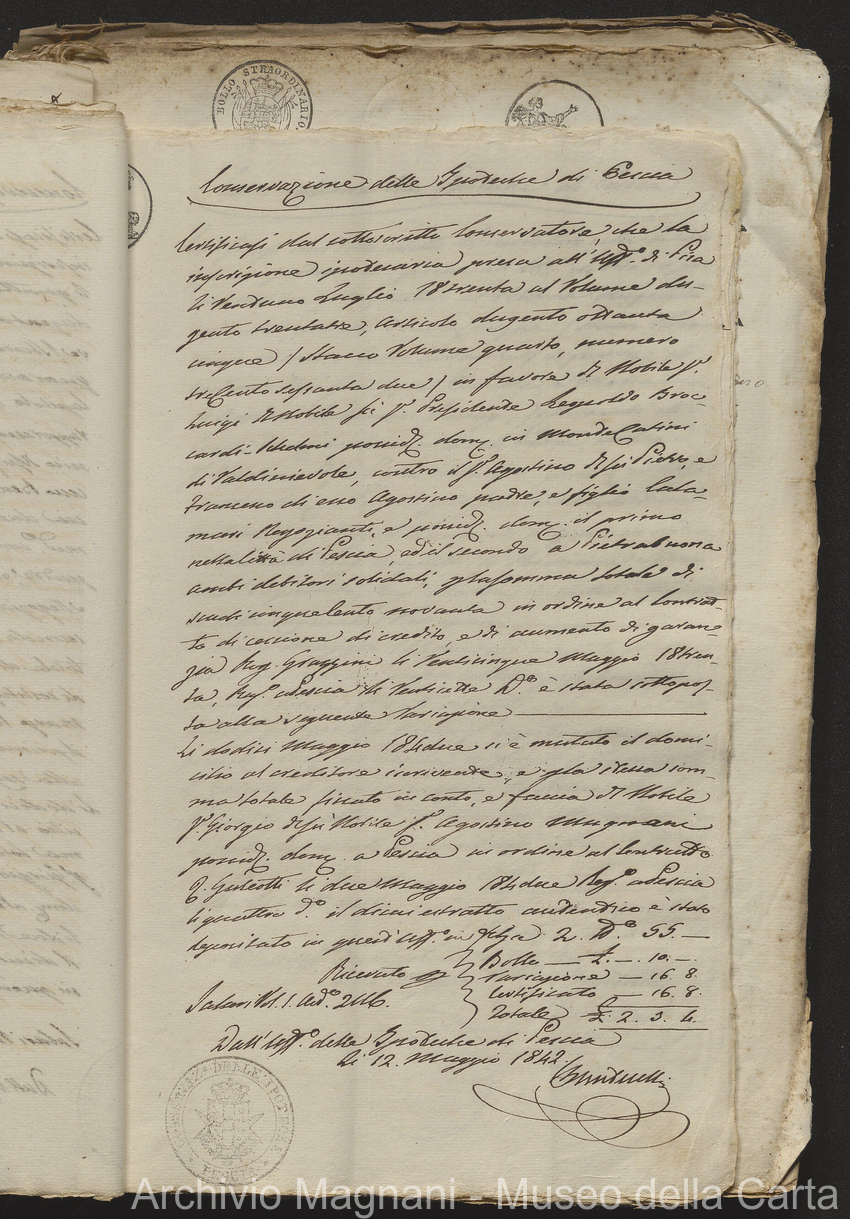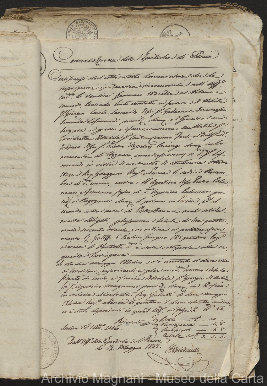 Filza di contr. di prestito, note di credito ipotecario, conserv. ipoteche di Lucca e di Pescia, 2 campioni del catasto (copie), costit. e vendita di censo, cessione di credito, dimostr. graduatoria Calamari, rinuncia; pp. 19-245, di cui XLI bianche