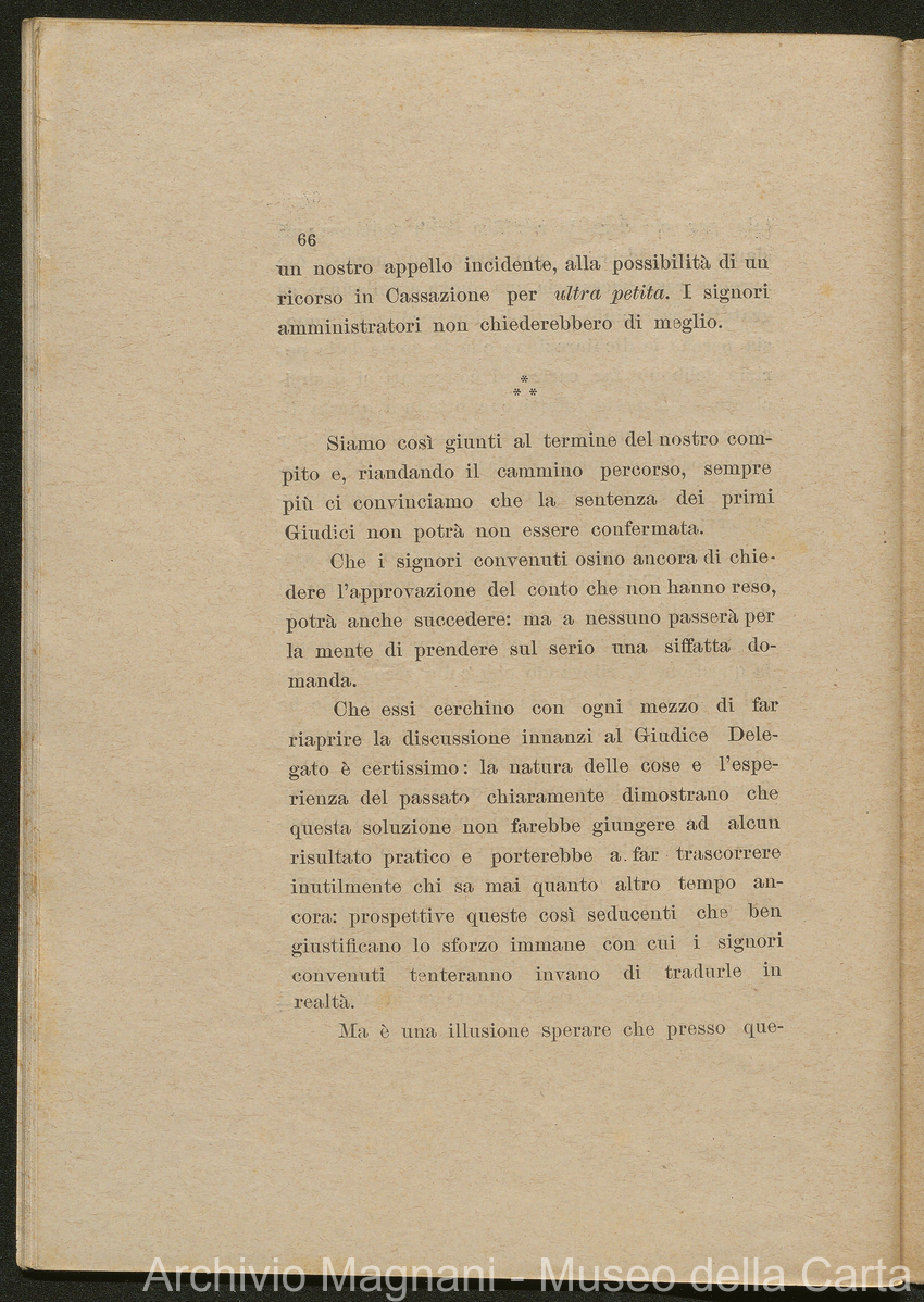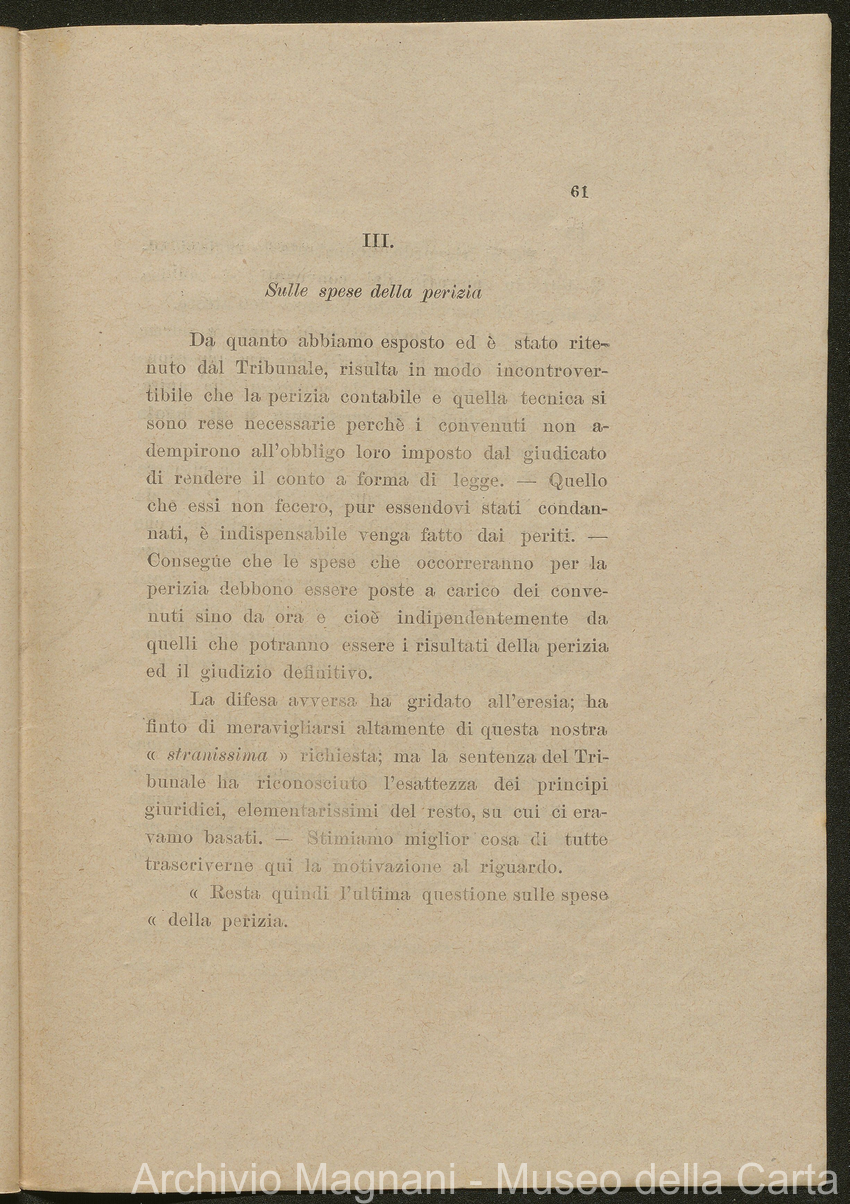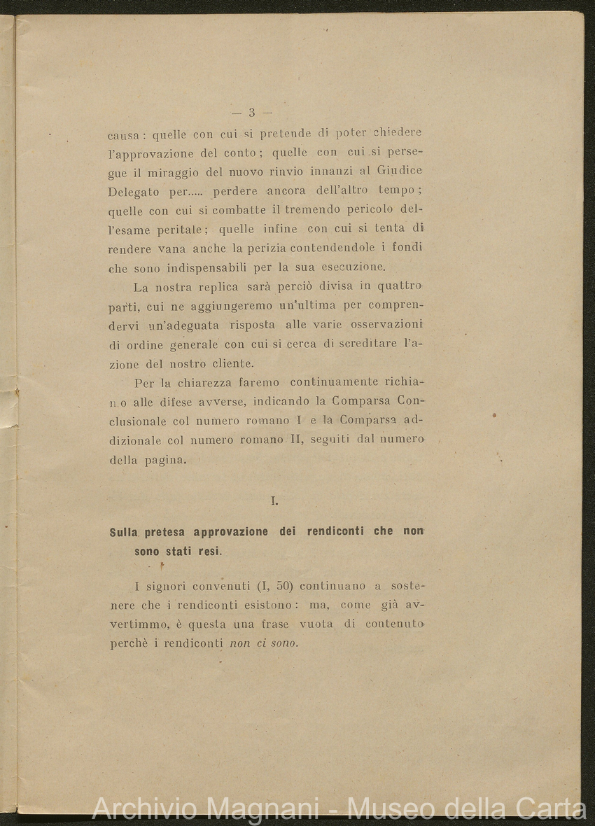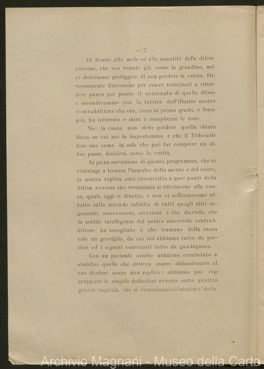 Sentenze a stampa, 1917 e s.d., pp. 2-159; "Cessioni del fallimento di Giorgio", 1913-19, pp. 160-186; "Corrispondenza con l'Avv. A. Galeotti e altri", 1922-32 e 1 s.d. (ante 1927), pp. 187-605; "Enrico Magnani. Carte diverse", 1927 e 6 s.d., pp. 606-622.