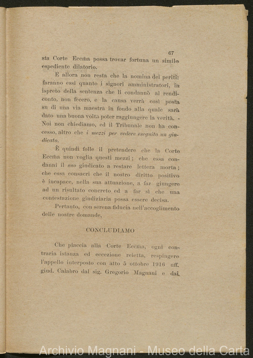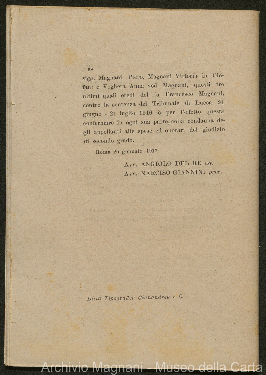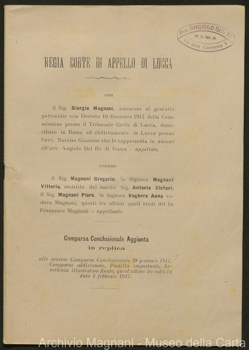 Causa Giorgio Magnani - sentenze - corrispondenza e comparse - Gregorio Magnani - Giuseppe Lumbroso - Giulio Buonamici - Amilcare Galeotti - Francesco Pacelli - Francesco Bandoni - Piero Magnani - Agostino Magnani - Leopoldo Lazzereschi