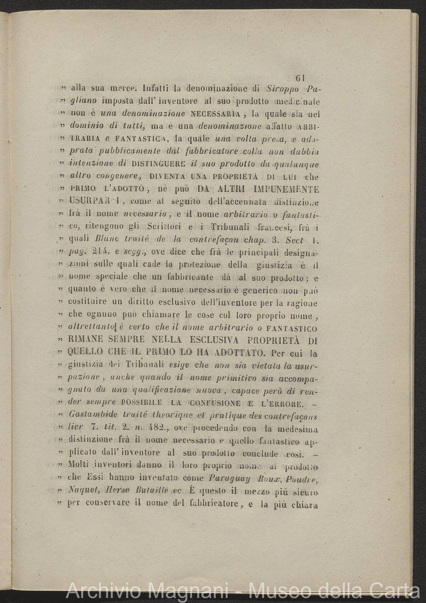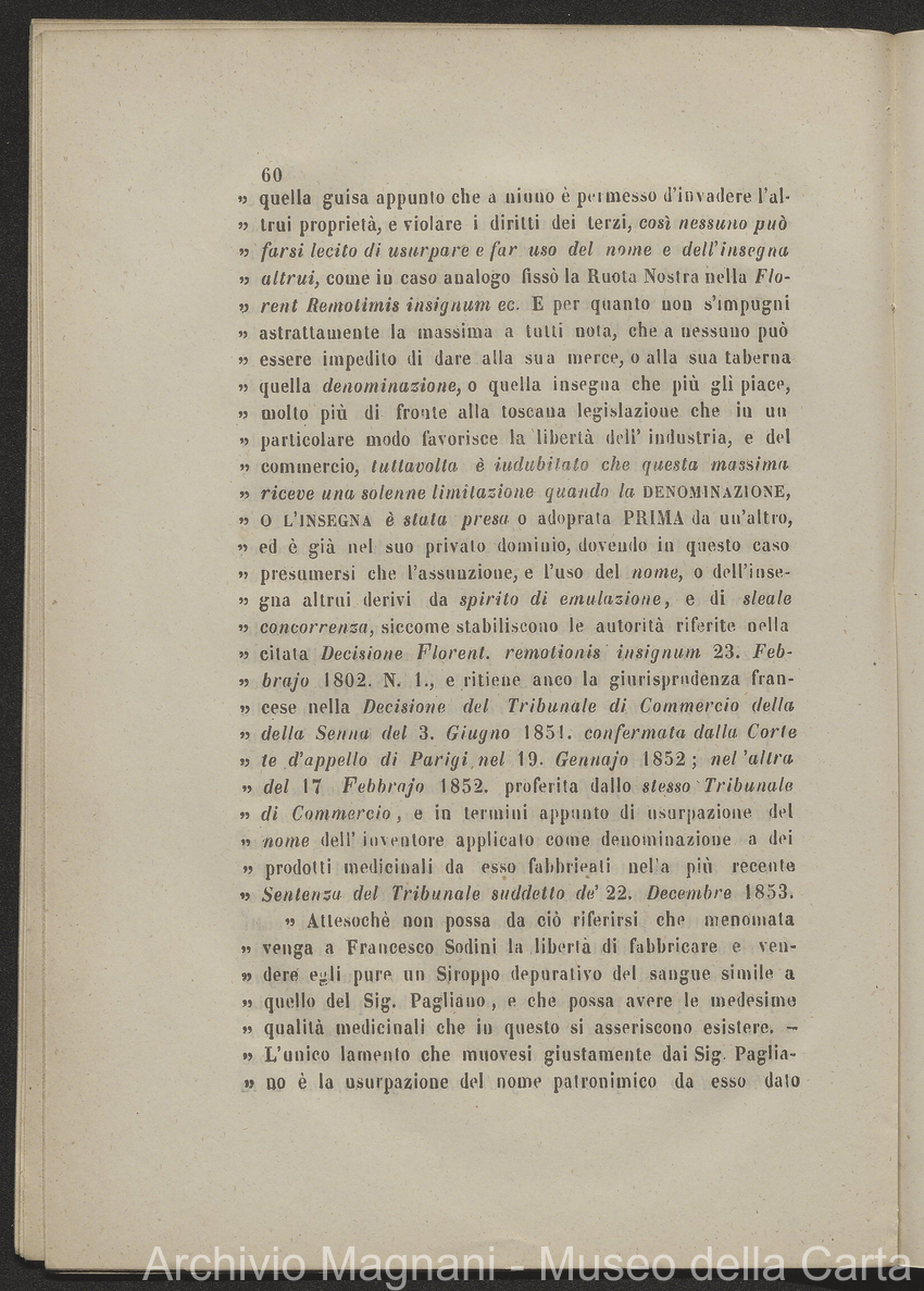 Allegazione di diritto e di fatto a favore del Nobile sig. Giorgio Magnani contro il sig. Enrico Magnani : Emulativa usurpazione di Marca Commerciale / R. Tribunale di prima istanza di Lucca; Firenze : Tipografia Bonducciana; 143 p. ; 28 cm