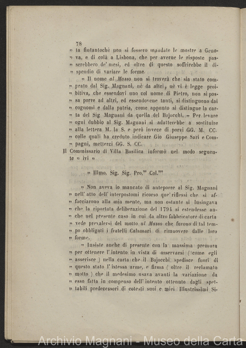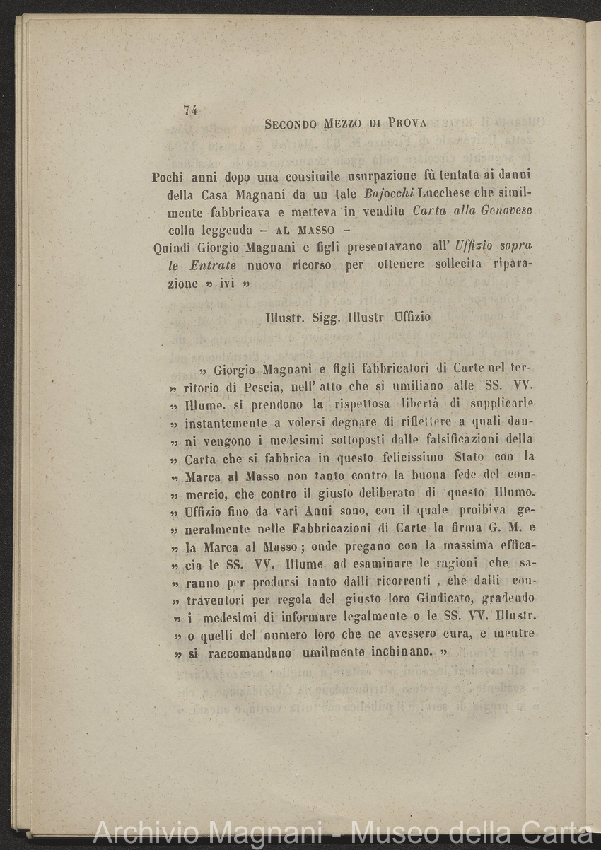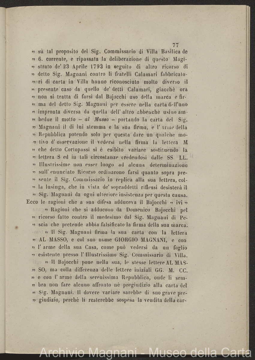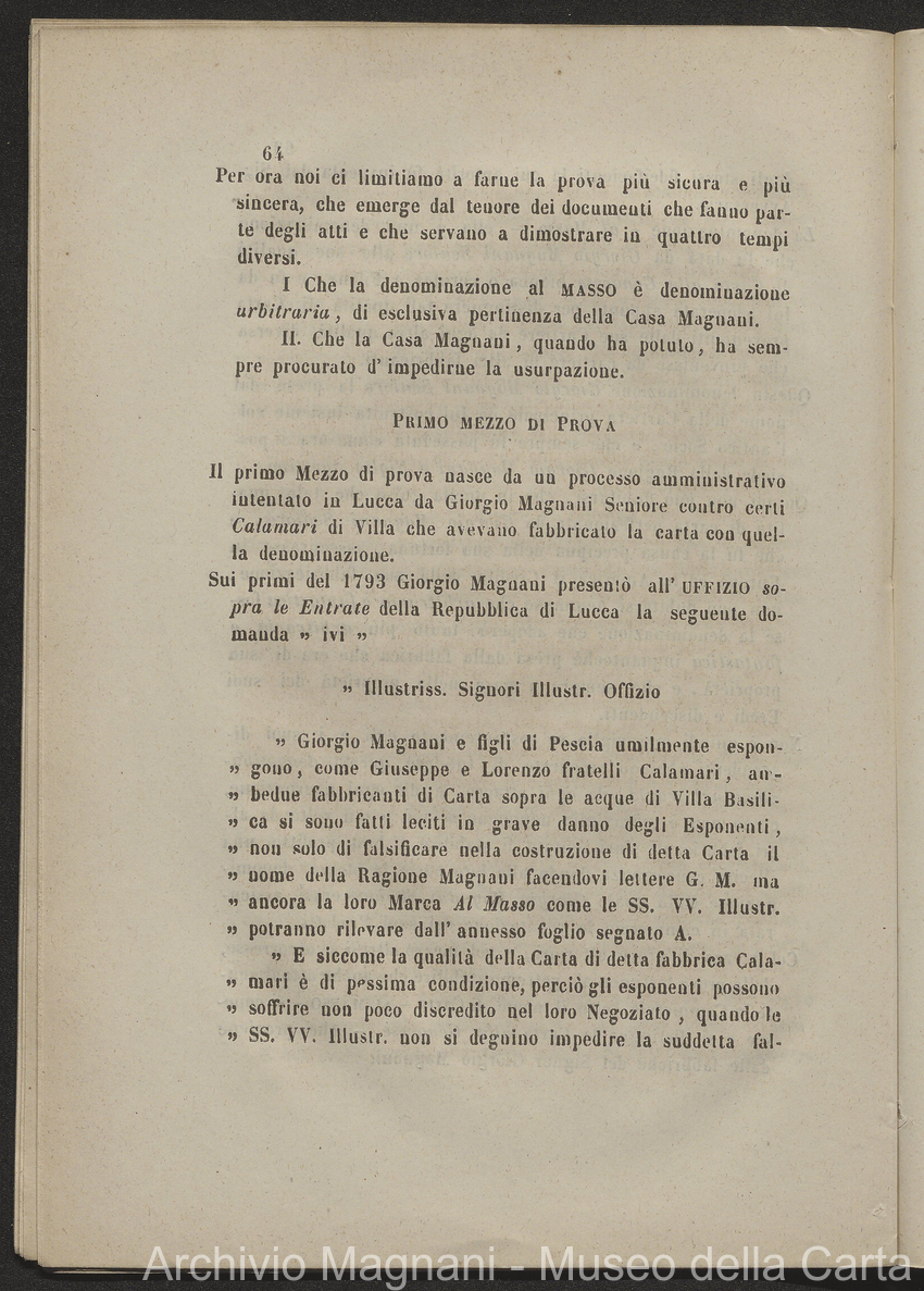 Tribunale di Prima Istanza di Lucca - causa - Giorgio Magnani - Enrico Magnani - marca commerciale - Cartiera del Masso - carta al Masso - Domenico Bajocchi - Leopoldo Galeotti - Isidoro Del Re - Giovan Battista Donati
