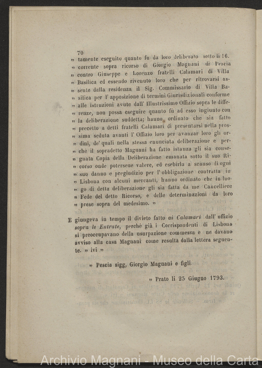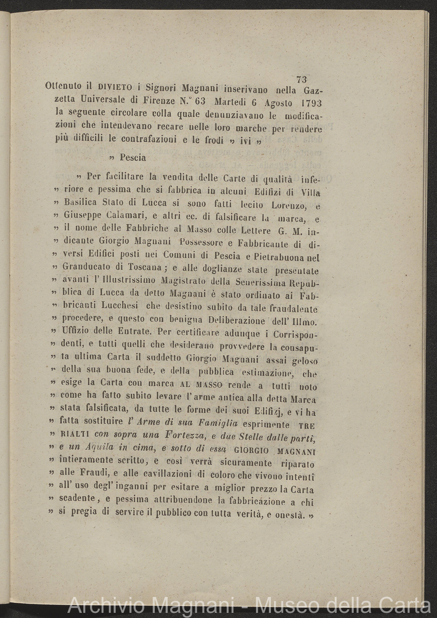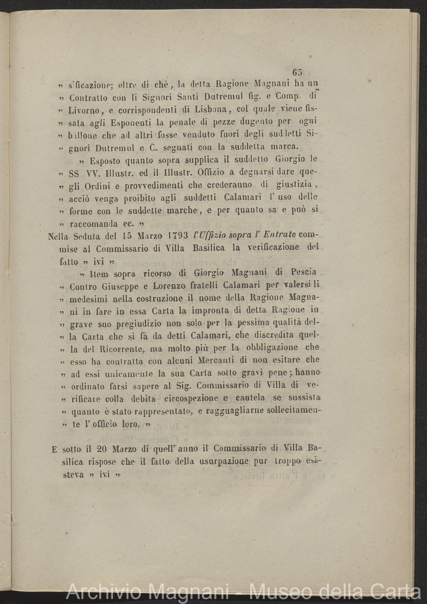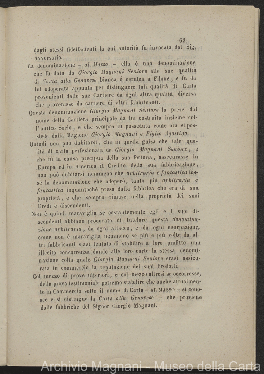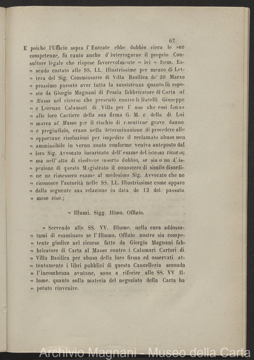 Tribunale di Prima Istanza di Lucca - causa - Giorgio Magnani - Enrico Magnani - marca commerciale - Cartiera del Masso - carta al Masso - Domenico Bajocchi - Leopoldo Galeotti - Isidoro Del Re - Giovan Battista Donati