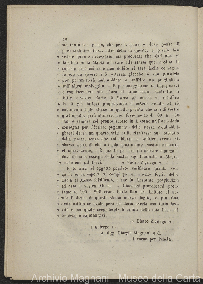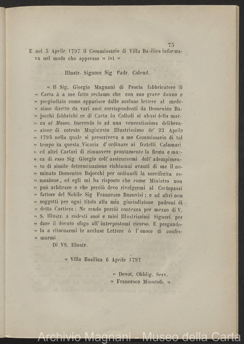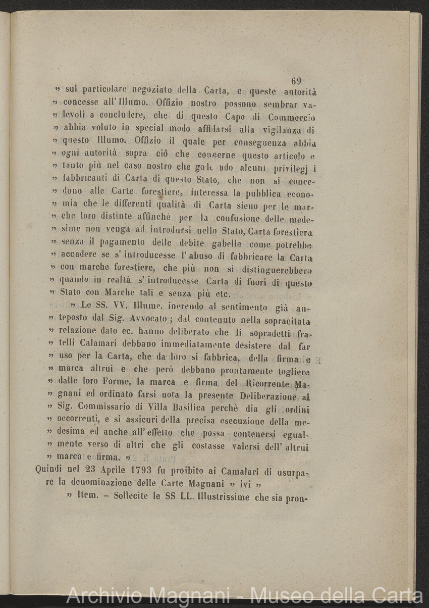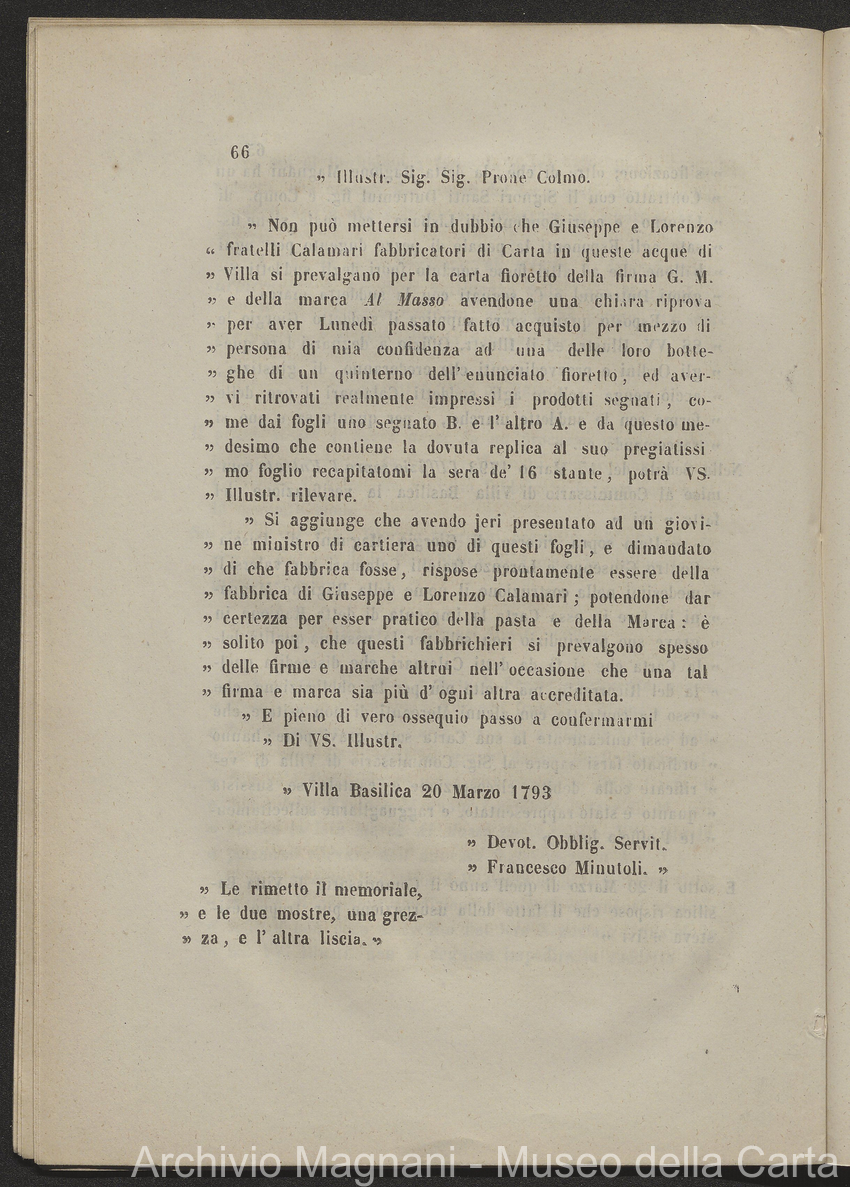 Tribunale di Prima Istanza di Lucca - causa - Giorgio Magnani - Enrico Magnani - marca commerciale - Cartiera del Masso - carta al Masso - Domenico Bajocchi - Leopoldo Galeotti - Isidoro Del Re - Giovan Battista Donati