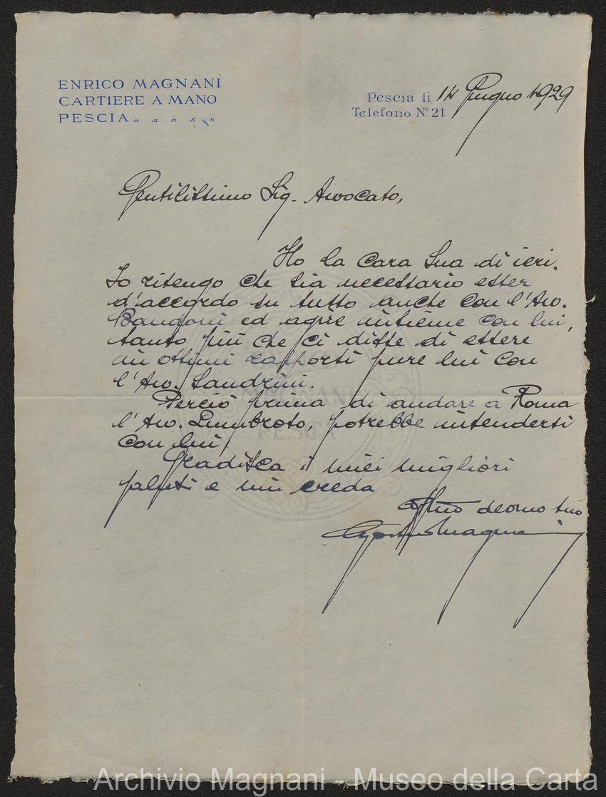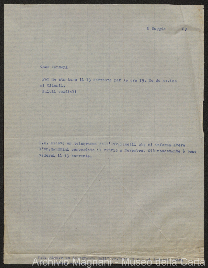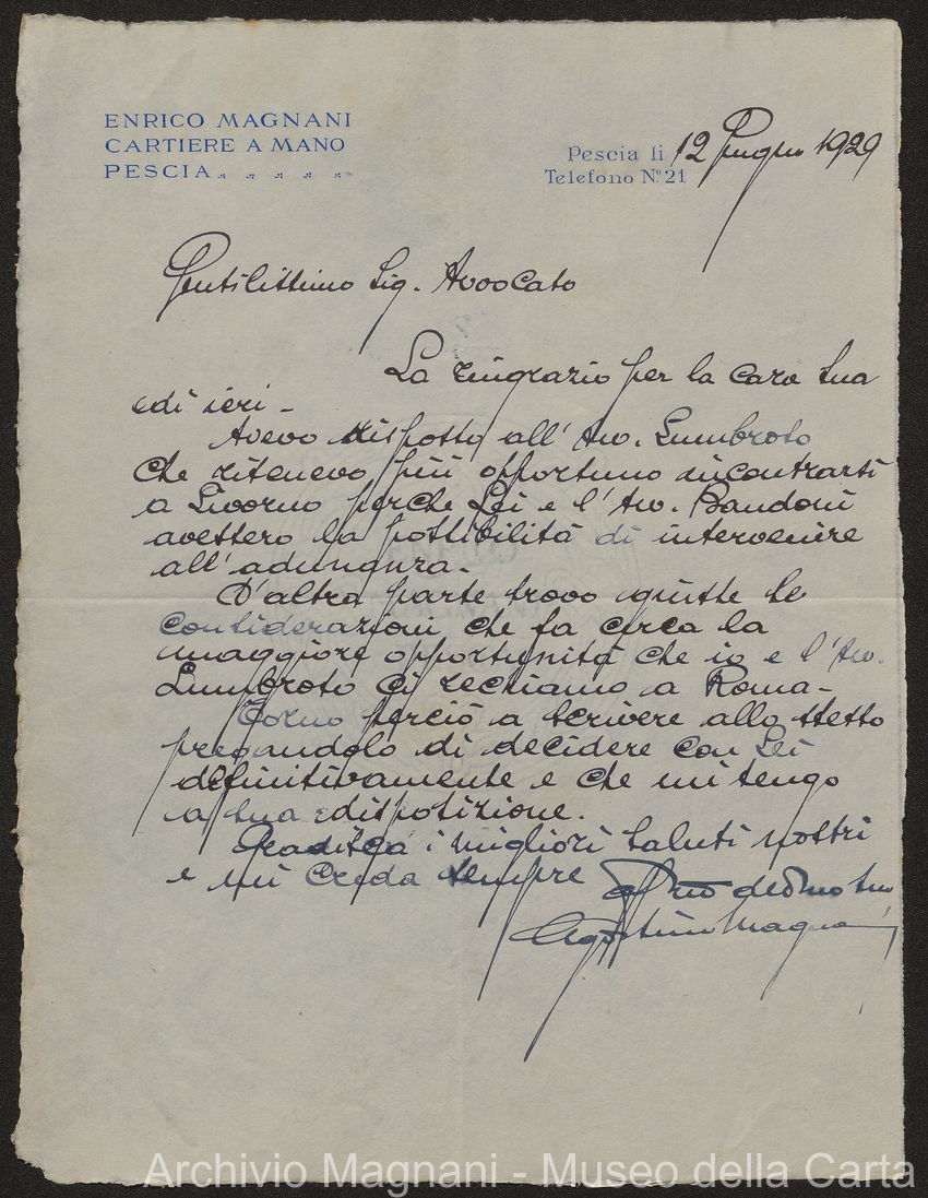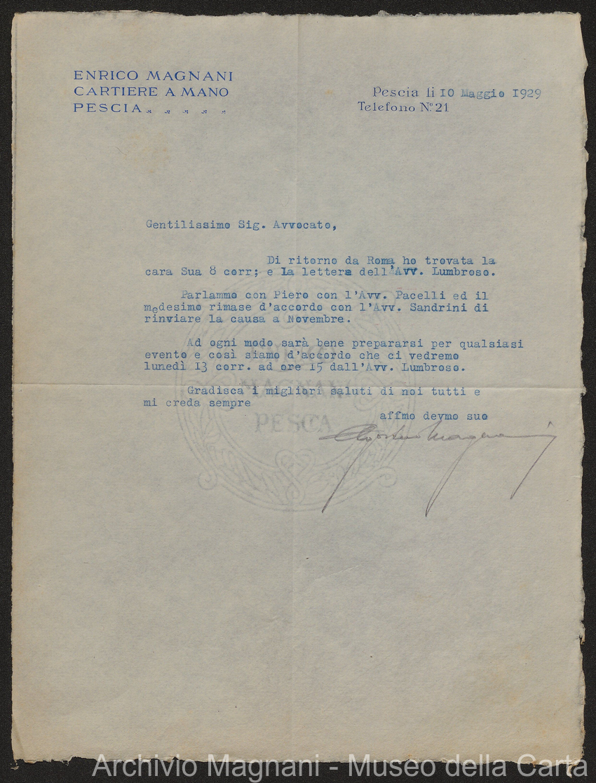 Causa Giorgio Magnani - sentenze - corrispondenza e comparse - Gregorio Magnani - Giuseppe Lumbroso - Giulio Buonamici - Amilcare Galeotti - Francesco Pacelli - Francesco Bandoni - Piero Magnani - Agostino Magnani - Leopoldo Lazzereschi