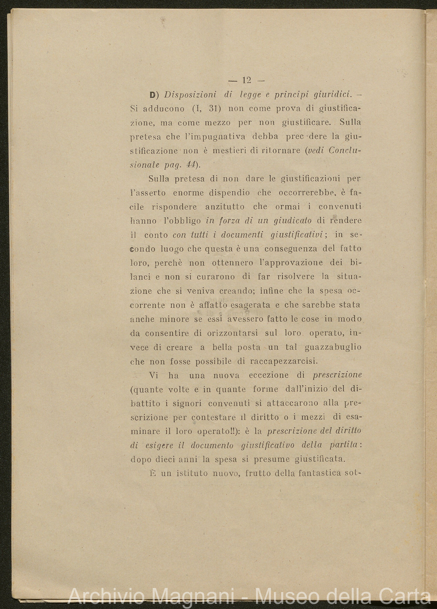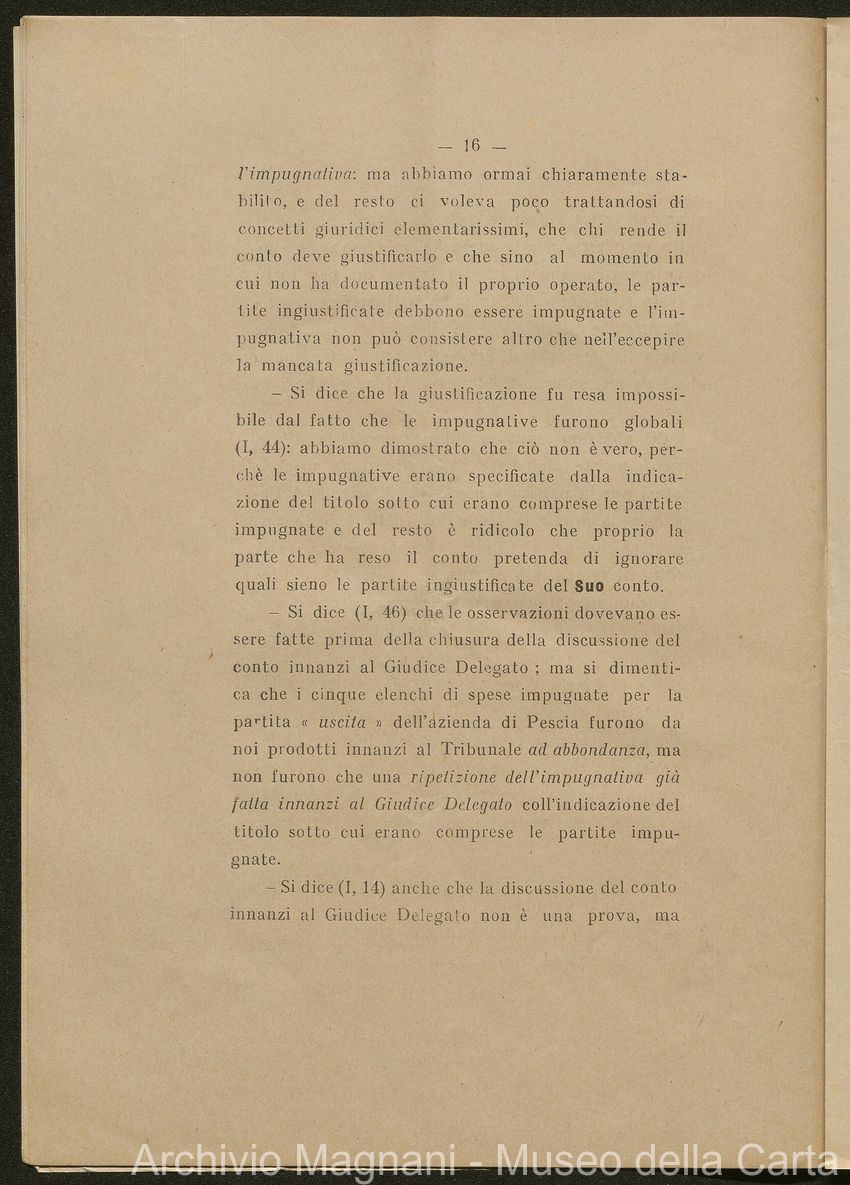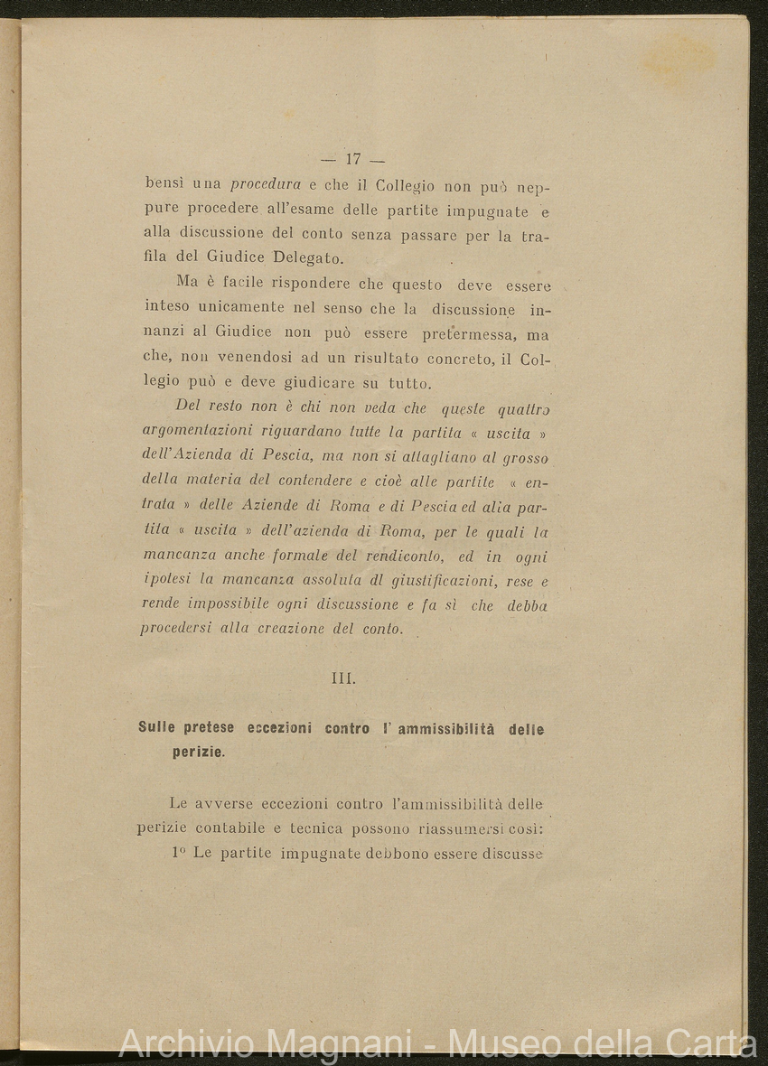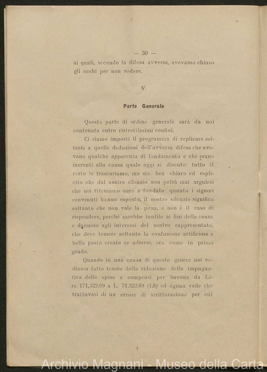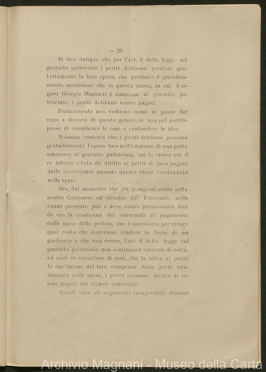Sentenze a stampa, 1917 e s.d., pp. 2-159; "Cessioni del fallimento di Giorgio", 1913-19, pp. 160-186; "Corrispondenza con l'Avv. A. Galeotti e altri", 1922-32 e 1 s.d. (ante 1927), pp. 187-605; "Enrico Magnani. Carte diverse", 1927 e 6 s.d., pp. 606-622.