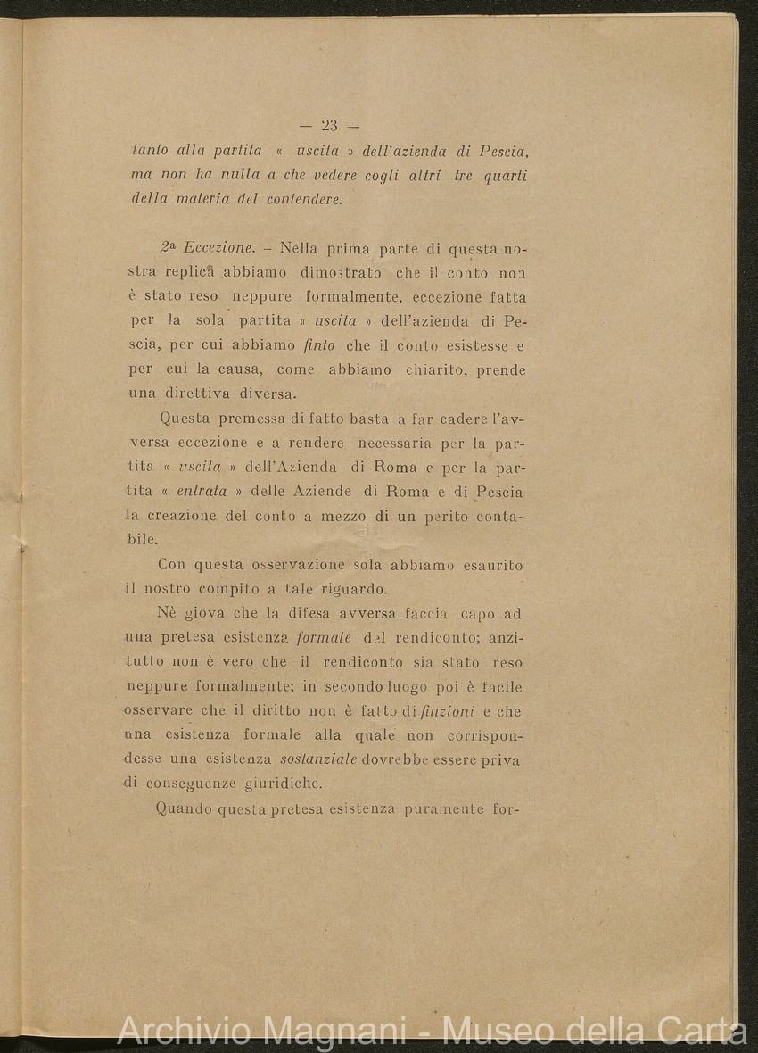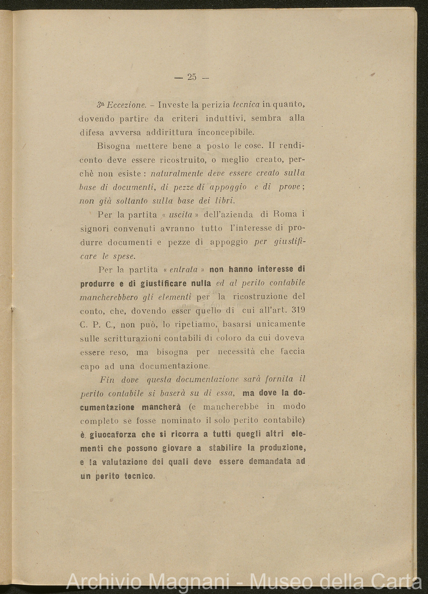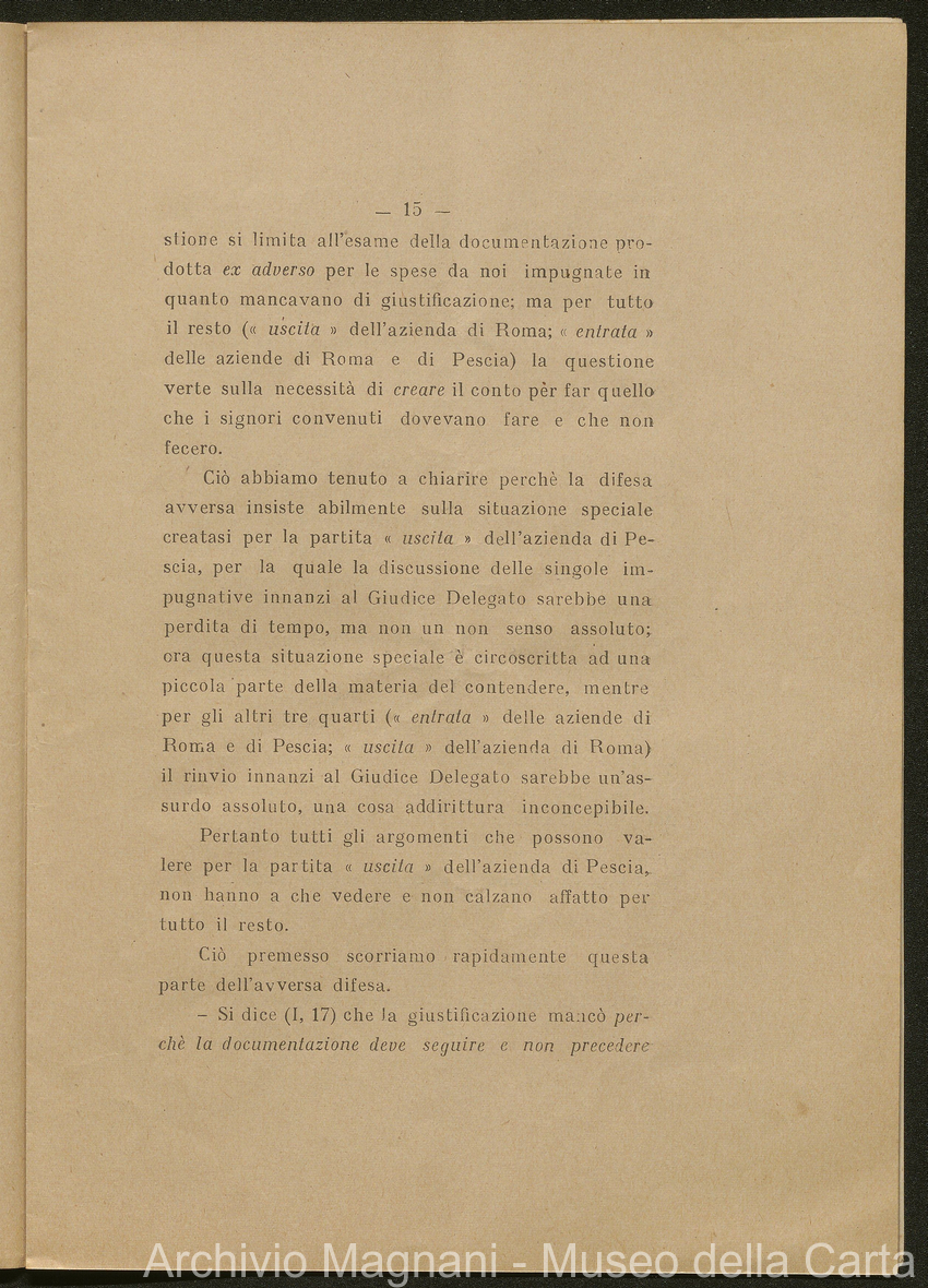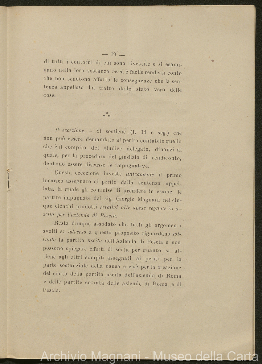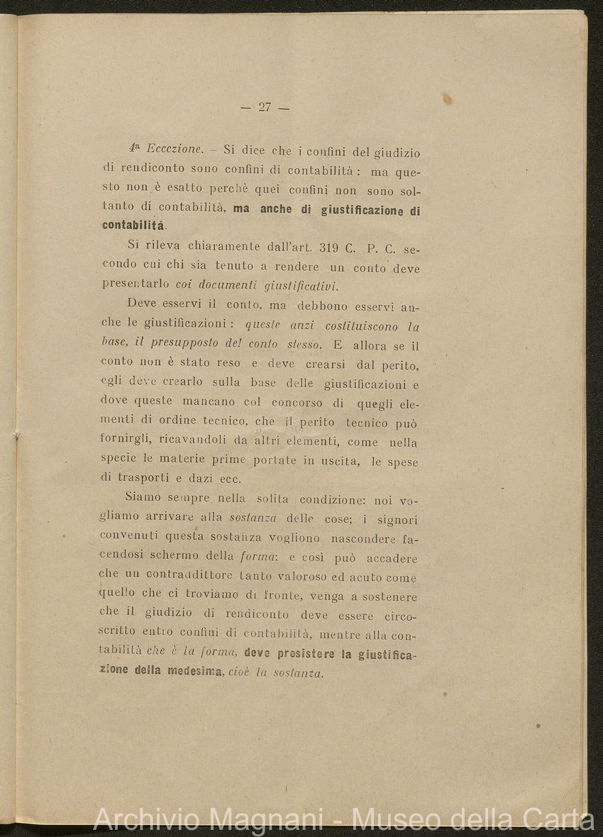 Sentenze a stampa, 1917 e s.d., pp. 2-159; "Cessioni del fallimento di Giorgio", 1913-19, pp. 160-186; "Corrispondenza con l'Avv. A. Galeotti e altri", 1922-32 e 1 s.d. (ante 1927), pp. 187-605; "Enrico Magnani. Carte diverse", 1927 e 6 s.d., pp. 606-622.