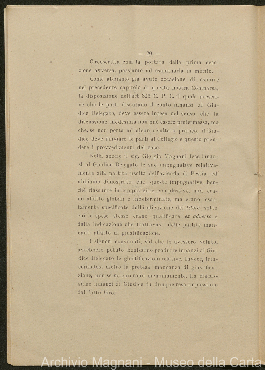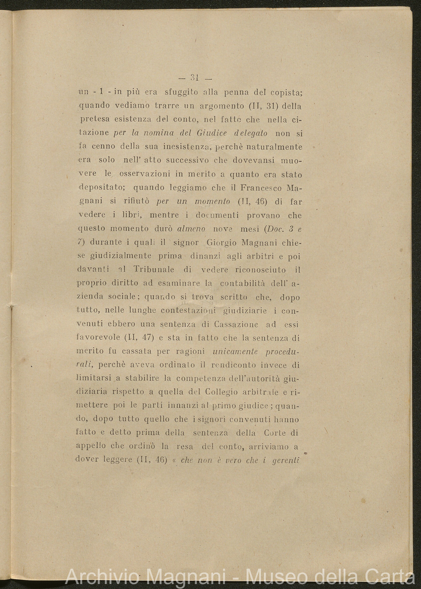 Causa Giorgio Magnani - sentenze - corrispondenza e comparse - Gregorio Magnani - Giuseppe Lumbroso - Giulio Buonamici - Amilcare Galeotti - Francesco Pacelli - Francesco Bandoni - Piero Magnani - Agostino Magnani - Leopoldo Lazzereschi