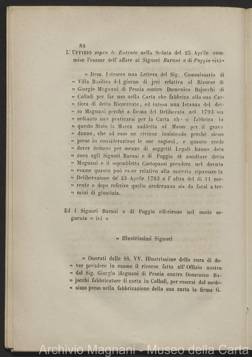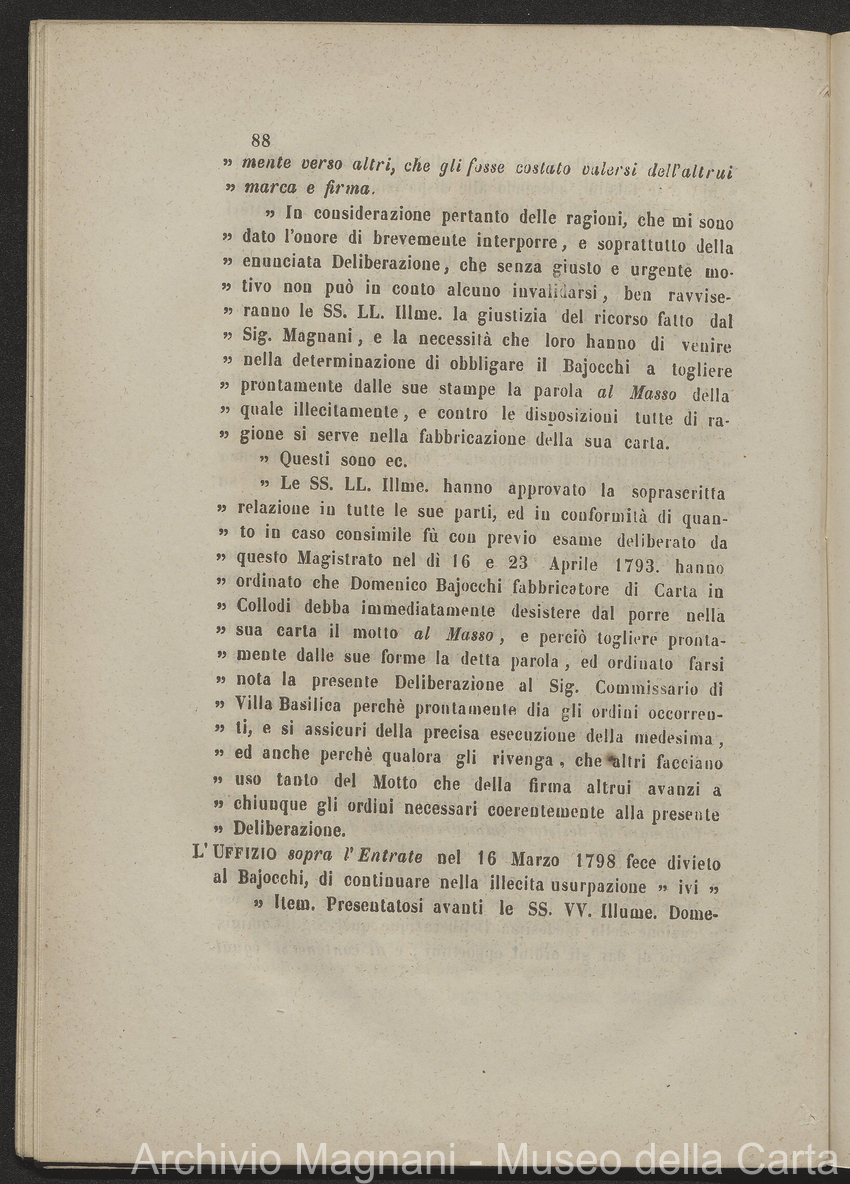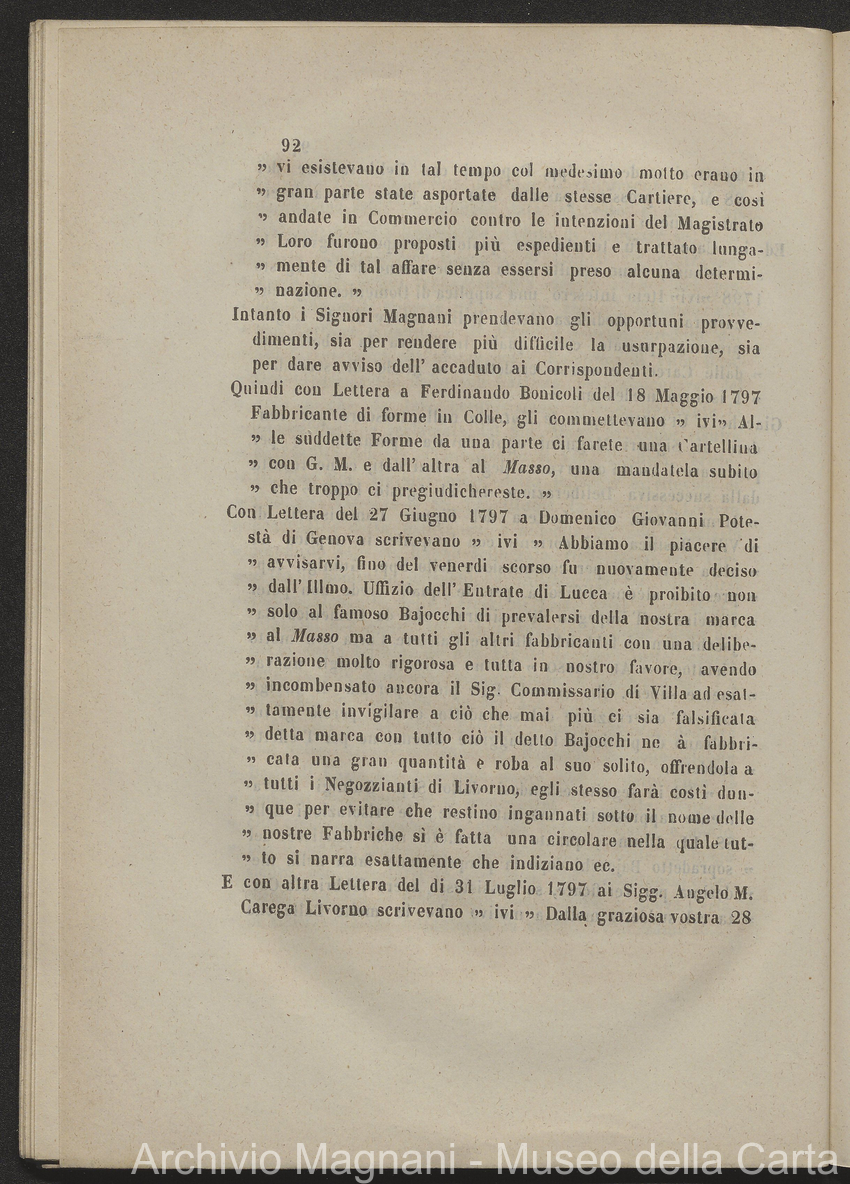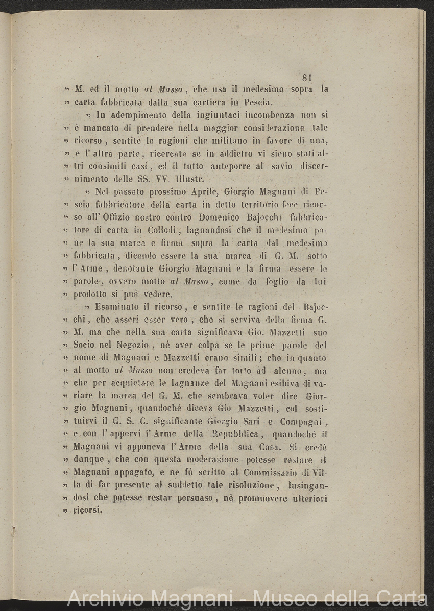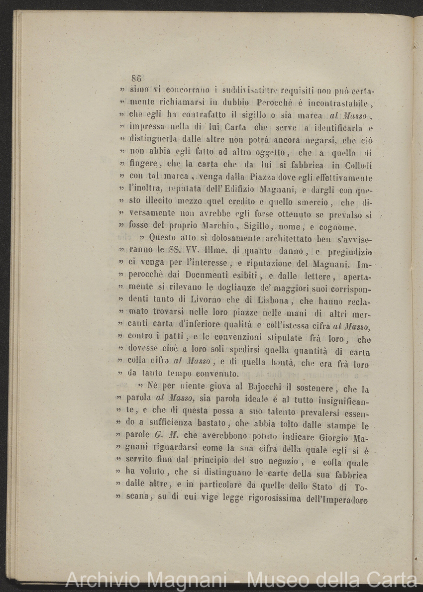 Tribunale di Prima Istanza di Lucca - causa - Giorgio Magnani - Enrico Magnani - marca commerciale - Cartiera del Masso - carta al Masso - Domenico Bajocchi - Leopoldo Galeotti - Isidoro Del Re - Giovan Battista Donati
