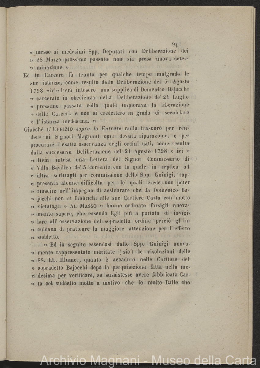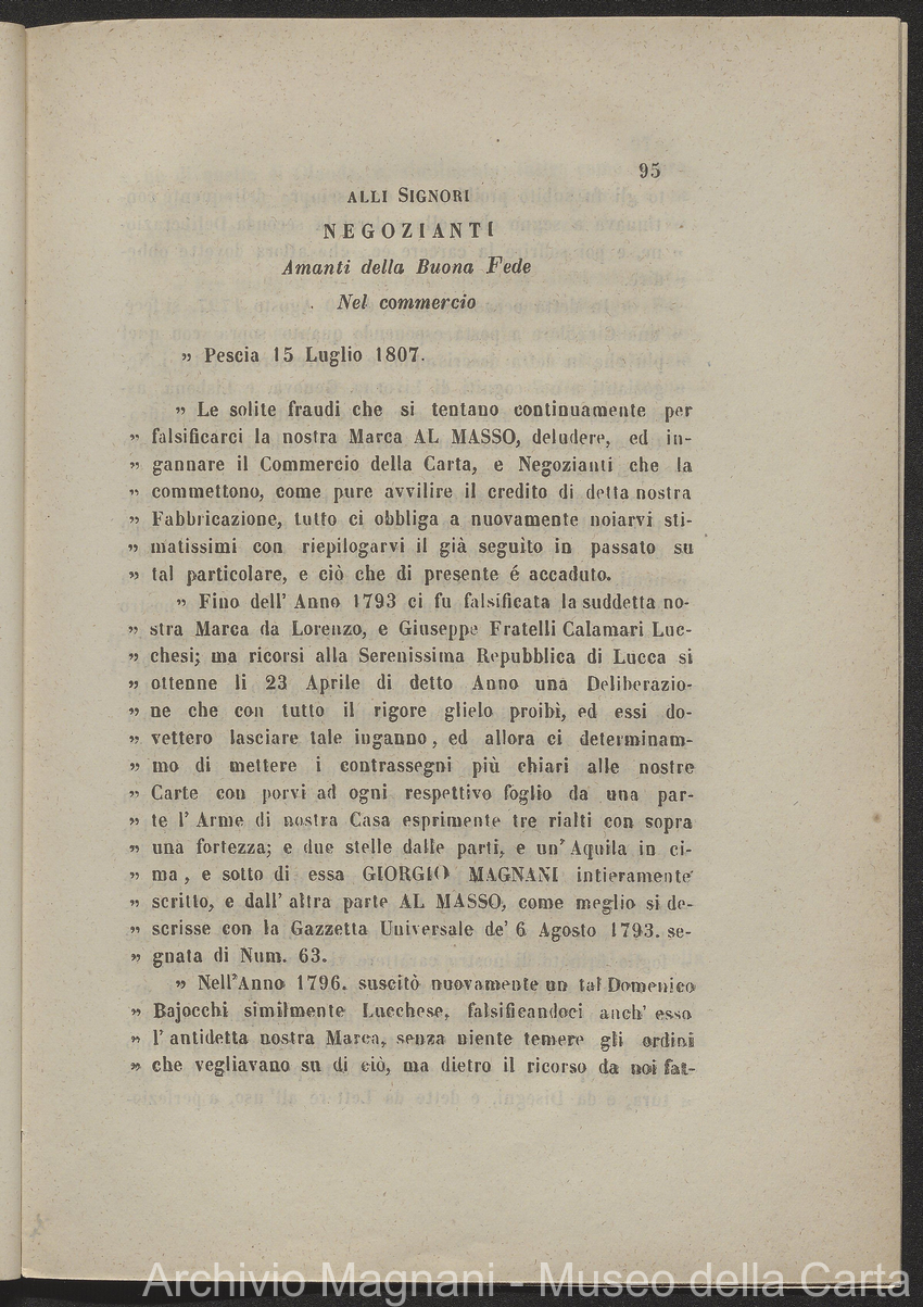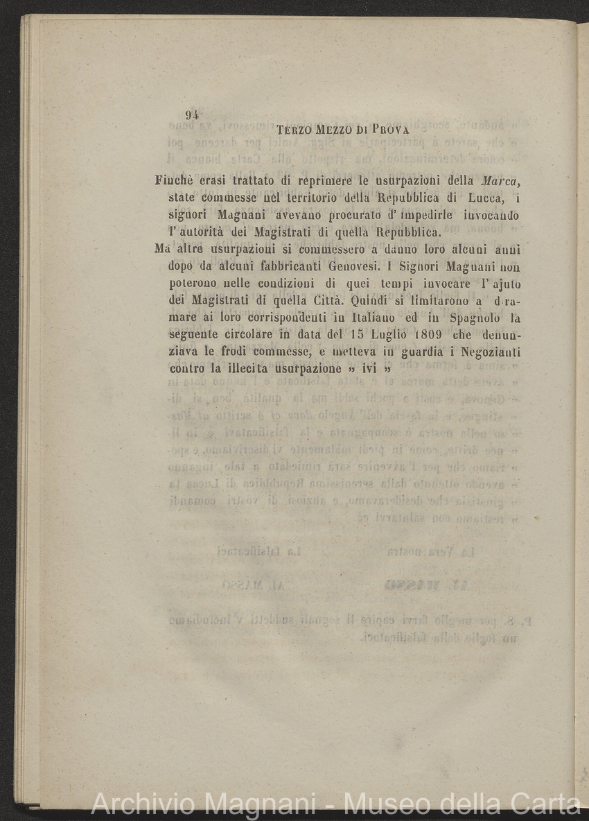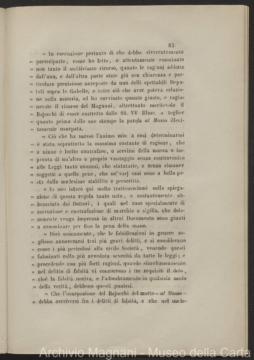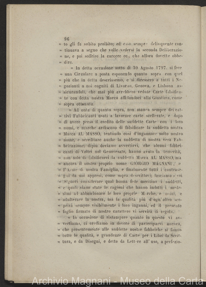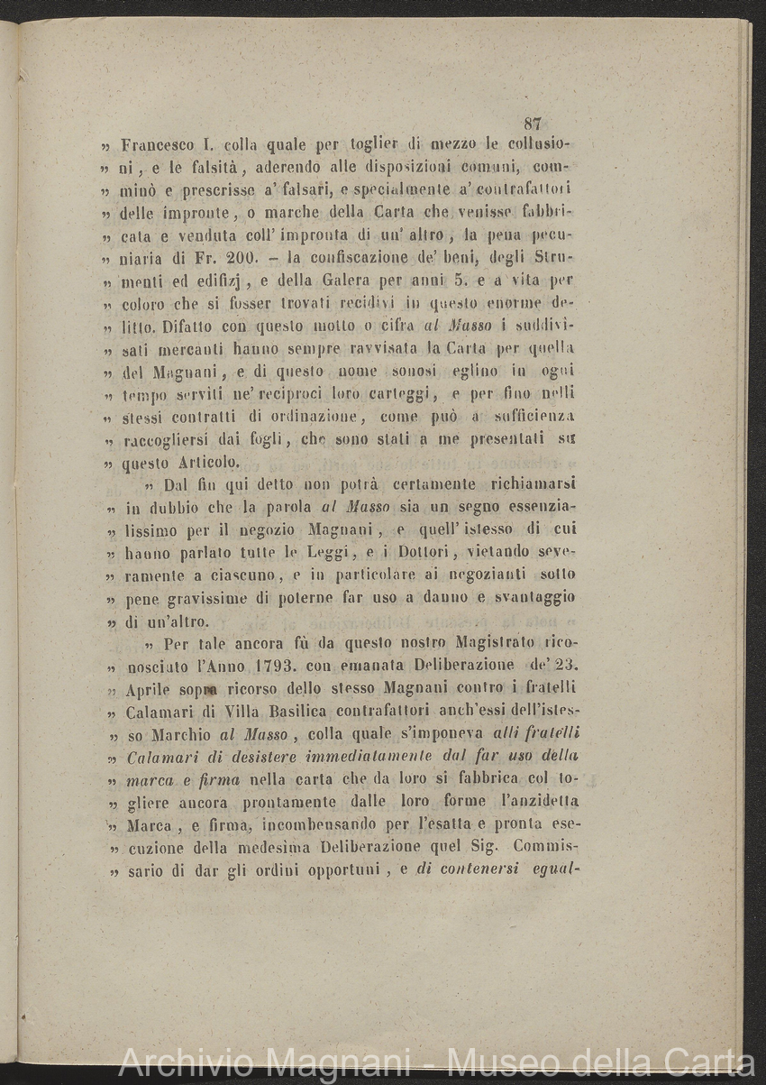 Tribunale di Prima Istanza di Lucca - causa - Giorgio Magnani - Enrico Magnani - marca commerciale - Cartiera del Masso - carta al Masso - Domenico Bajocchi - Leopoldo Galeotti - Isidoro Del Re - Giovan Battista Donati