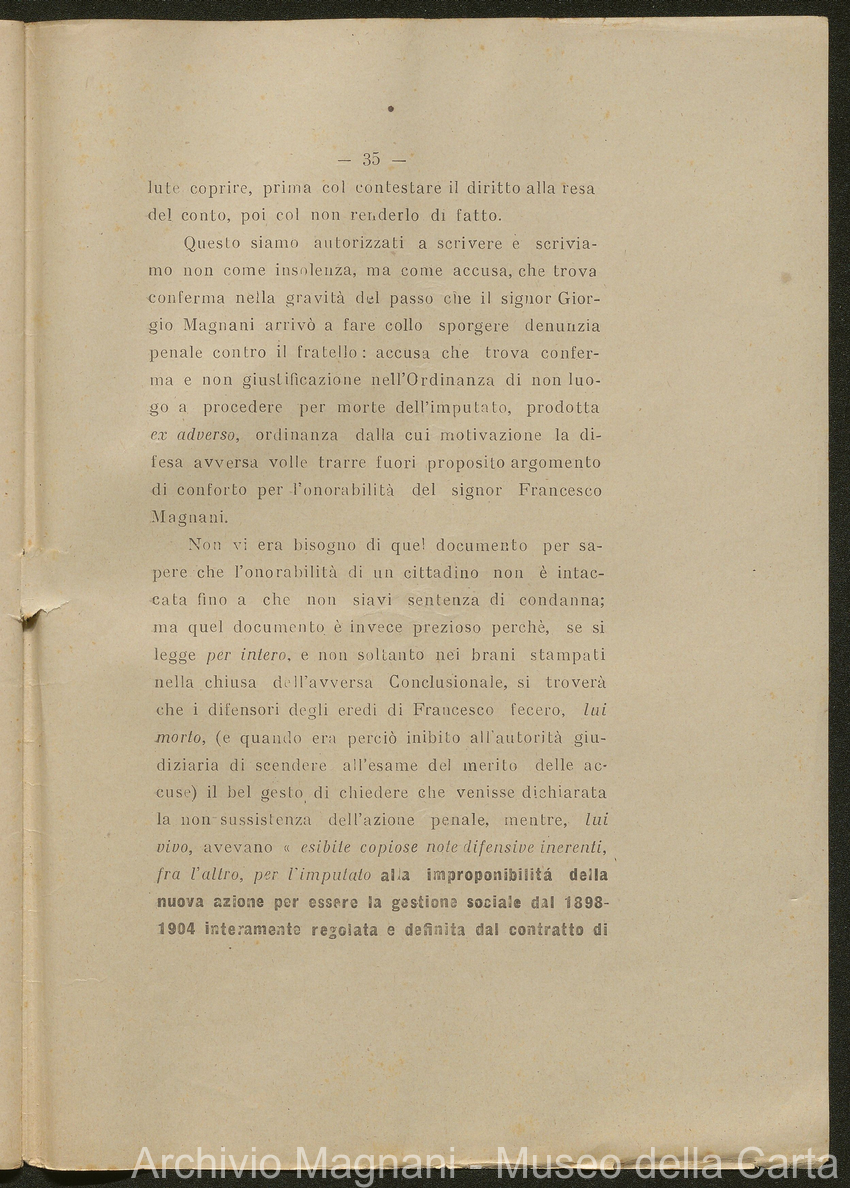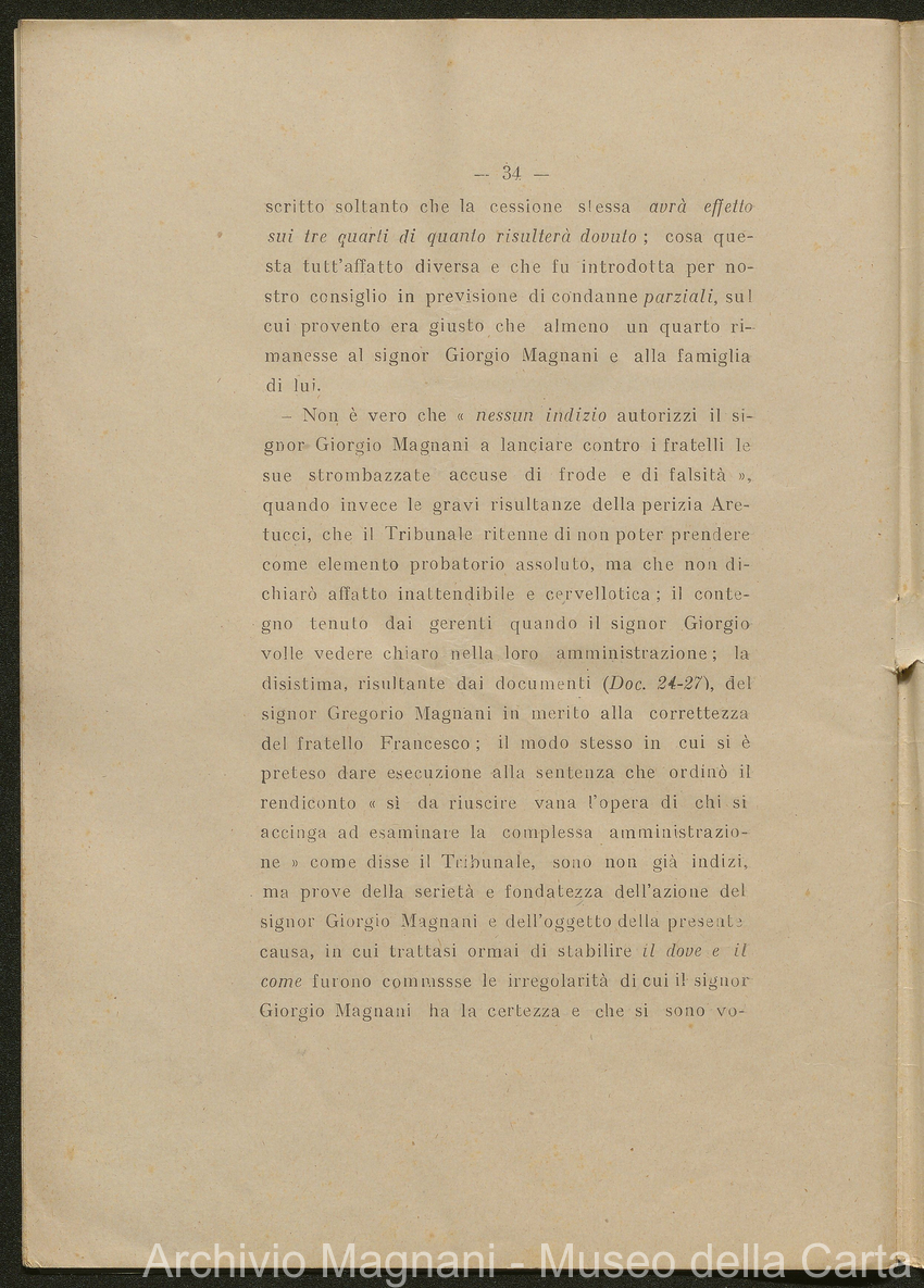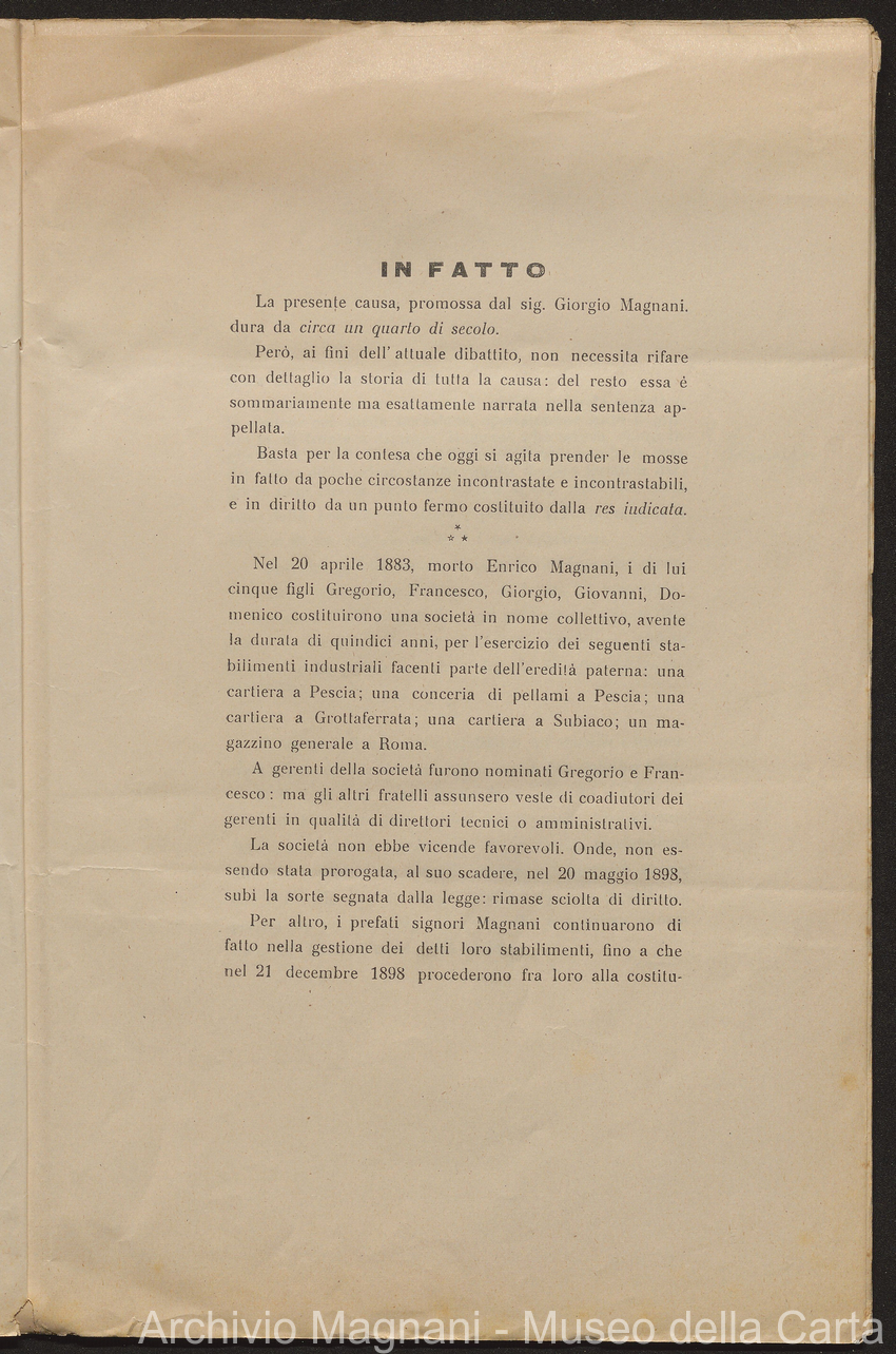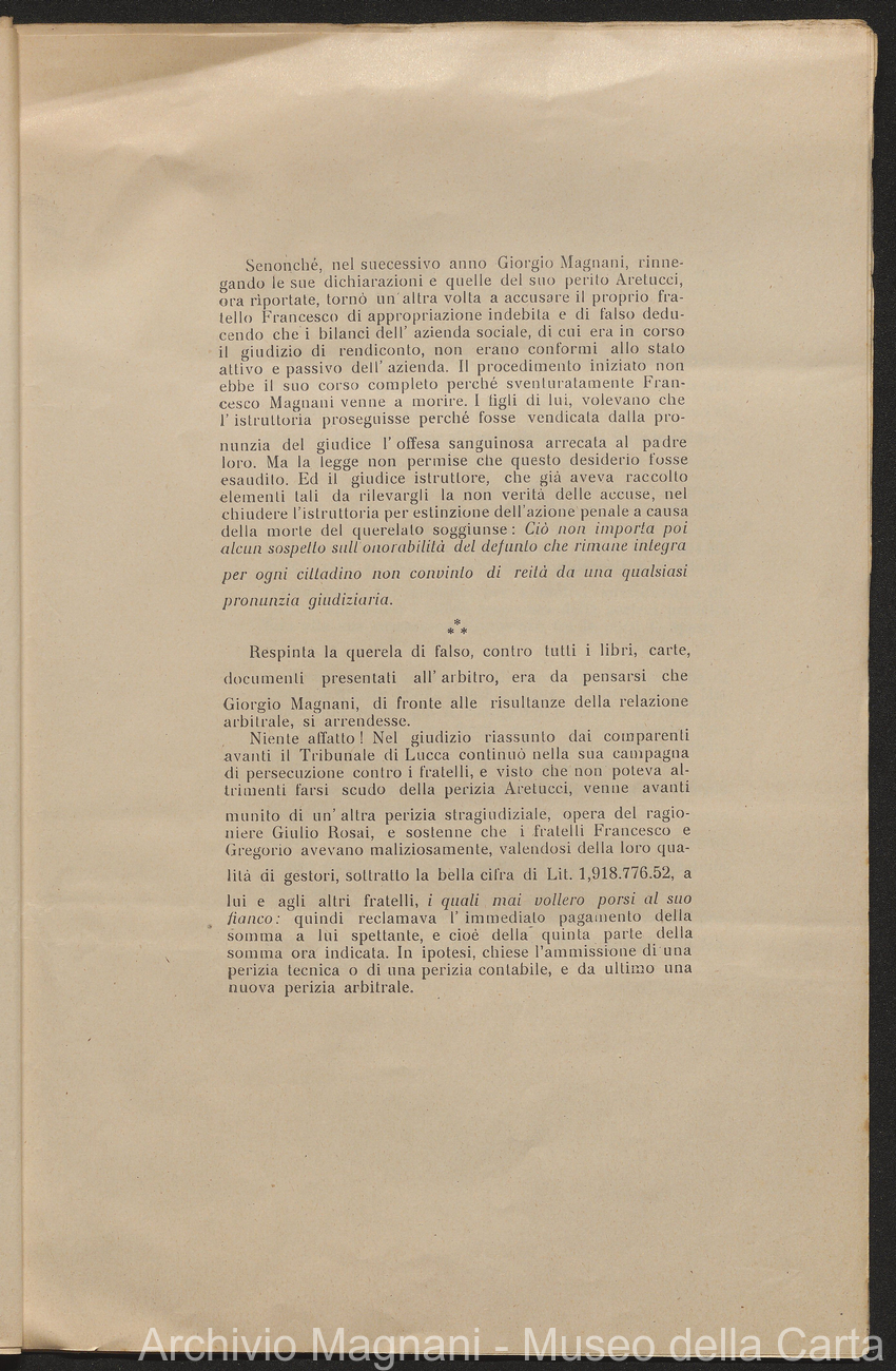 Causa Giorgio Magnani - sentenze - corrispondenza e comparse - Gregorio Magnani - Giuseppe Lumbroso - Giulio Buonamici - Amilcare Galeotti - Francesco Pacelli - Francesco Bandoni - Piero Magnani - Agostino Magnani - Leopoldo Lazzereschi