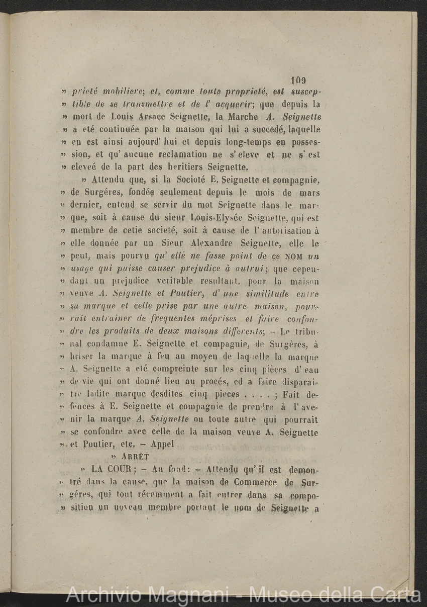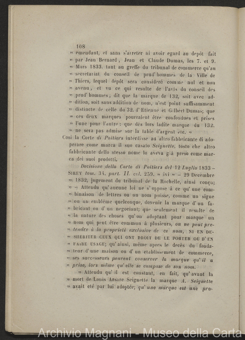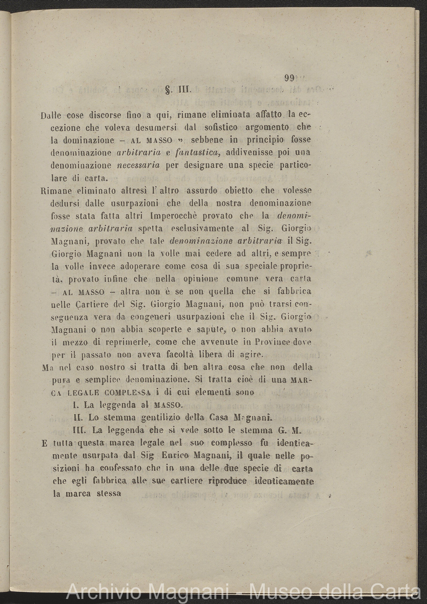 Tribunale di Prima Istanza di Lucca - causa - Giorgio Magnani - Enrico Magnani - marca commerciale - Cartiera del Masso - carta al Masso - Domenico Bajocchi - Leopoldo Galeotti - Isidoro Del Re - Giovan Battista Donati