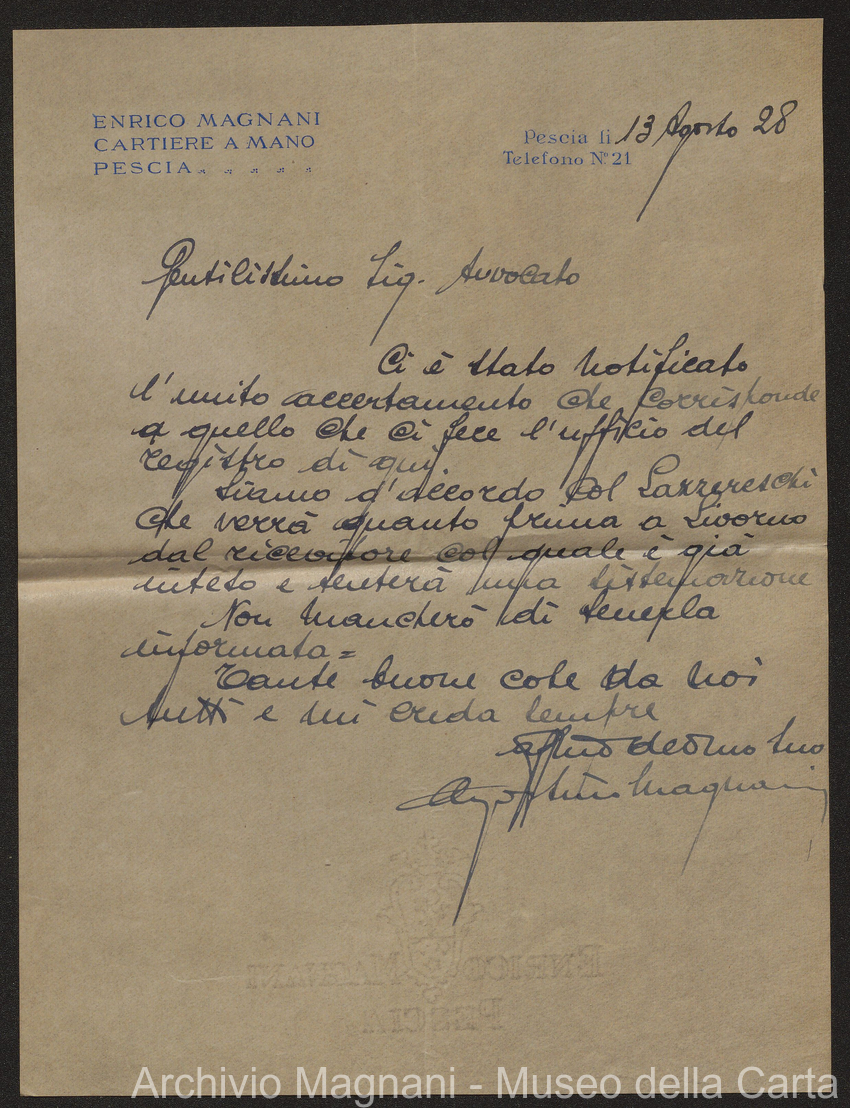 Causa Giorgio Magnani - sentenze - corrispondenza e comparse - Gregorio Magnani - Giuseppe Lumbroso - Giulio Buonamici - Amilcare Galeotti - Francesco Pacelli - Francesco Bandoni - Piero Magnani - Agostino Magnani - Leopoldo Lazzereschi