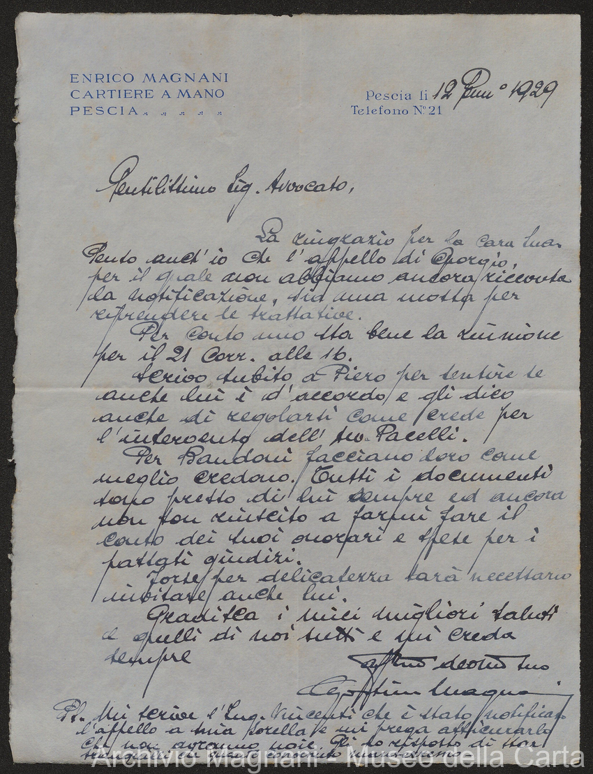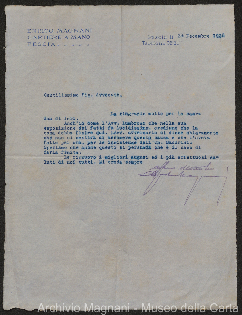 Causa Giorgio Magnani - sentenze - corrispondenza e comparse - Gregorio Magnani - Giuseppe Lumbroso - Giulio Buonamici - Amilcare Galeotti - Francesco Pacelli - Francesco Bandoni - Piero Magnani - Agostino Magnani - Leopoldo Lazzereschi