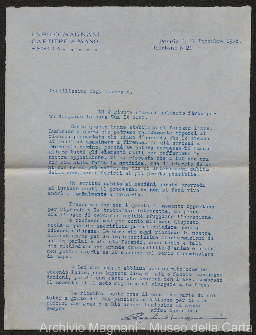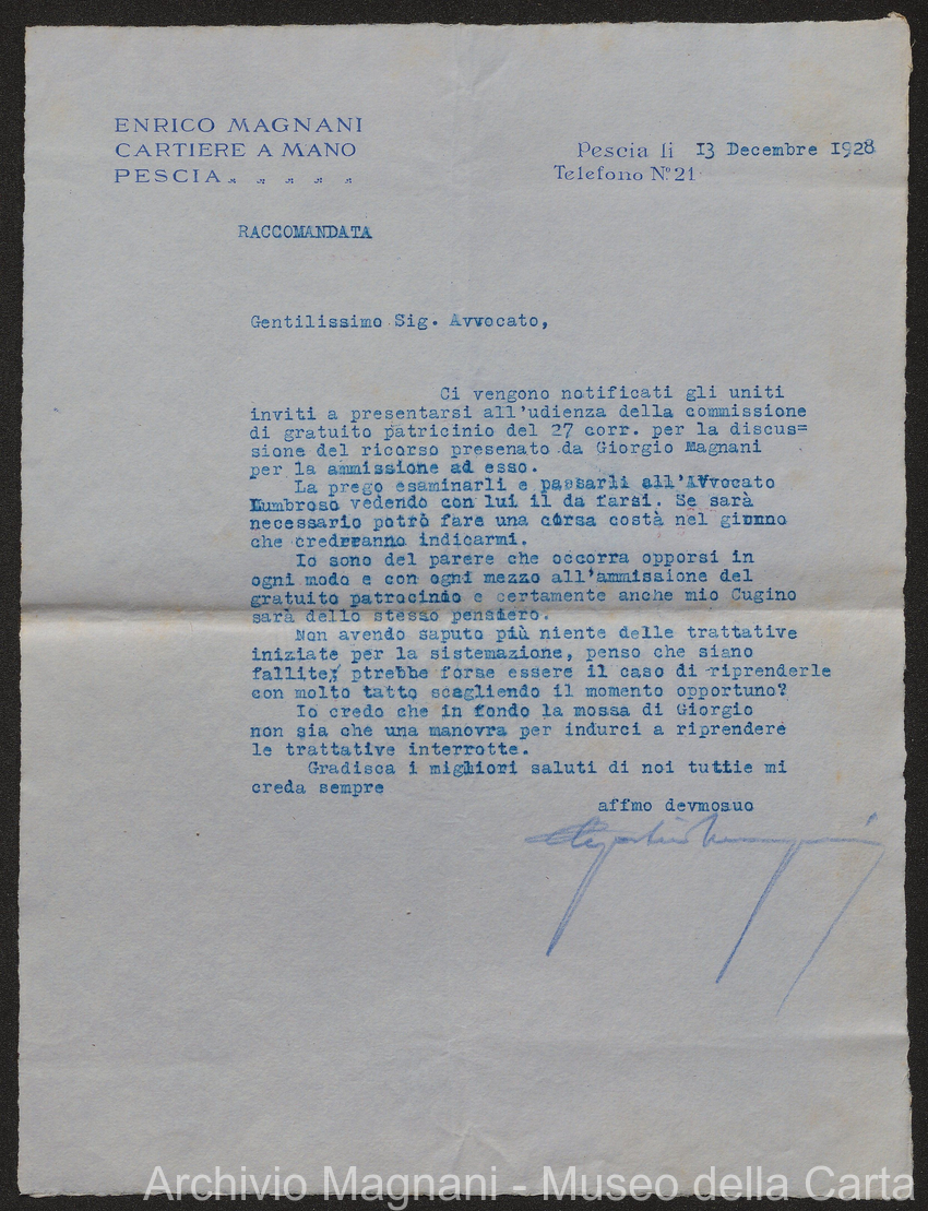 Causa Giorgio Magnani - sentenze - corrispondenza e comparse - Gregorio Magnani - Giuseppe Lumbroso - Giulio Buonamici - Amilcare Galeotti - Francesco Pacelli - Francesco Bandoni - Piero Magnani - Agostino Magnani - Leopoldo Lazzereschi