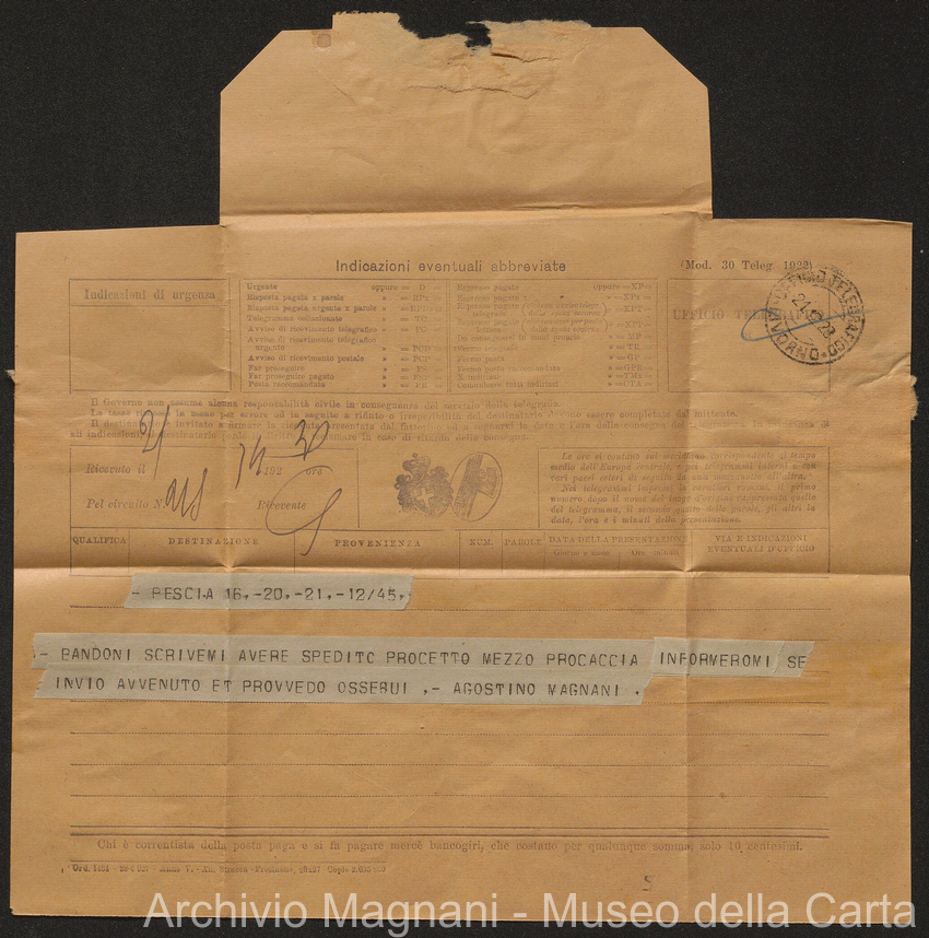 Sentenze a stampa, 1917 e s.d., pp. 2-159; "Cessioni del fallimento di Giorgio", 1913-19, pp. 160-186; "Corrispondenza con l'Avv. A. Galeotti e altri", 1922-32 e 1 s.d. (ante 1927), pp. 187-605; "Enrico Magnani. Carte diverse", 1927 e 6 s.d., pp. 606-622.