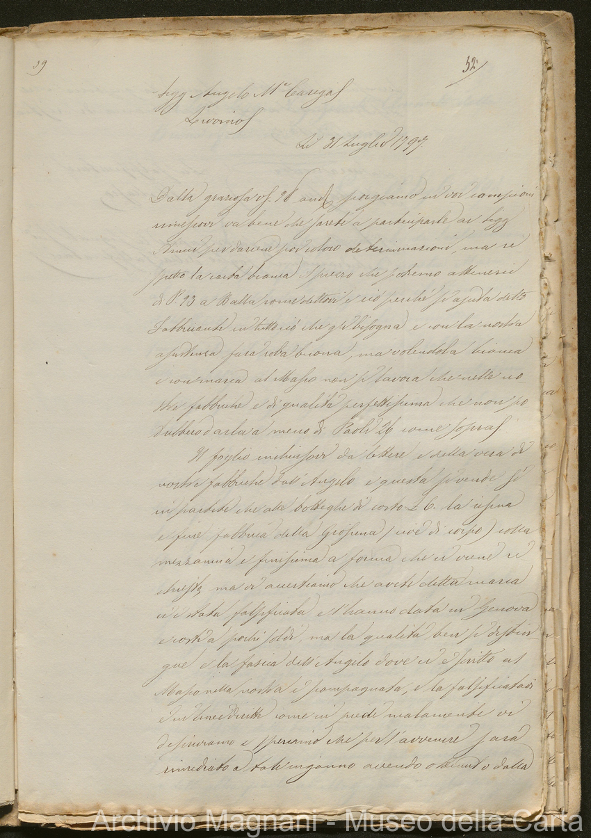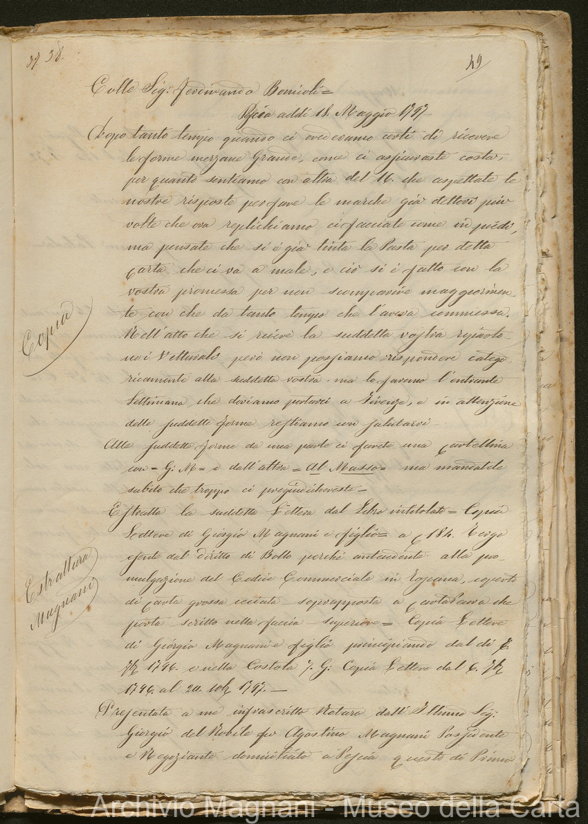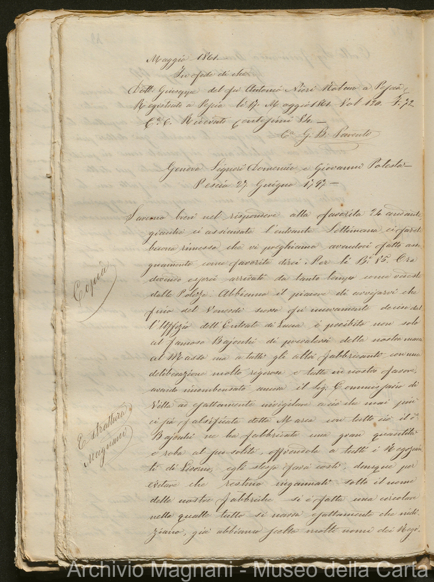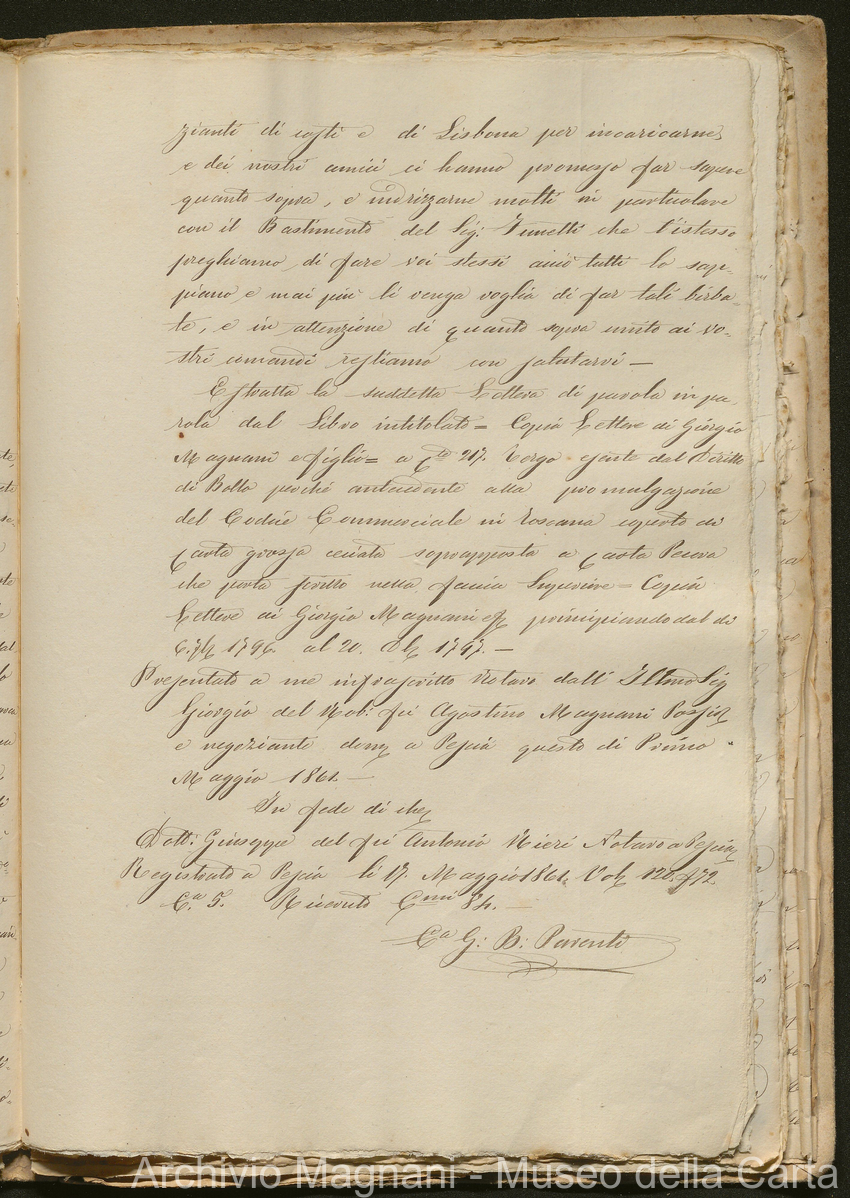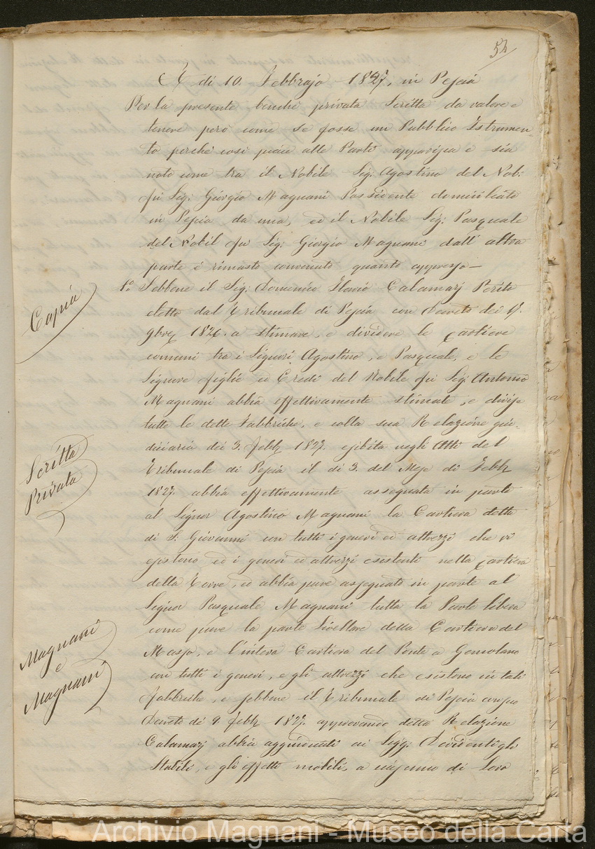Tribunale di Prima Istanza di Lucca - Enrico Magnani - Giorgio Magnani - Domenico Bajocchi - Causa Giorgio Magnani di Agostino - carta Al Masso - Agostino Magnani