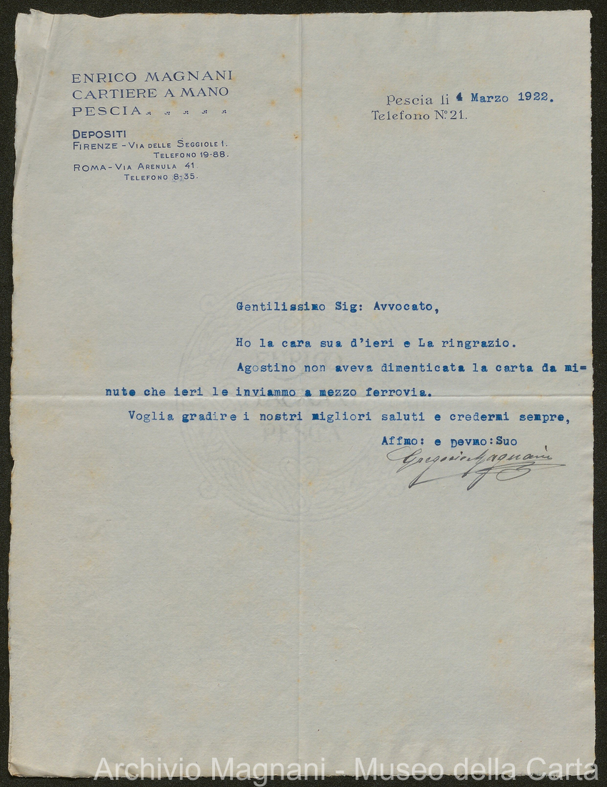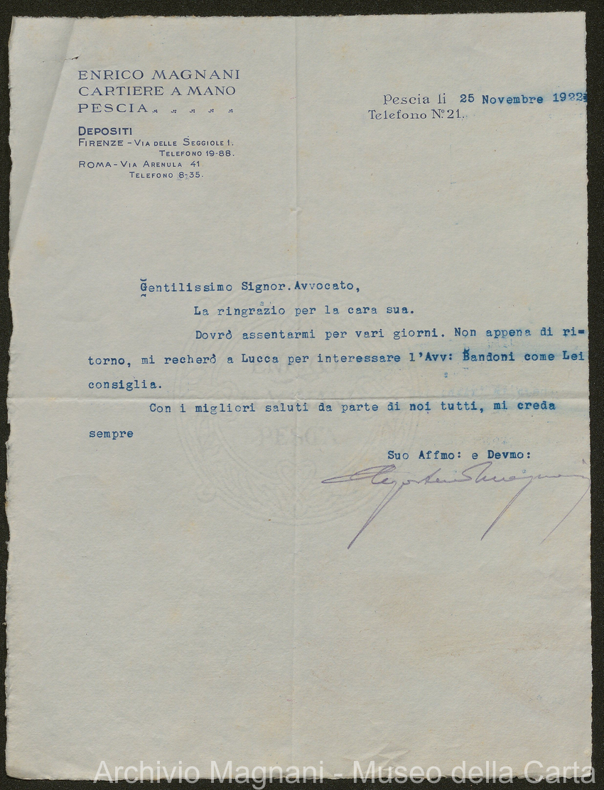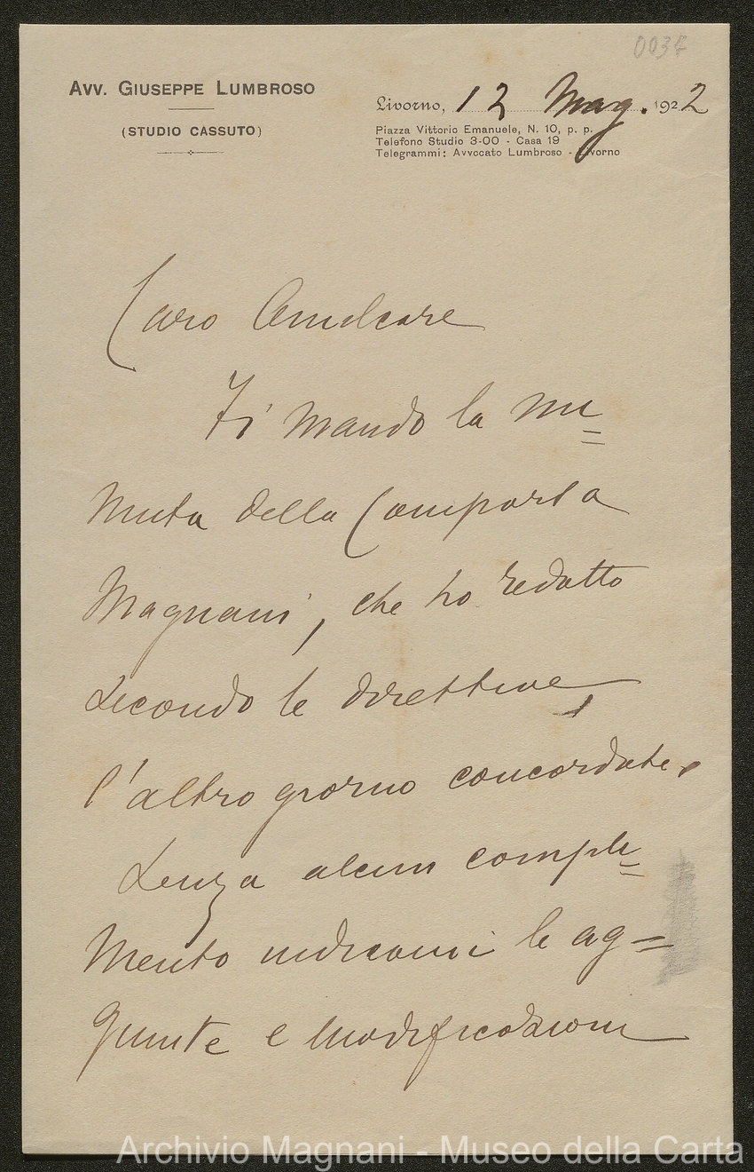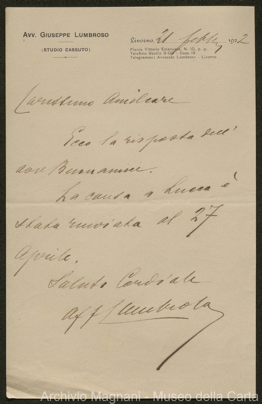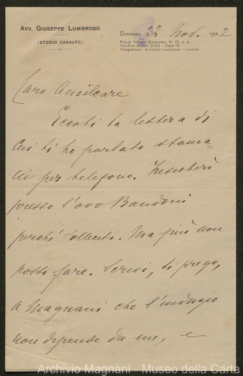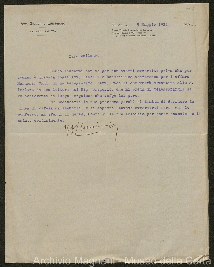 Causa Giorgio Magnani - sentenze - corrispondenza e comparse - Gregorio Magnani - Giuseppe Lumbroso - Giulio Buonamici - Amilcare Galeotti - Francesco Pacelli - Francesco Bandoni - Piero Magnani - Agostino Magnani - Leopoldo Lazzereschi