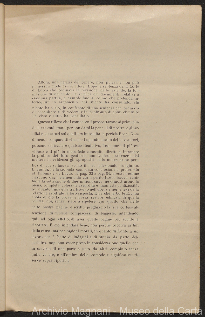 Sentenze a stampa, 1917 e s.d., pp. 2-159; "Cessioni del fallimento di Giorgio", 1913-19, pp. 160-186; "Corrispondenza con l'Avv. A. Galeotti e altri", 1922-32 e 1 s.d. (ante 1927), pp. 187-605; "Enrico Magnani. Carte diverse", 1927 e 6 s.d., pp. 606-622.