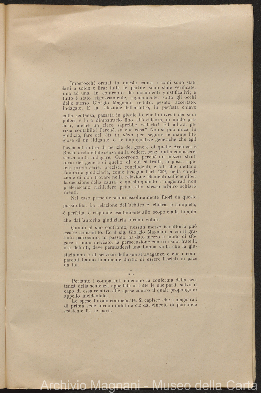 Causa Giorgio Magnani - sentenze - corrispondenza e comparse - Gregorio Magnani - Giuseppe Lumbroso - Giulio Buonamici - Amilcare Galeotti - Francesco Pacelli - Francesco Bandoni - Piero Magnani - Agostino Magnani - Leopoldo Lazzereschi