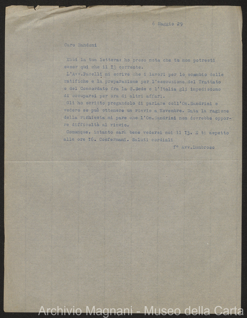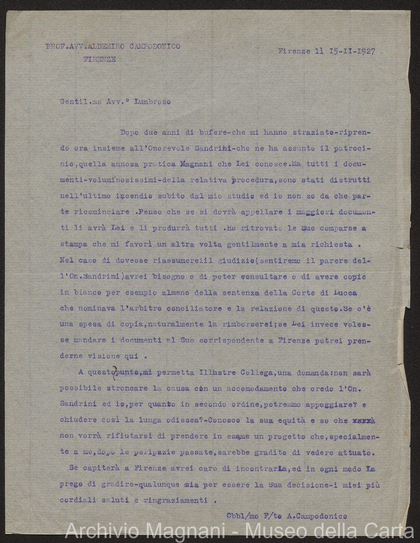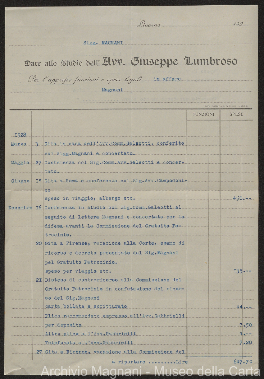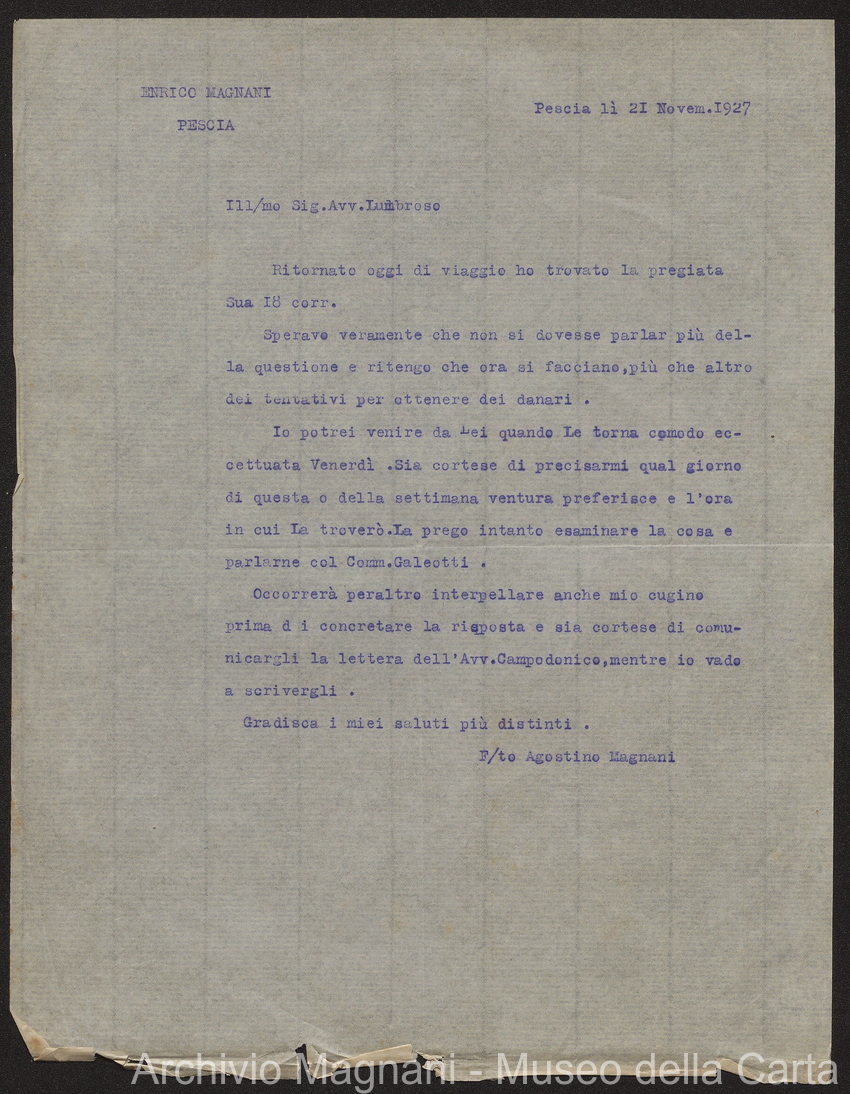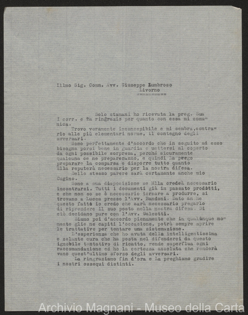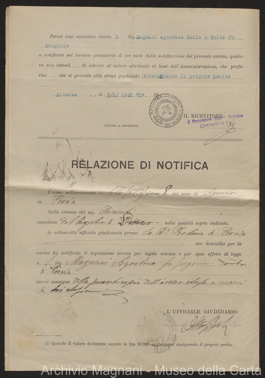 Causa Giorgio Magnani - sentenze - corrispondenza e comparse - Gregorio Magnani - Giuseppe Lumbroso - Giulio Buonamici - Amilcare Galeotti - Francesco Pacelli - Francesco Bandoni - Piero Magnani - Agostino Magnani - Leopoldo Lazzereschi