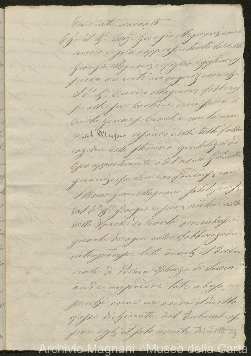 Tribunale di Prima Istanza di Lucca - Enrico Magnani - Giorgio Magnani - Domenico Bajocchi - Causa Giorgio Magnani di Agostino - carta Al Masso - Agostino Magnani