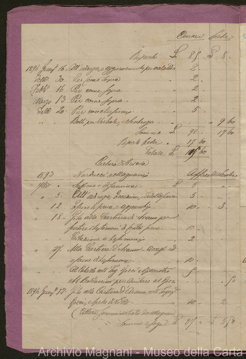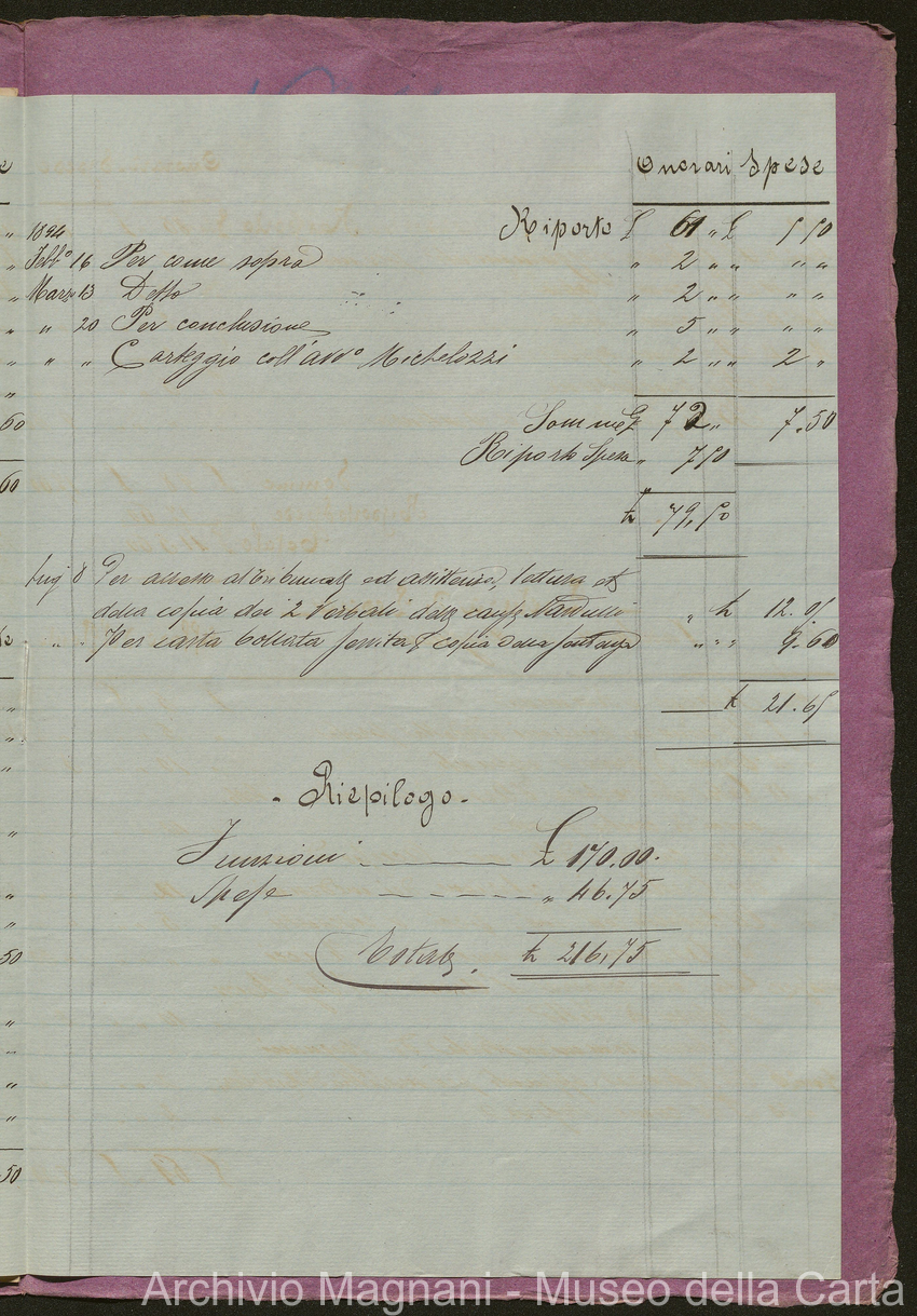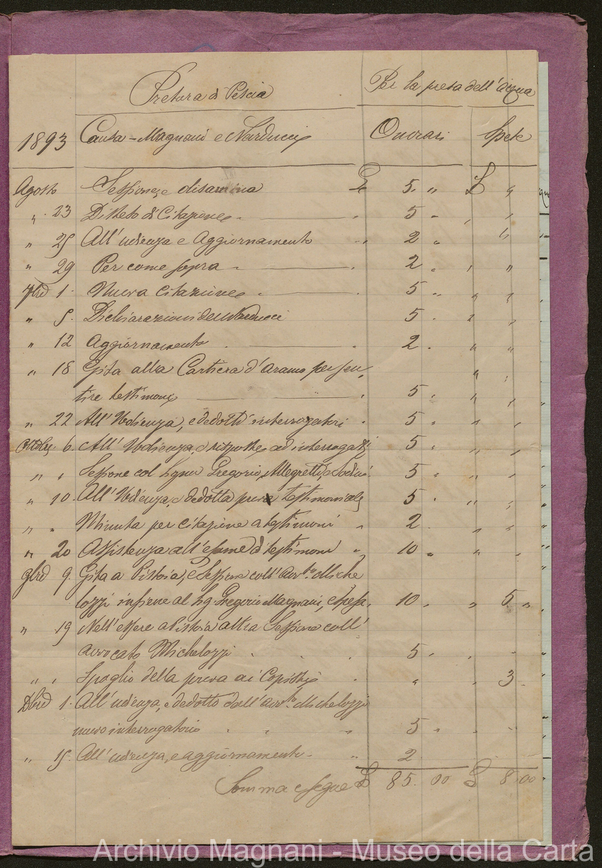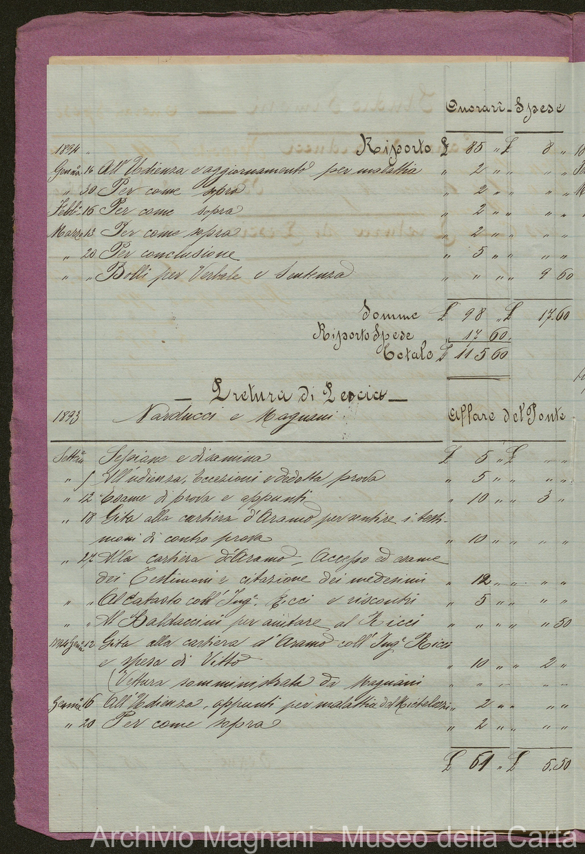 Sentenze del Tribunale di Pescia sulla causa del ponte di legno (pp. 2-46) e per la serra della Cartiera S. Frediano (pp. 47-71); conto per cause degli studi Nieri (pp. 72-76), Simoni (pp. 77-85) e Michelozzi (pp. 86-90)