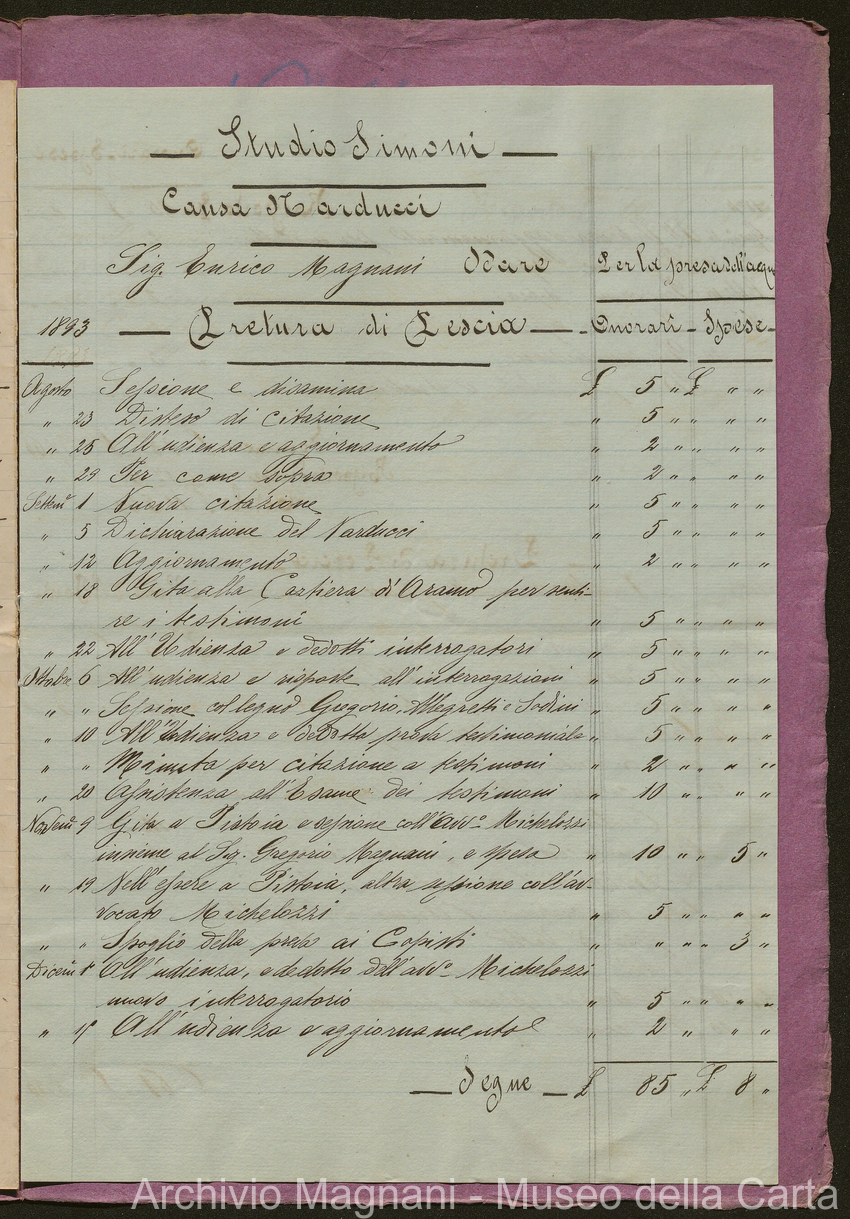 Causa Narducci (Aramo) - Giuseppe Narducci - Gregorio Magnani - Cartiera S. Frediano - Giuseppe Nieri - Pietro Simoni - Ugo Michelozzi