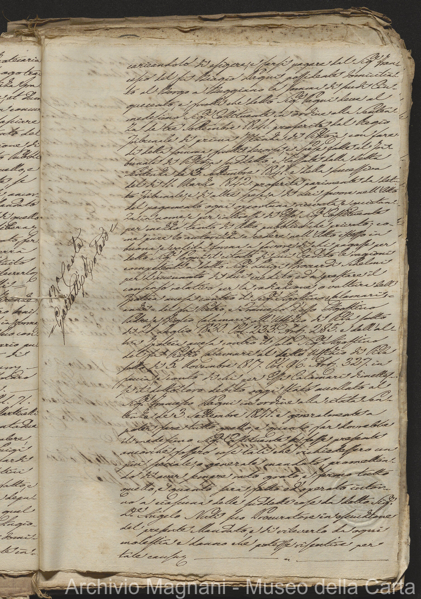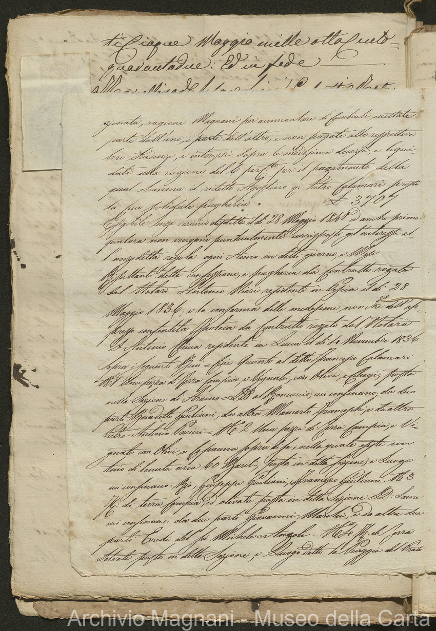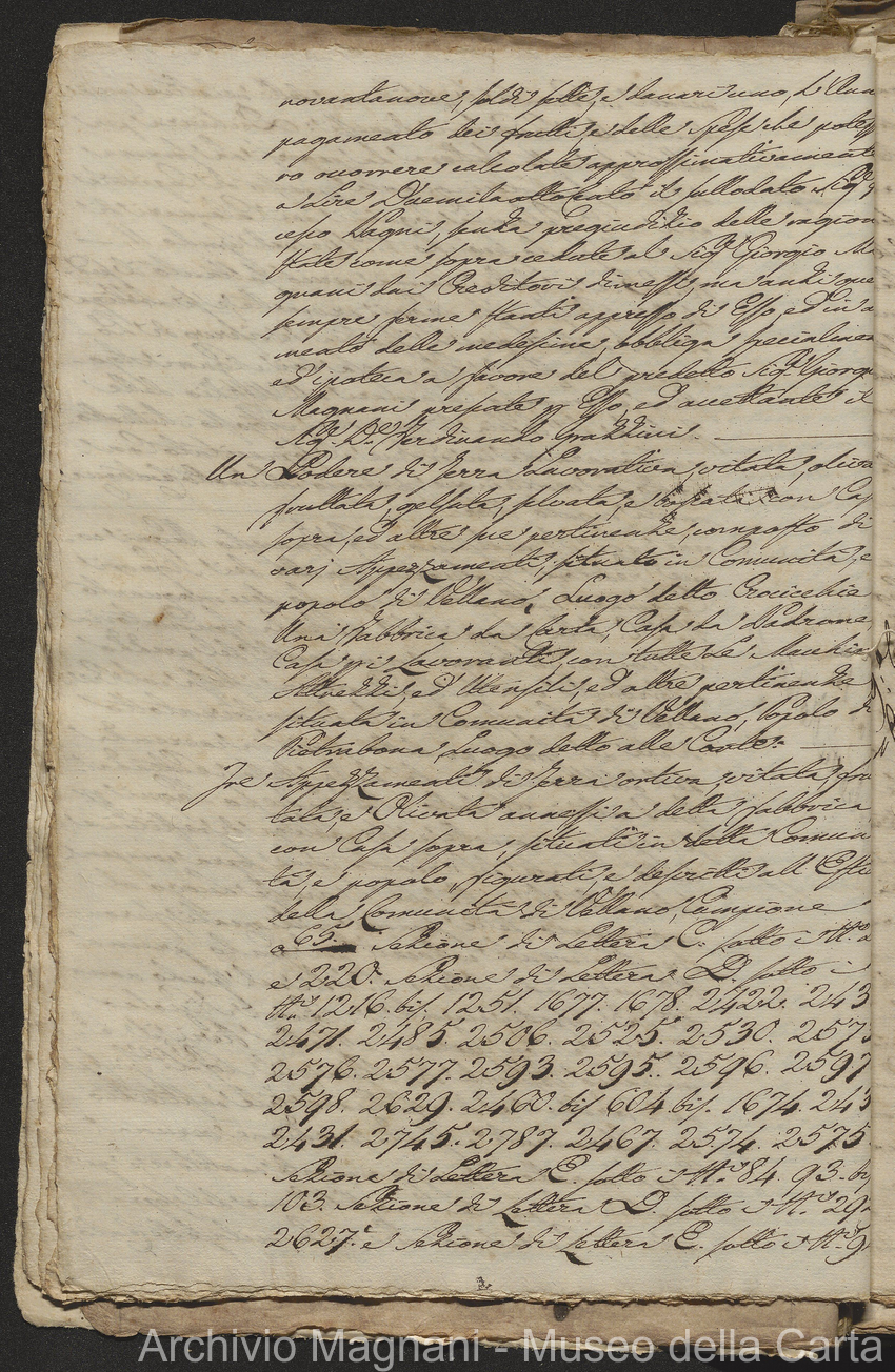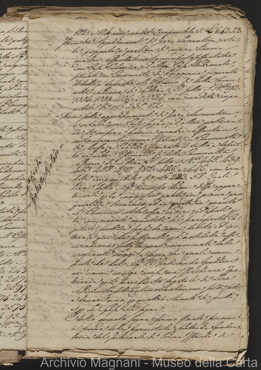 Filza di contr. di prestito, note di credito ipotecario, conserv. ipoteche di Lucca e di Pescia, 2 campioni del catasto (copie), costit. e vendita di censo, cessione di credito, dimostr. graduatoria Calamari, rinuncia; pp. 19-245, di cui XLI bianche