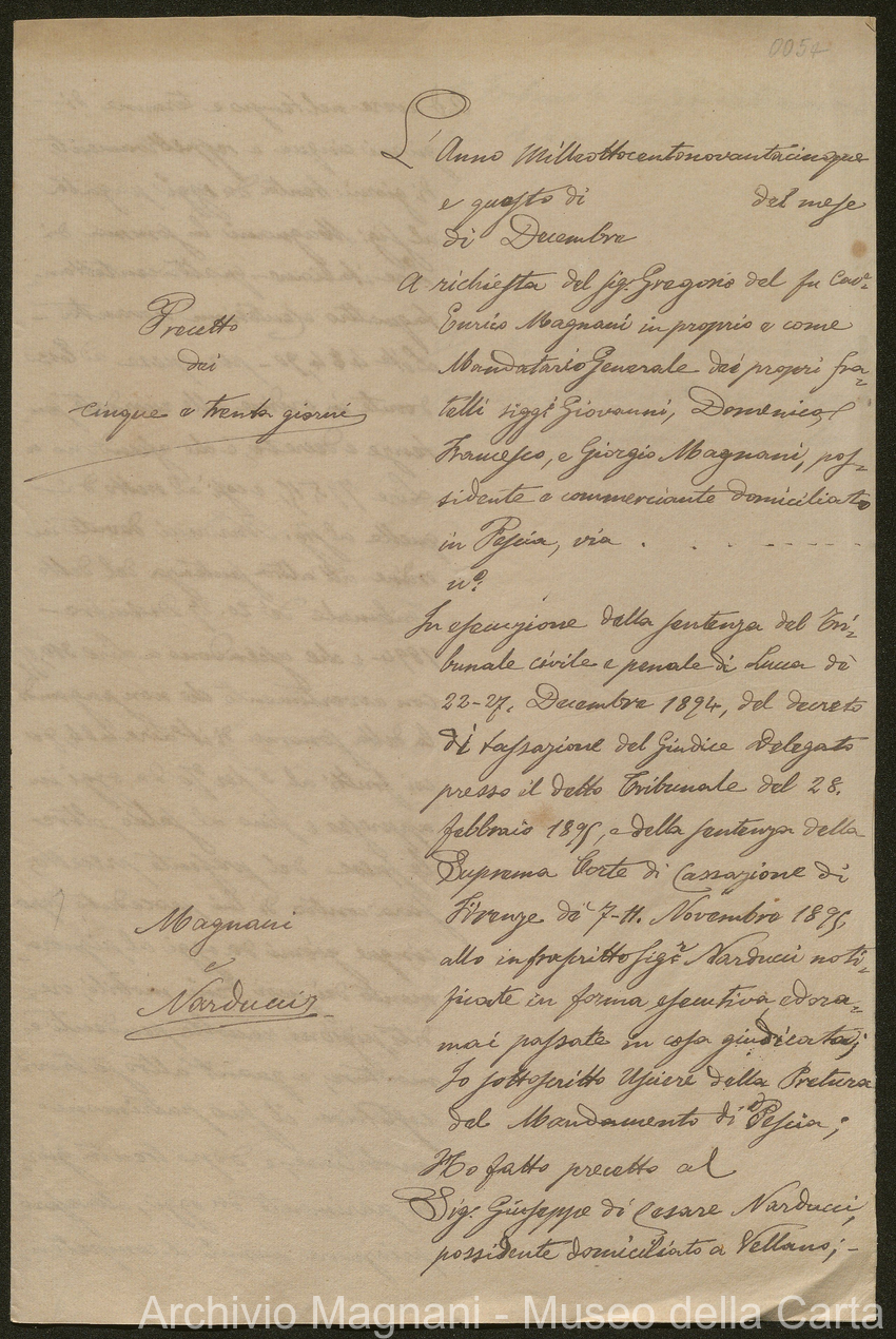 Causa Narducci (Aramo) - Giuseppe Narducci - Gregorio Magnani - Cartiera S. Frediano - Giuseppe Nieri - Pietro Simoni - Ugo Michelozzi