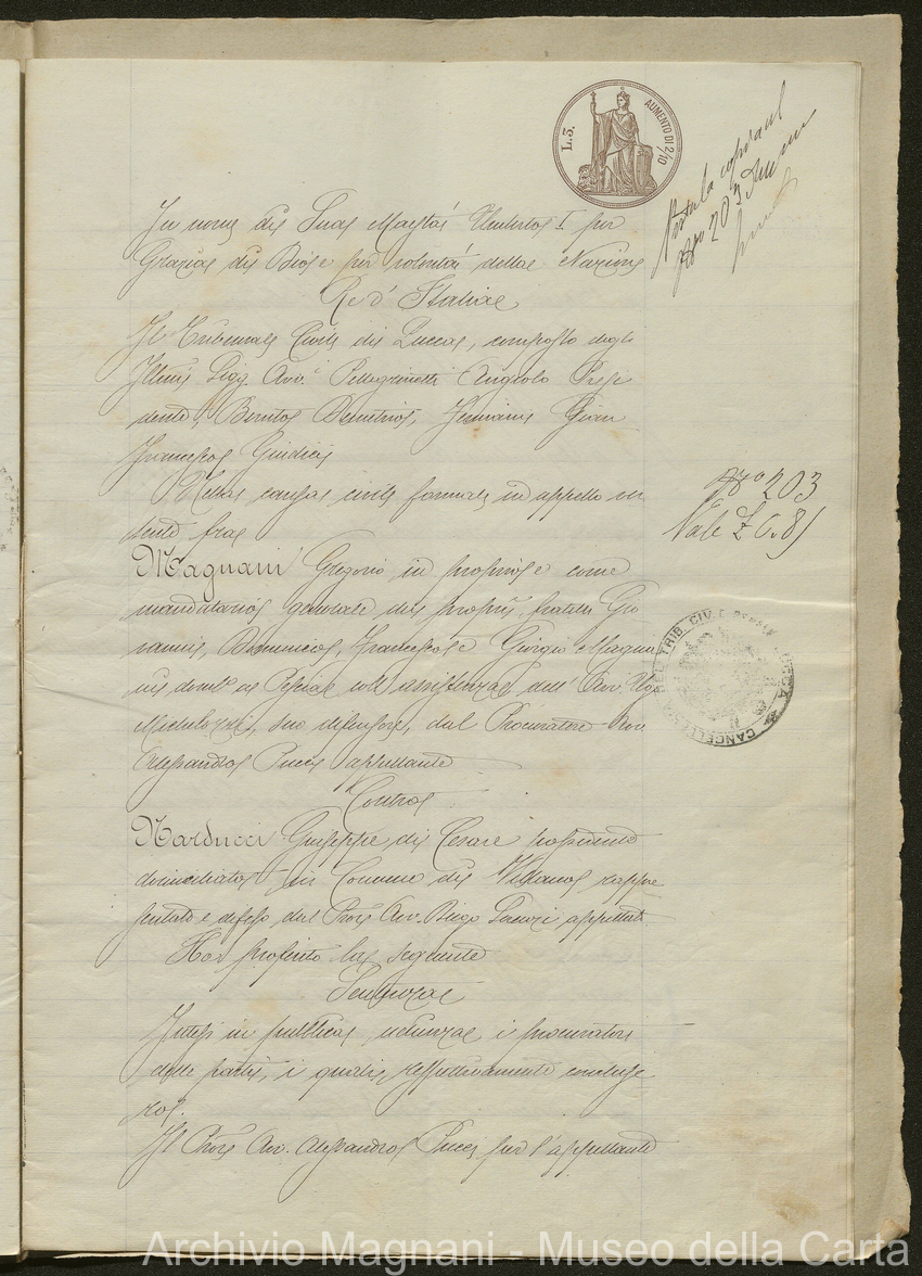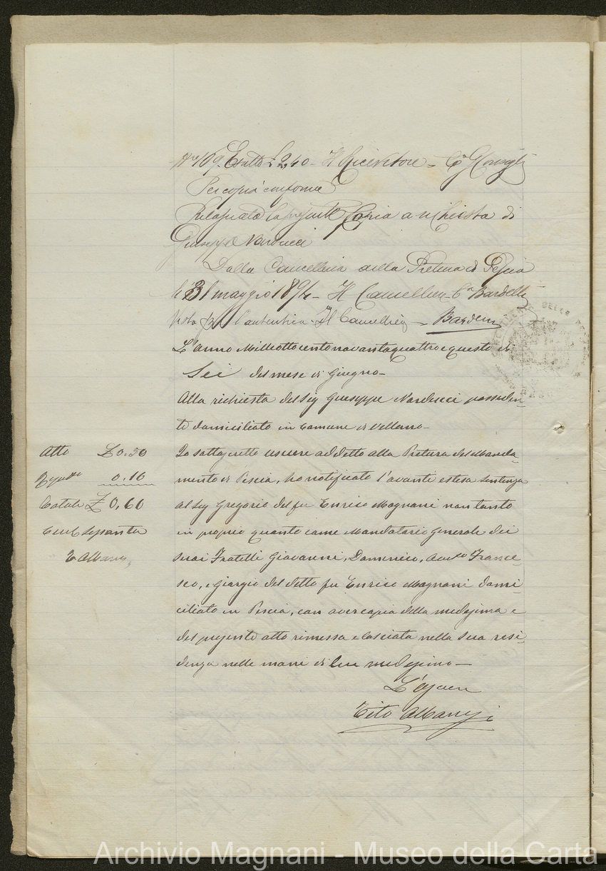 Sentenze del Tribunale di Pescia sulla causa del ponte di legno (pp. 2-46) e per la serra della Cartiera S. Frediano (pp. 47-71); conto per cause degli studi Nieri (pp. 72-76), Simoni (pp. 77-85) e Michelozzi (pp. 86-90)