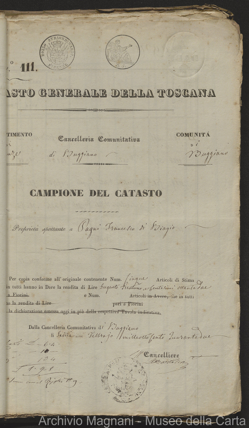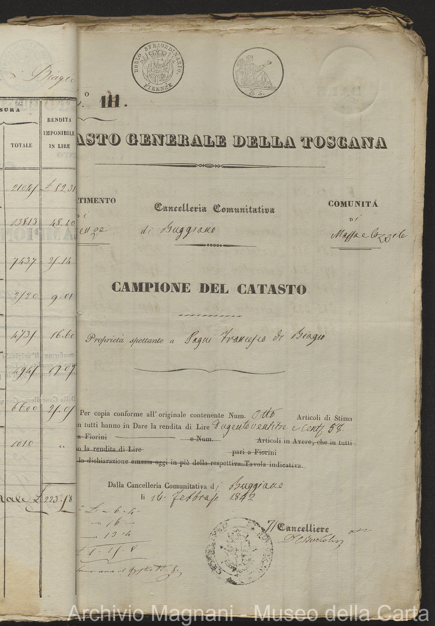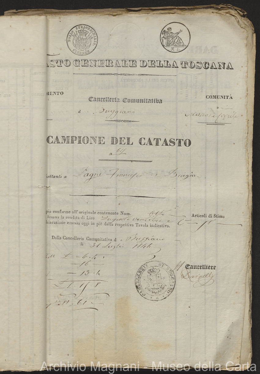 Cartiera Le Carte - Molino - B|F I/30-41 - Francesco Pagni - Giorgio Magnani - Agostino Calamari - Francesco Calamari - Marcello Flori - Vincenzo Barsanti - Capitolo dei SS. Stefano e Niccolao di Pescia - Anastasio Bellucci - Luigi Broccardi