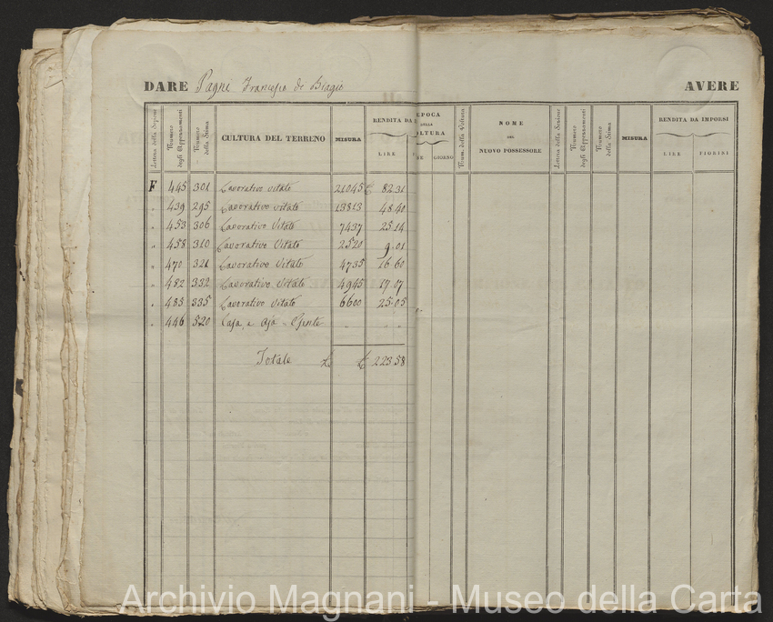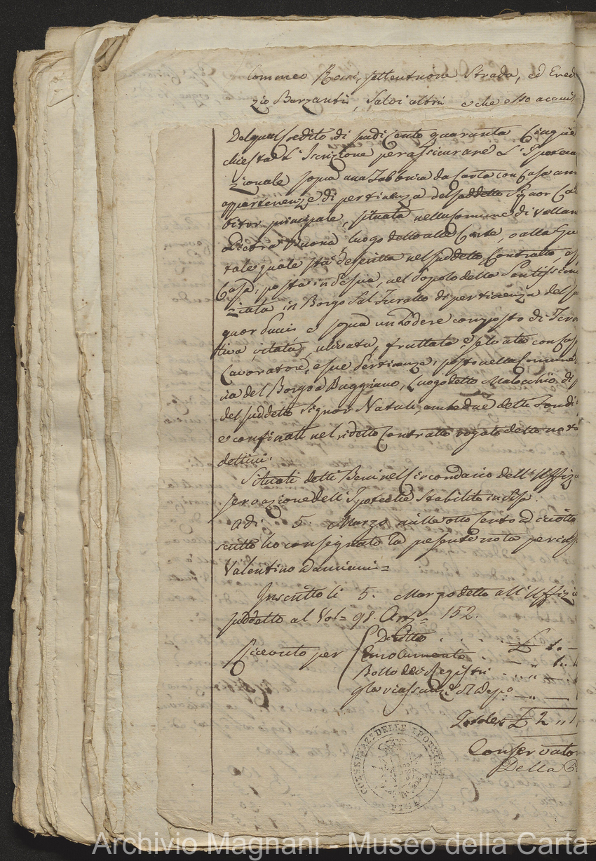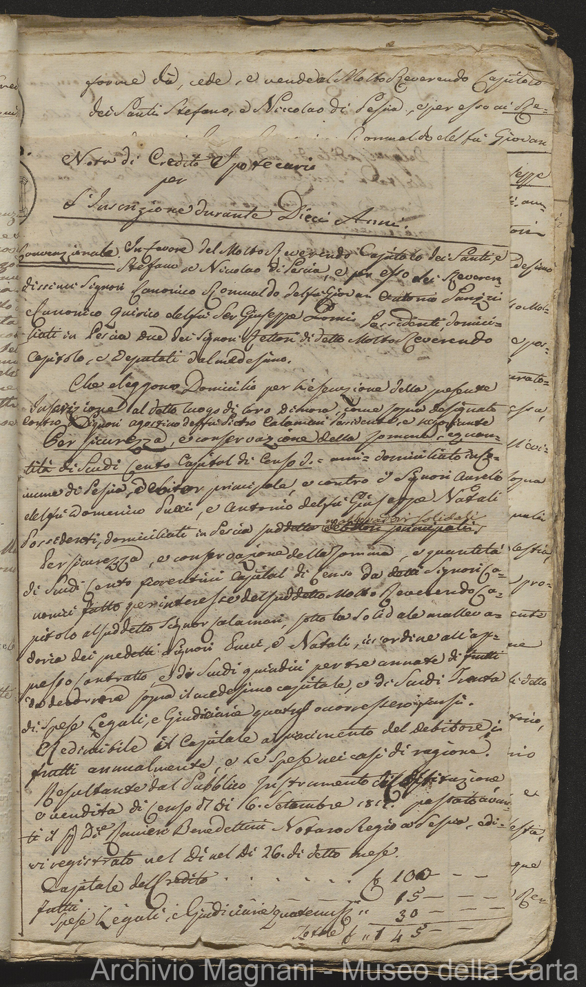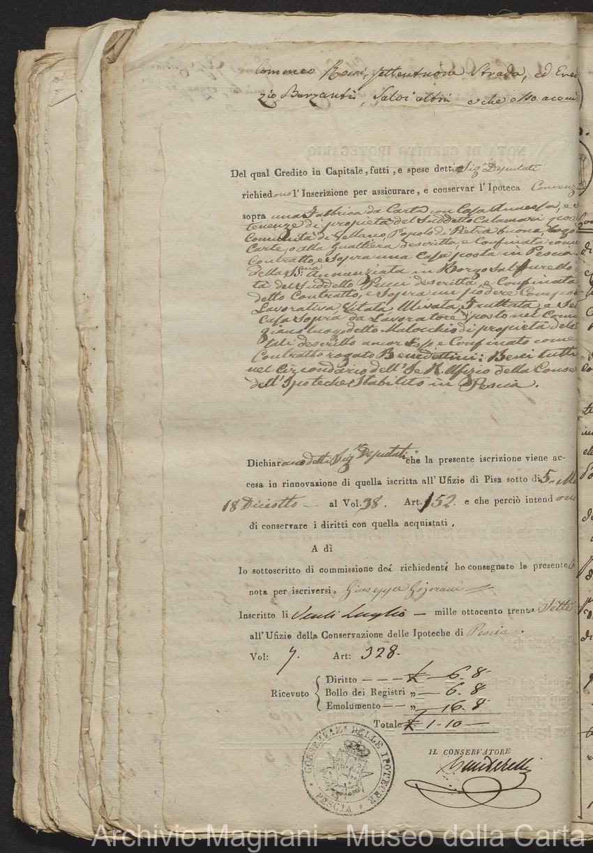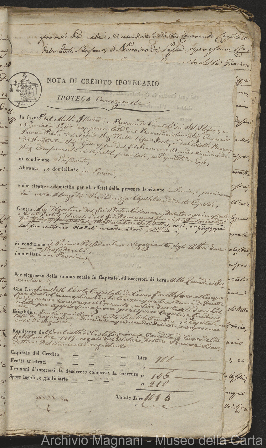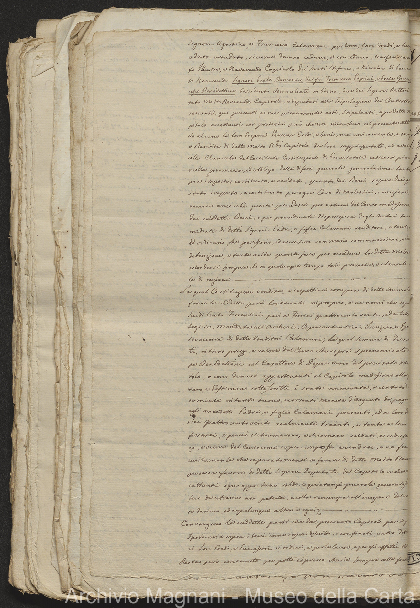 Filza di contr. di prestito, note di credito ipotecario, conserv. ipoteche di Lucca e di Pescia, 2 campioni del catasto (copie), costit. e vendita di censo, cessione di credito, dimostr. graduatoria Calamari, rinuncia; pp. 19-245, di cui XLI bianche