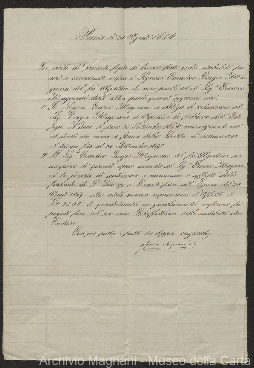 Affitti e stime - varie cartiere - B|F I/54 - Ponte Gemolano - Domenico Magnani - Enrico Magnani - San Lorenzo - Giorgio Magnani - Cartiera Cerreto - Cartiera San Giovanni - Giuseppe Fantozzi, avvocato - Alberto Magnani