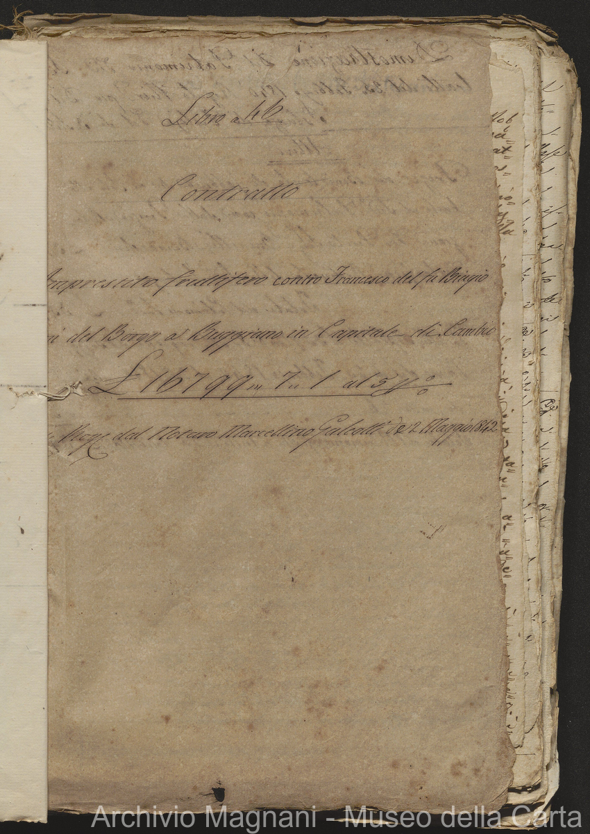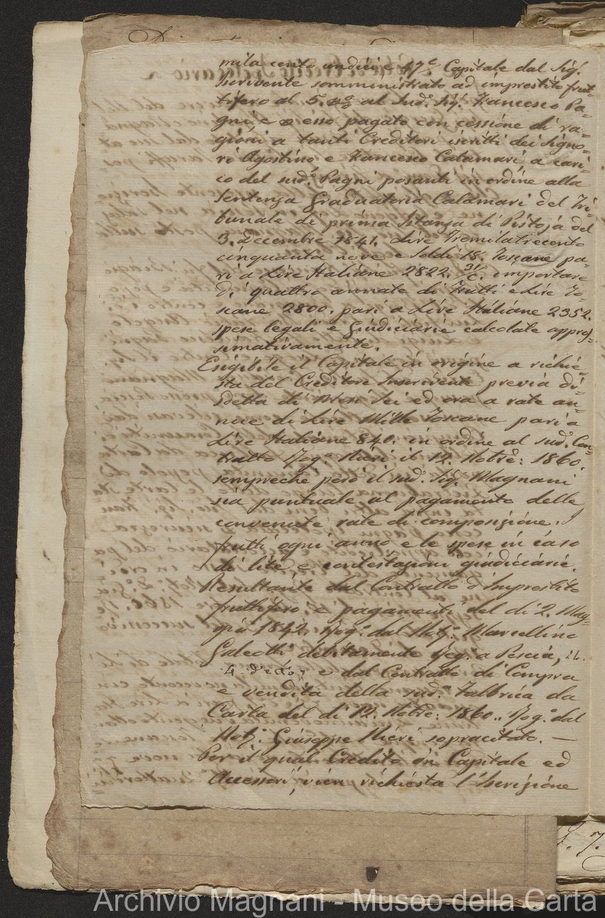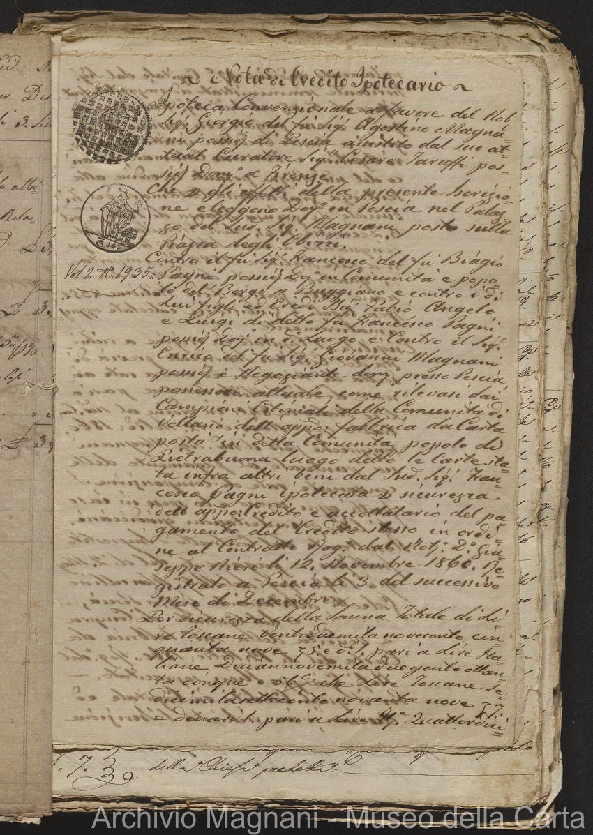 Filza di contr. di prestito, note di credito ipotecario, conserv. ipoteche di Lucca e di Pescia, 2 campioni del catasto (copie), costit. e vendita di censo, cessione di credito, dimostr. graduatoria Calamari, rinuncia; pp. 19-245, di cui XLI bianche