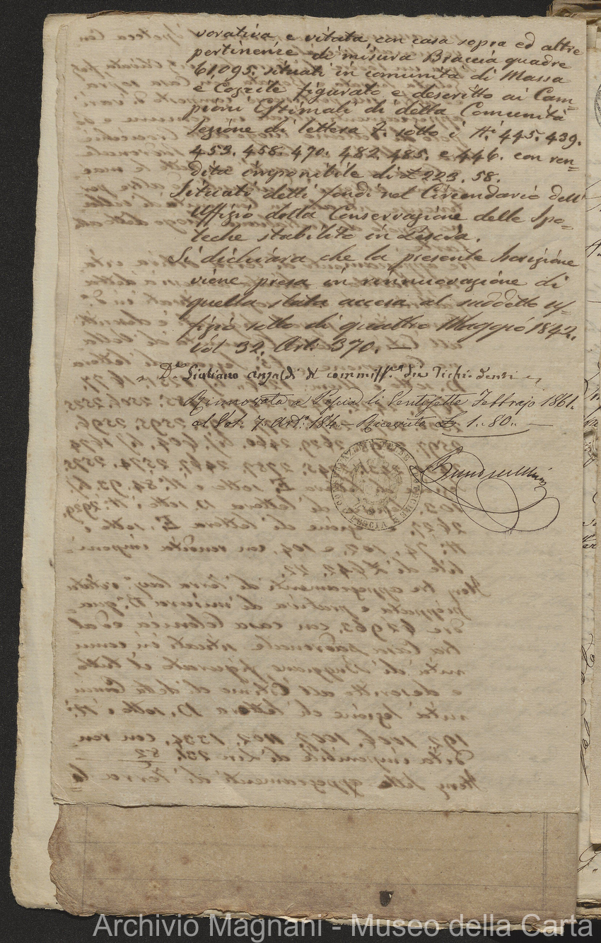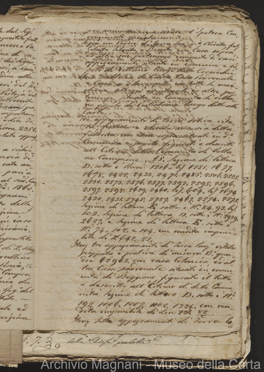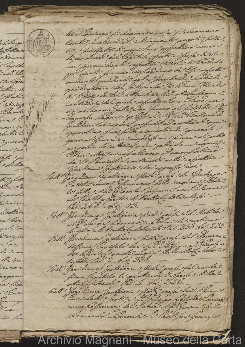 Filza di contr. di prestito, note di credito ipotecario, conserv. ipoteche di Lucca e di Pescia, 2 campioni del catasto (copie), costit. e vendita di censo, cessione di credito, dimostr. graduatoria Calamari, rinuncia; pp. 19-245, di cui XLI bianche