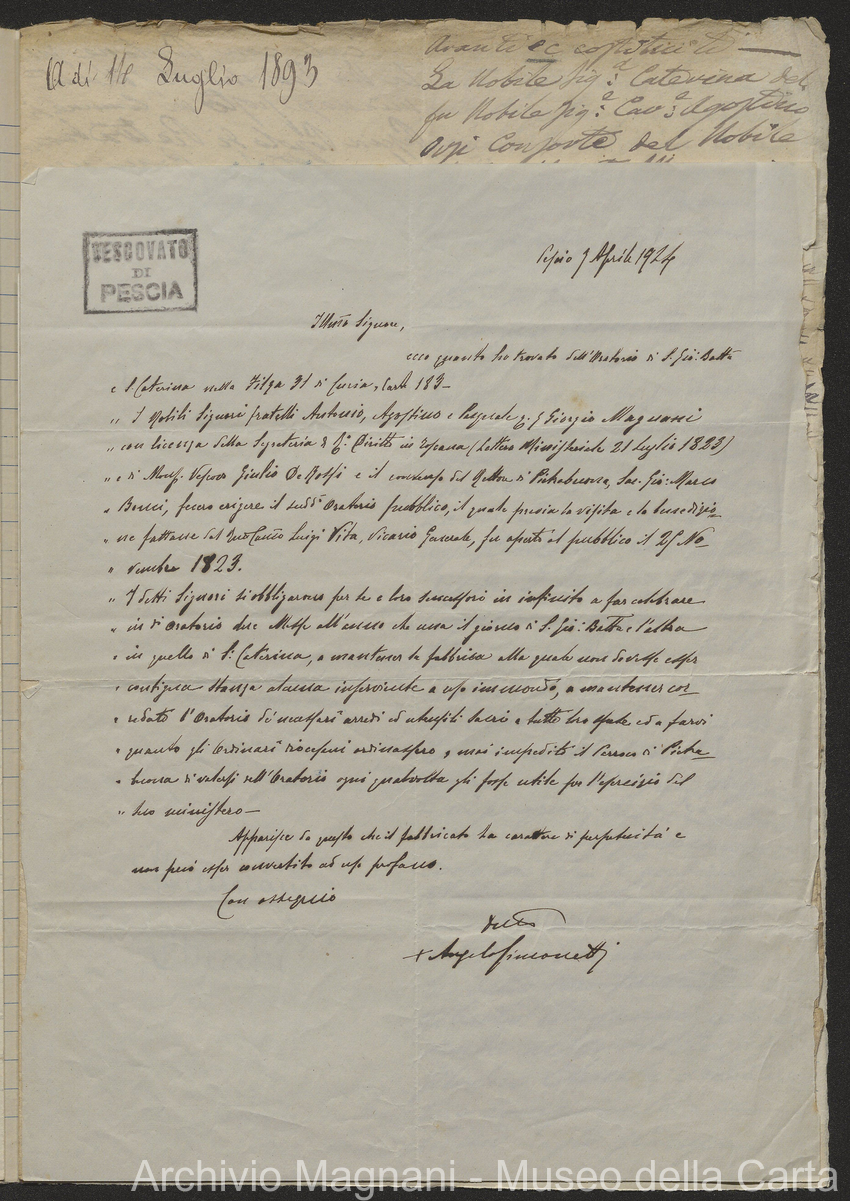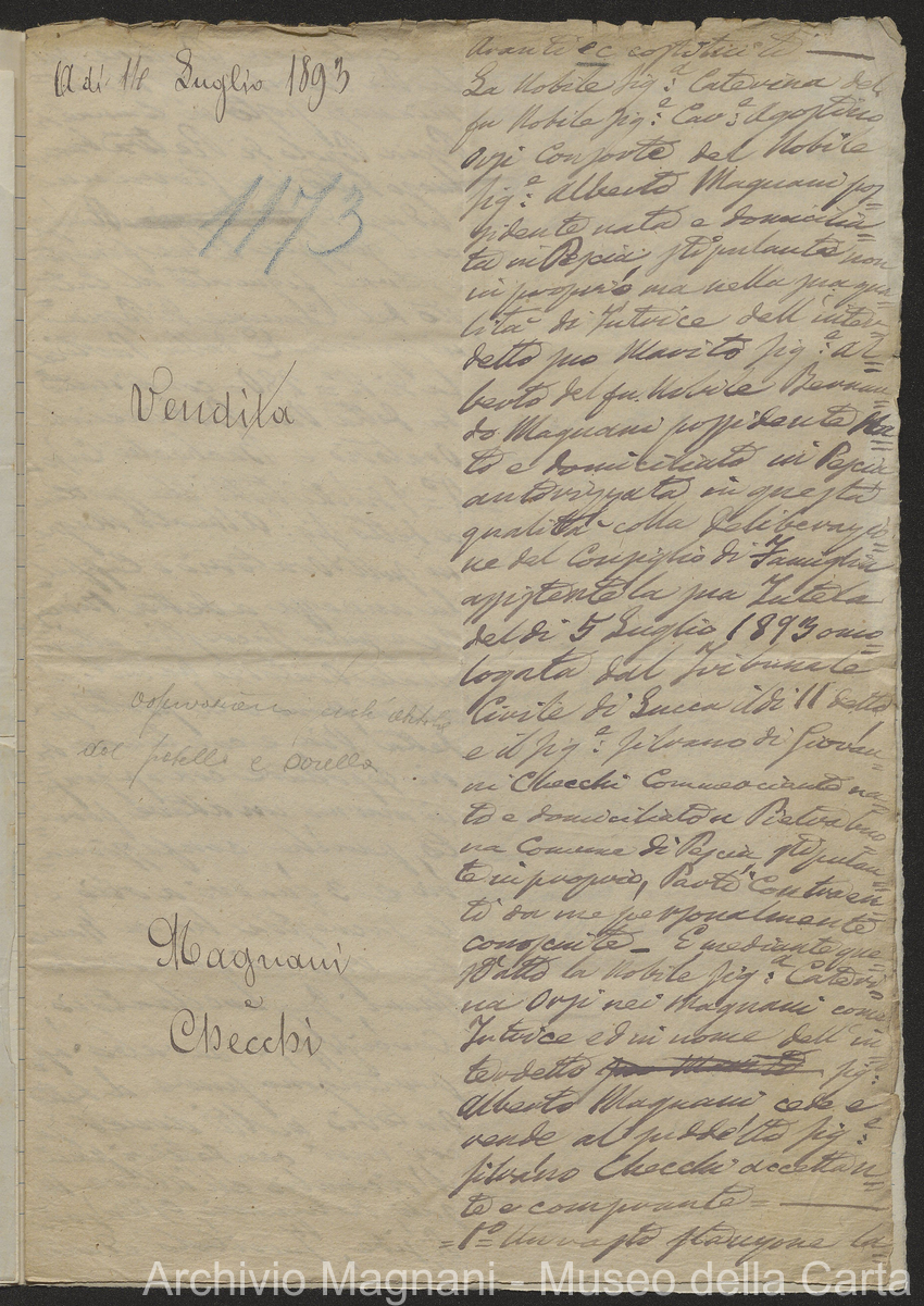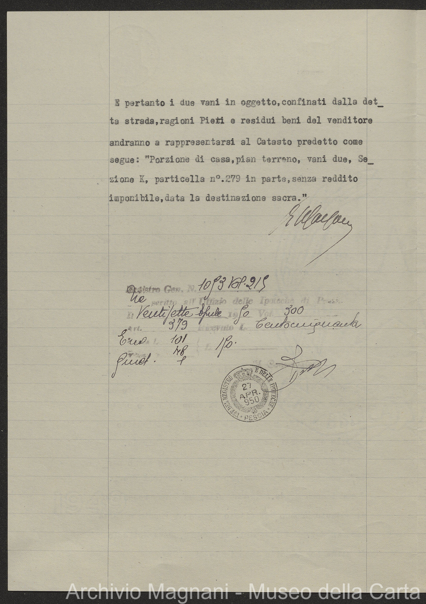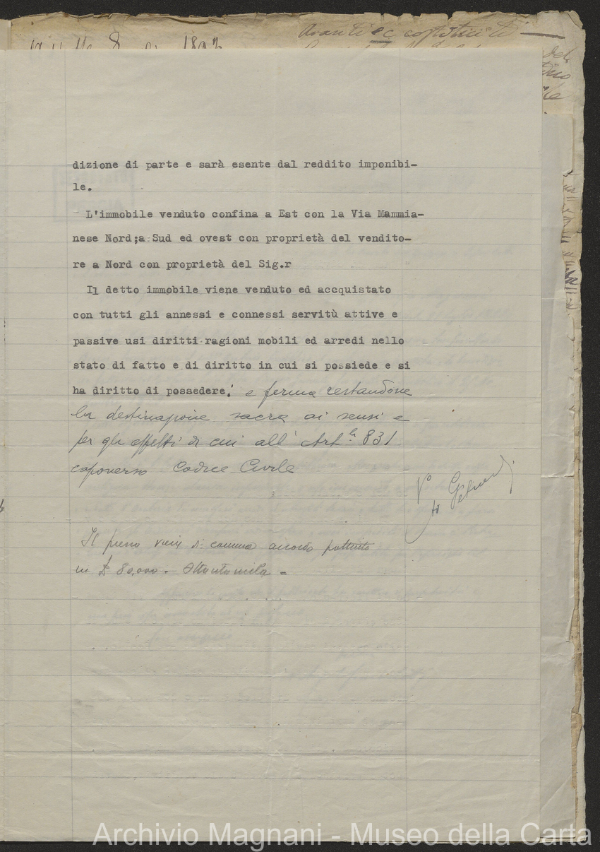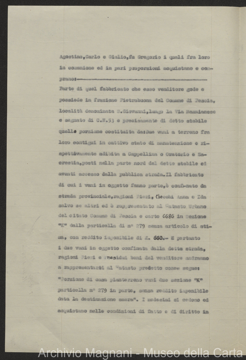 Compravendita - Dante Checchi - Agostino Magnani - Carlo Magnani - Giulio Magnani - B|F I/56 - Petrocchi, avvocato - Angelo Simonetti, vescovo - Giovanni Massari, notaio