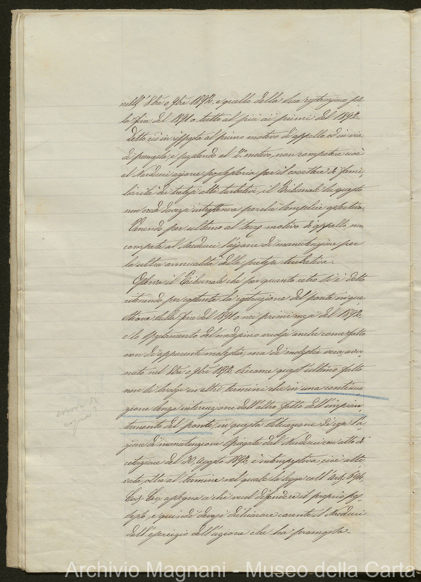 Sentenze del Tribunale di Pescia sulla causa del ponte di legno (pp. 2-46) e per la serra della Cartiera S. Frediano (pp. 47-71); conto per cause degli studi Nieri (pp. 72-76), Simoni (pp. 77-85) e Michelozzi (pp. 86-90)